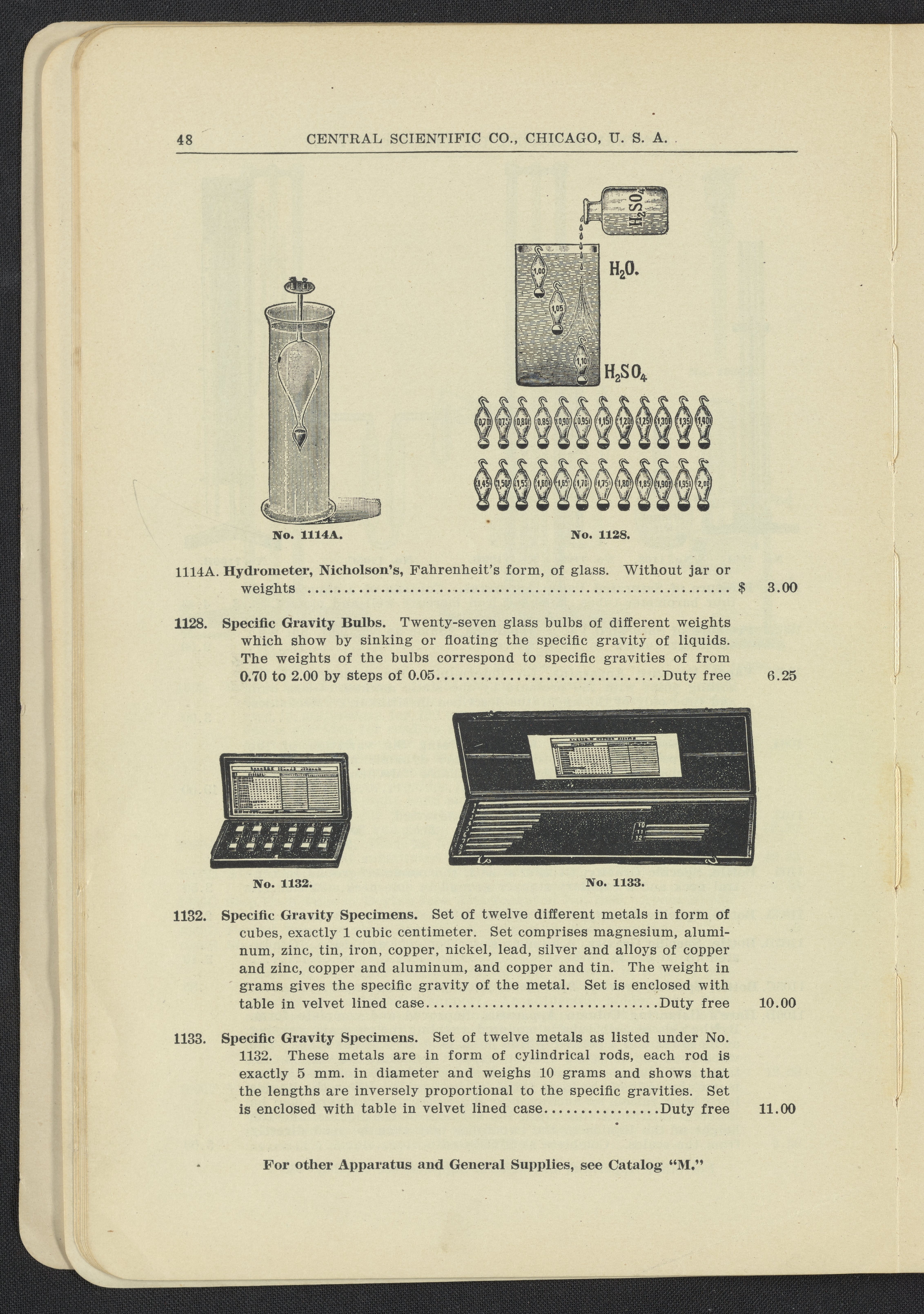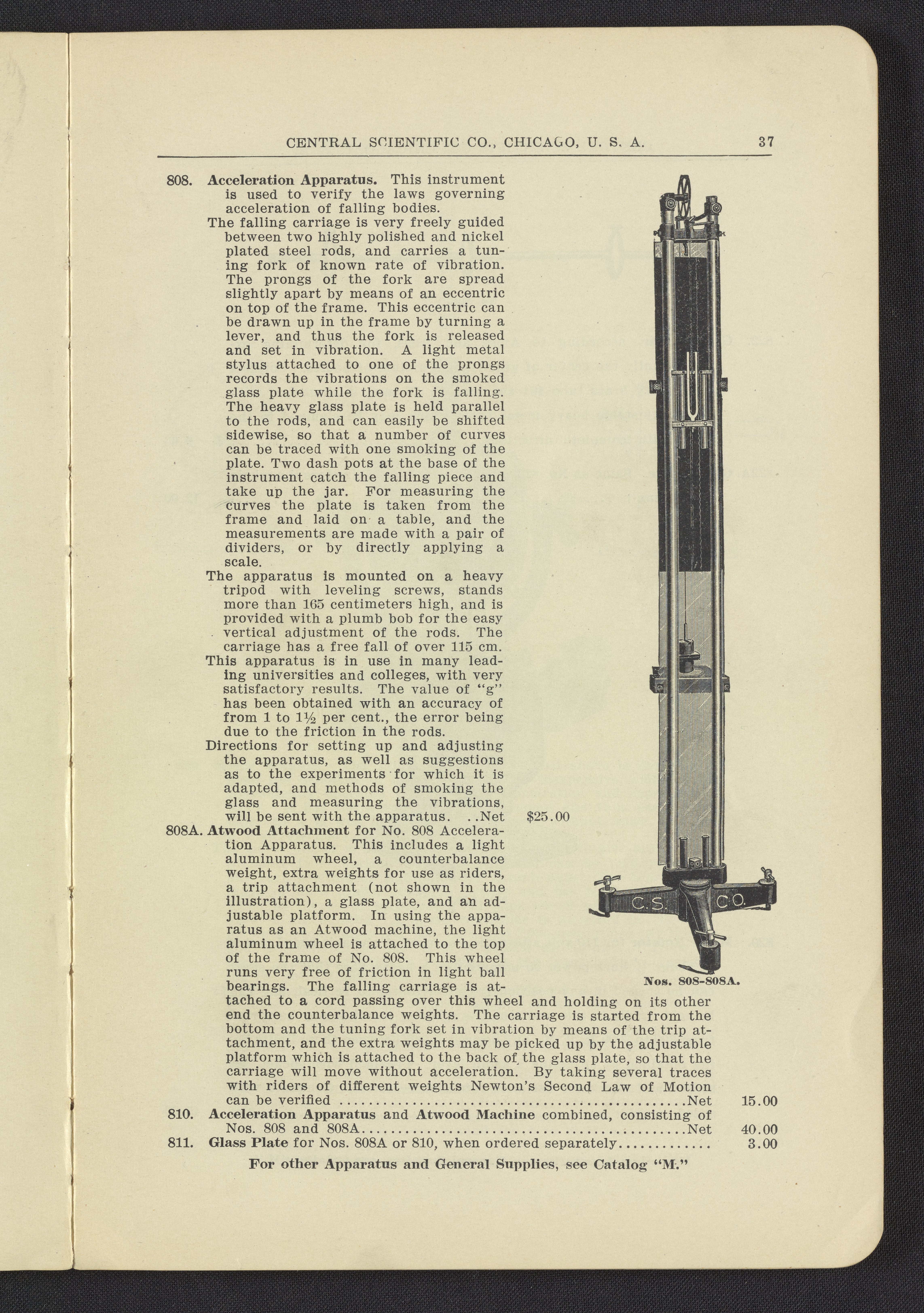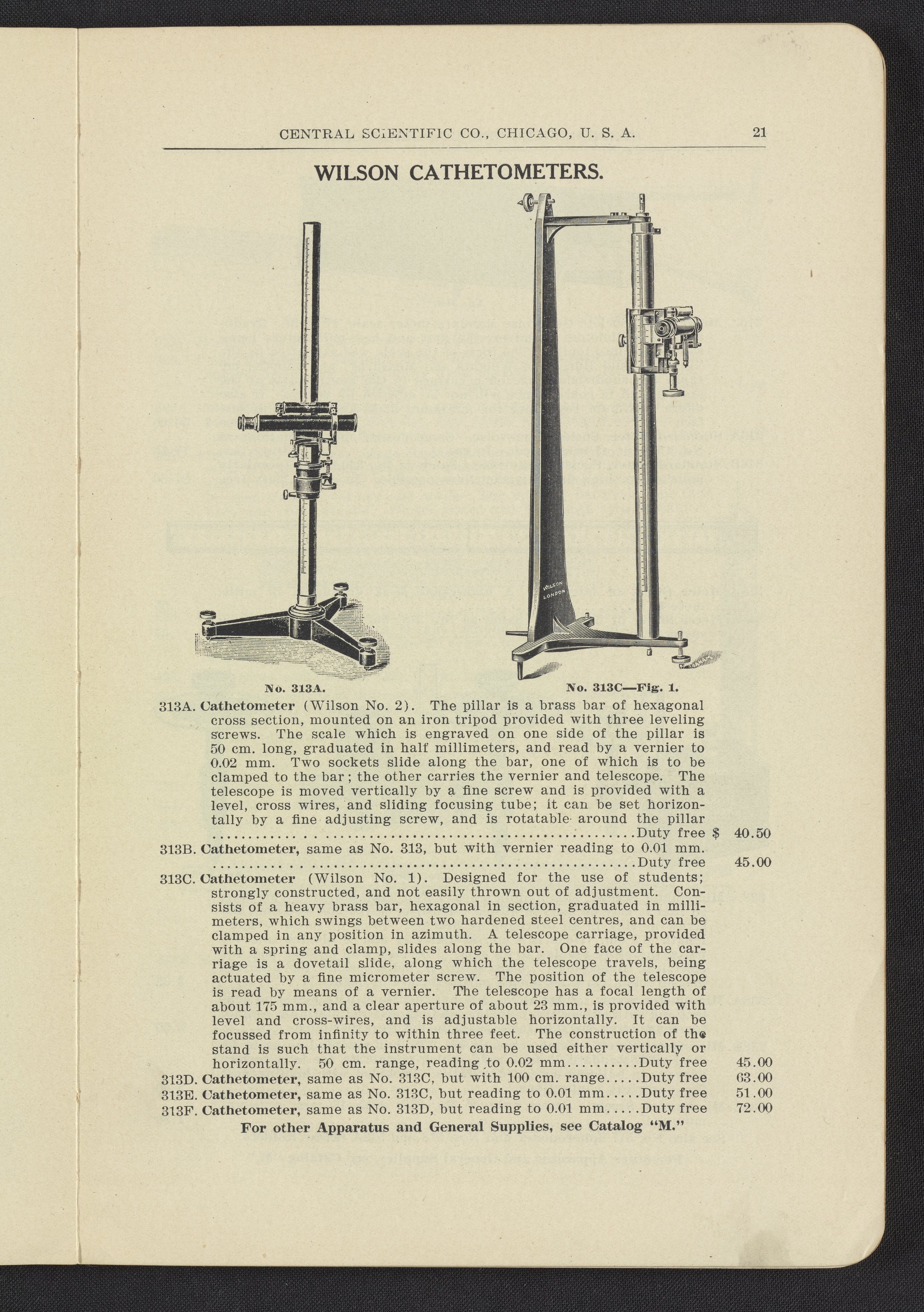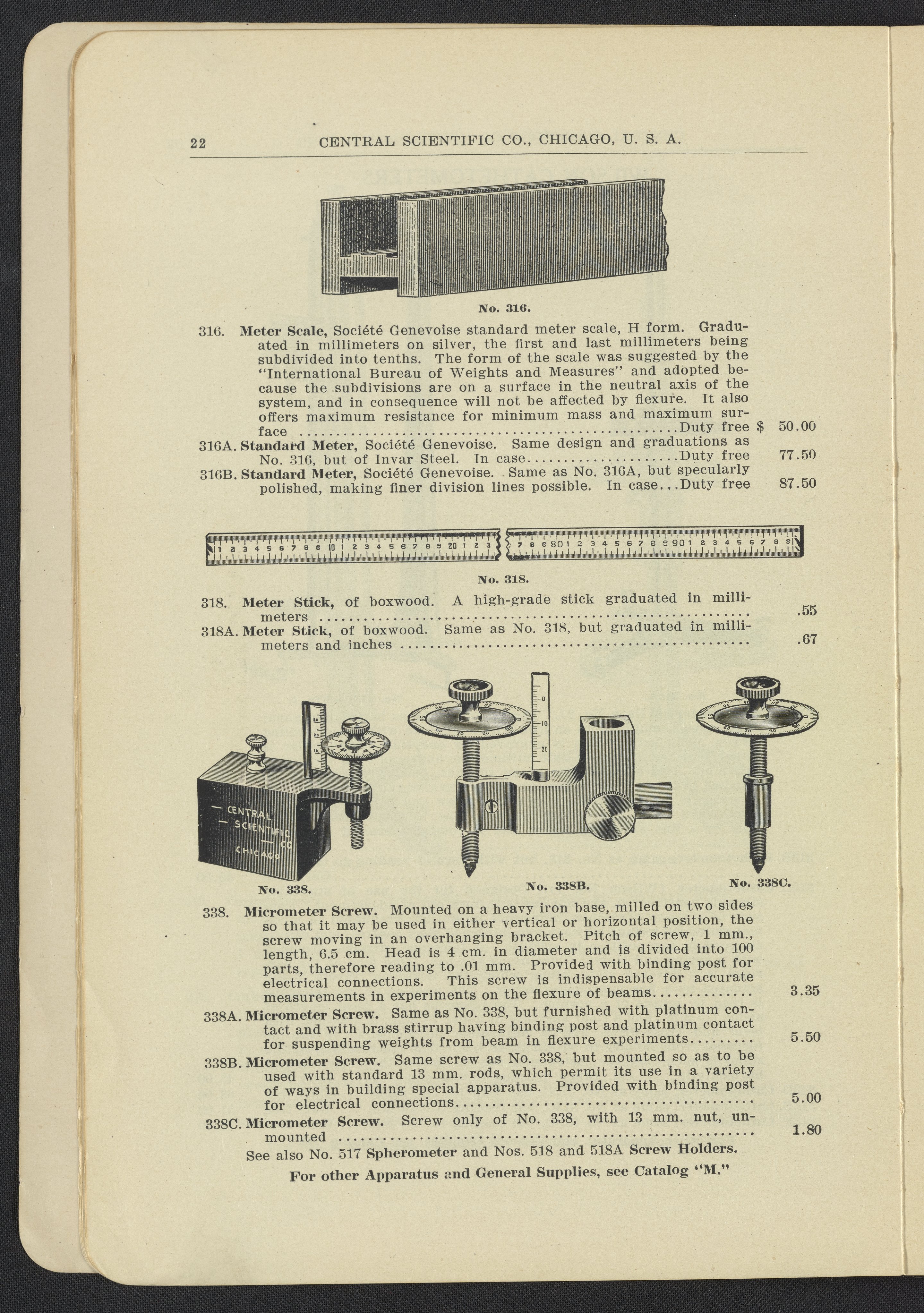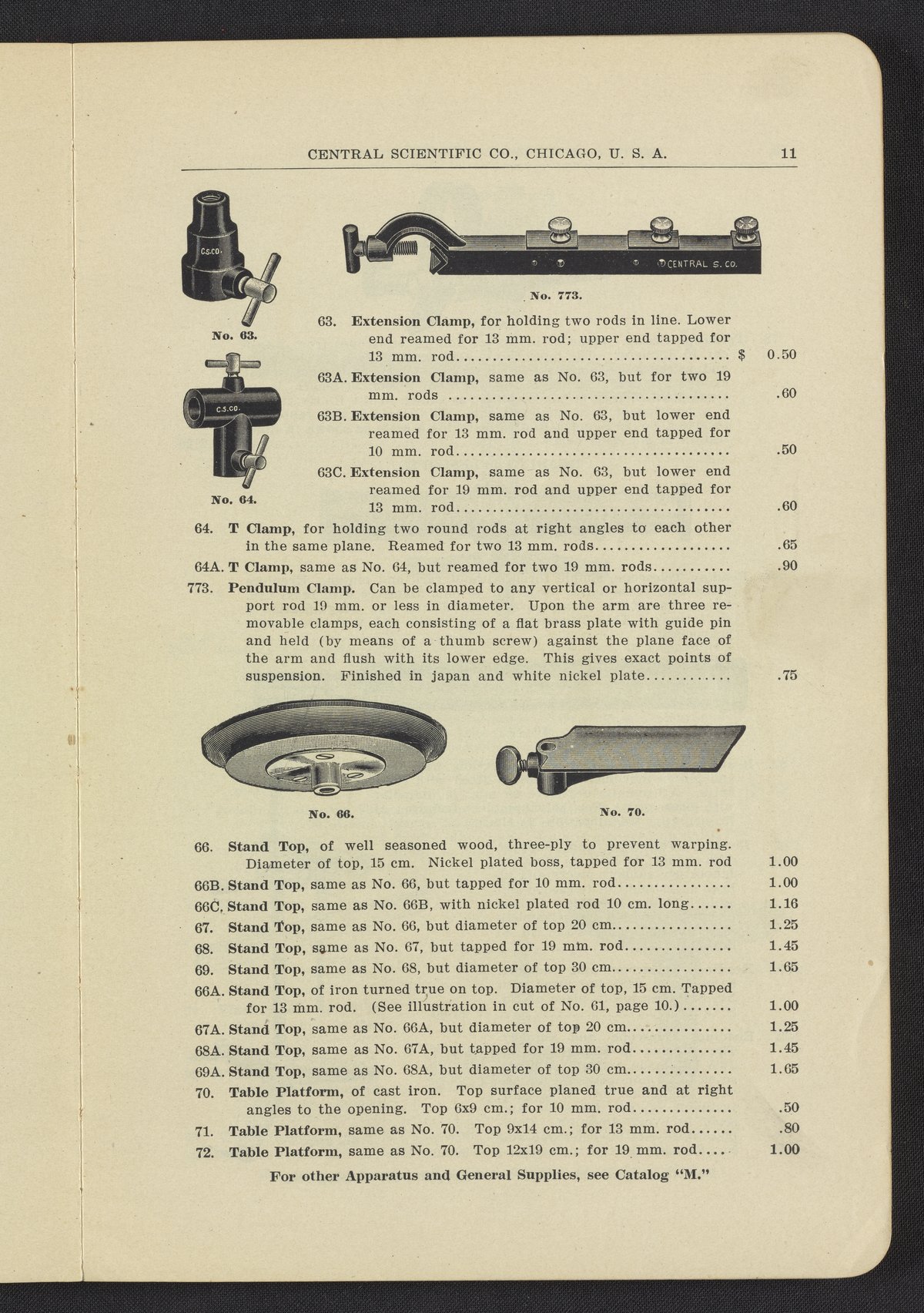 Central Scientific Company. “Physical Apparatus for Universities and Colleges Manufactured and Imported by Central Scientific Co.” Chicago, Illinois: Central Scientific Company, 1912. Q185.7 .C46 1912. Science History Institute. Philadelphia. https://digital.sciencehistory.org/works/vt150k323.