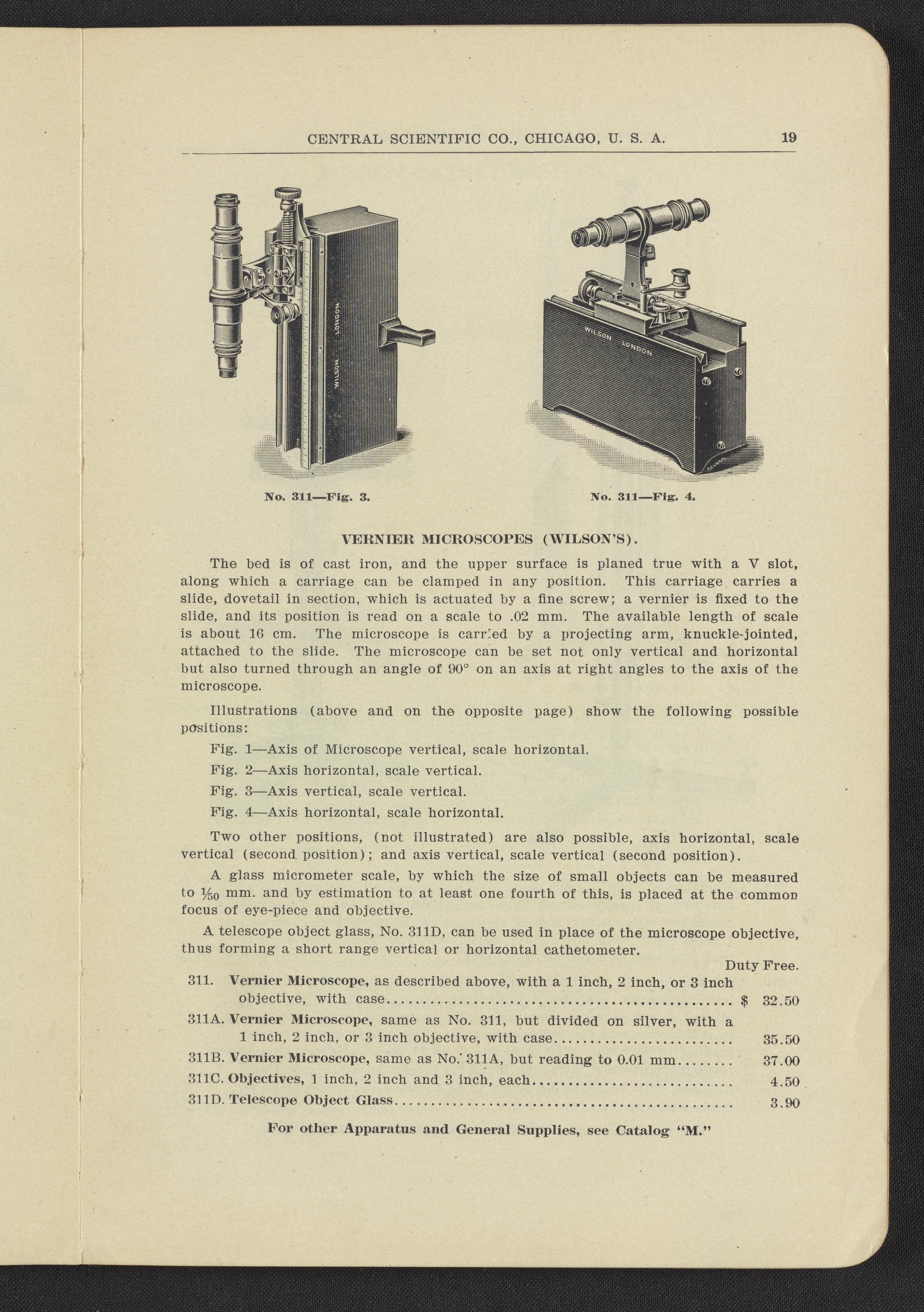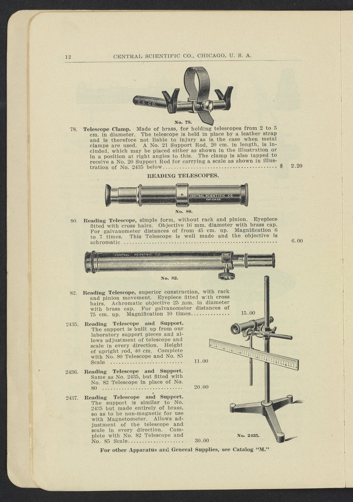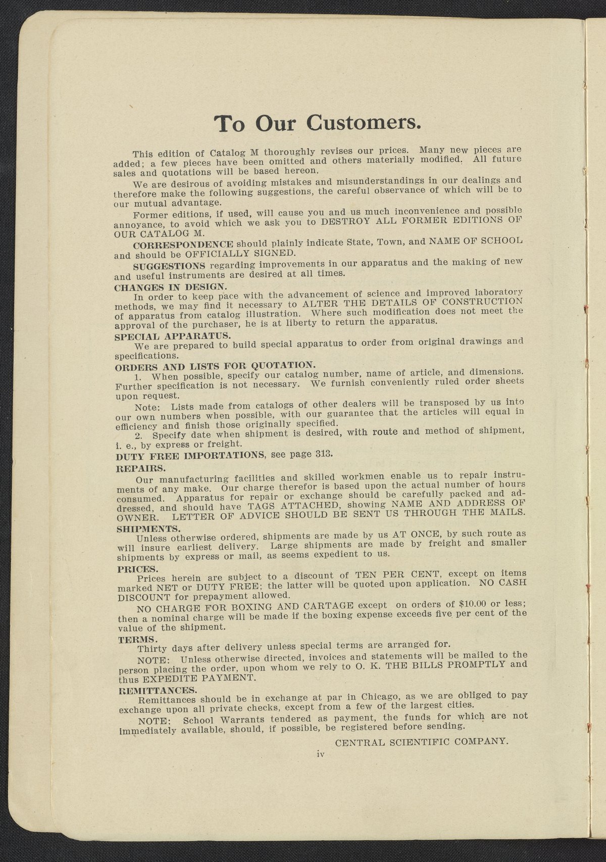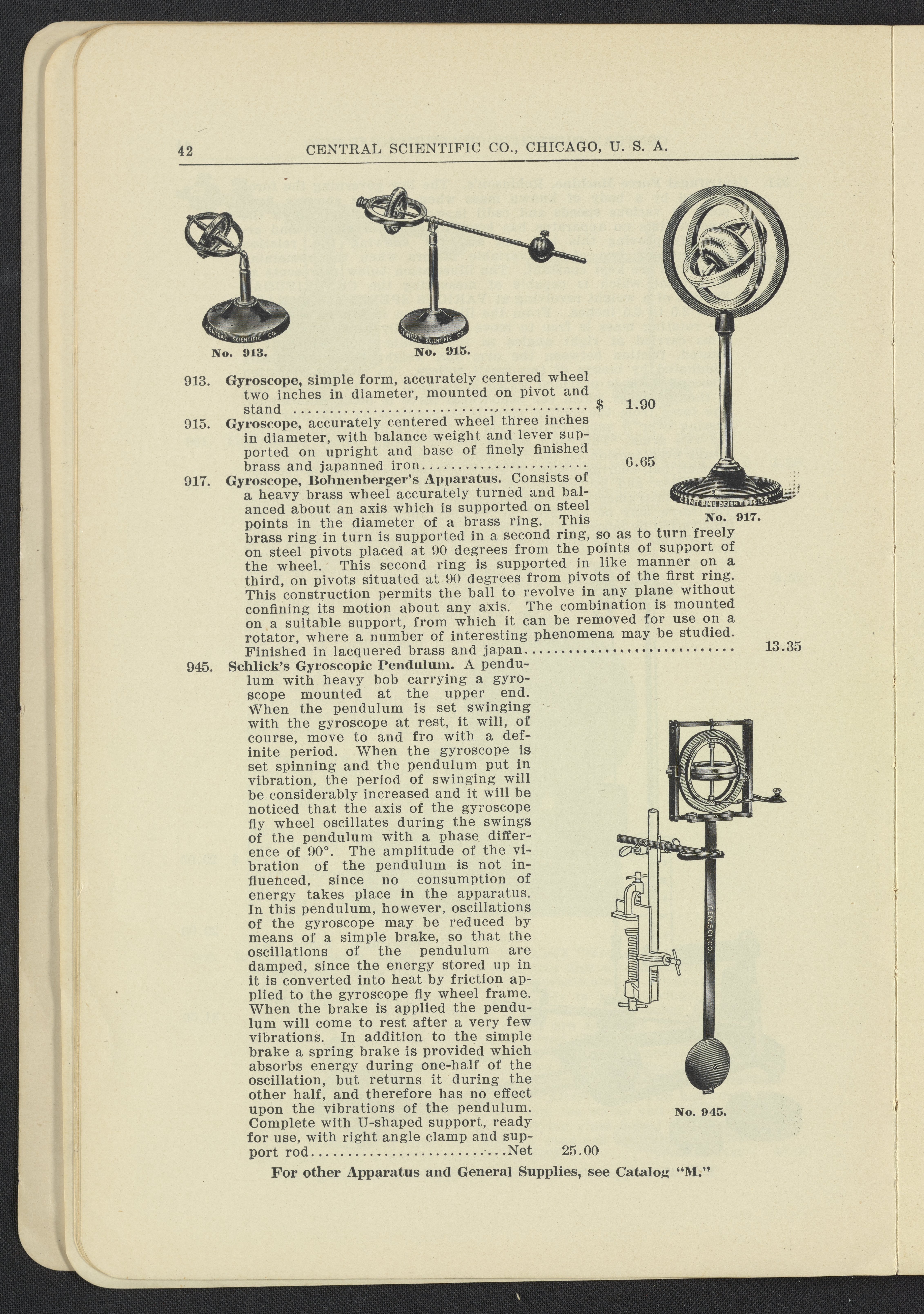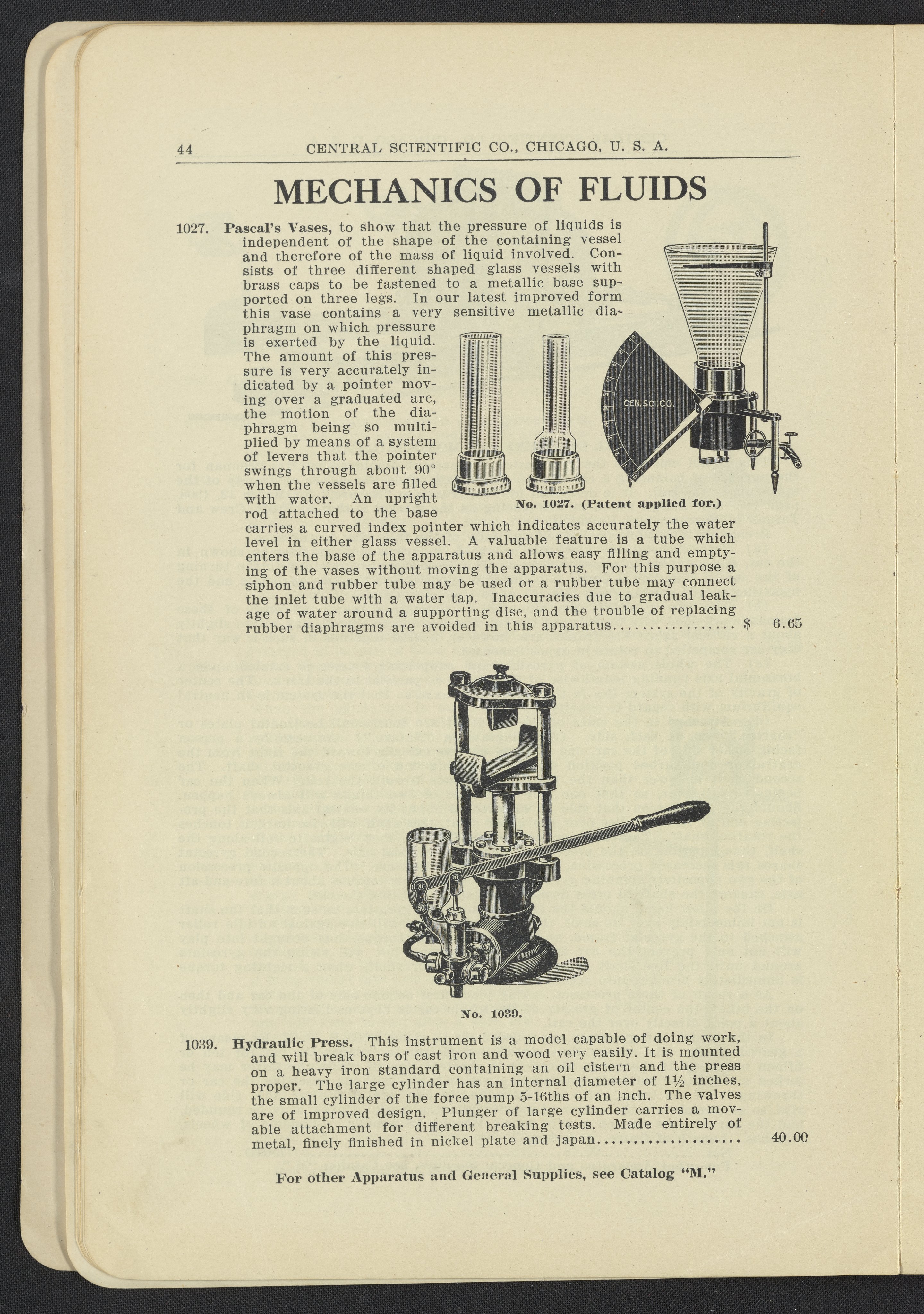 Central Scientific Company. “Physical Apparatus for Universities and Colleges Manufactured and Imported by Central Scientific Co.” Chicago, Illinois: Central Scientific Company, 1912. Q185.7 .C46 1912. Science History Institute. Philadelphia. https://digital.sciencehistory.org/works/vt150k323.