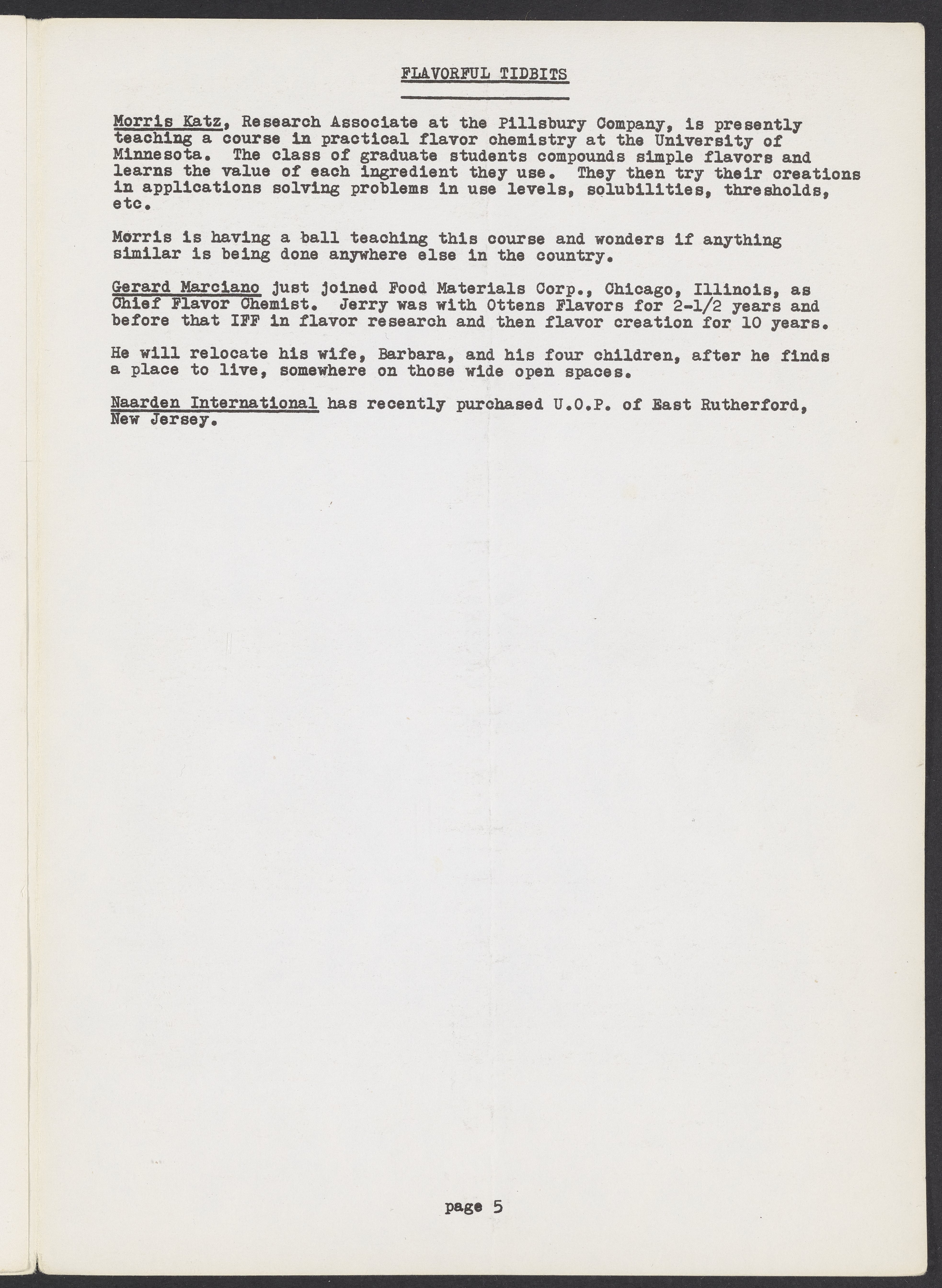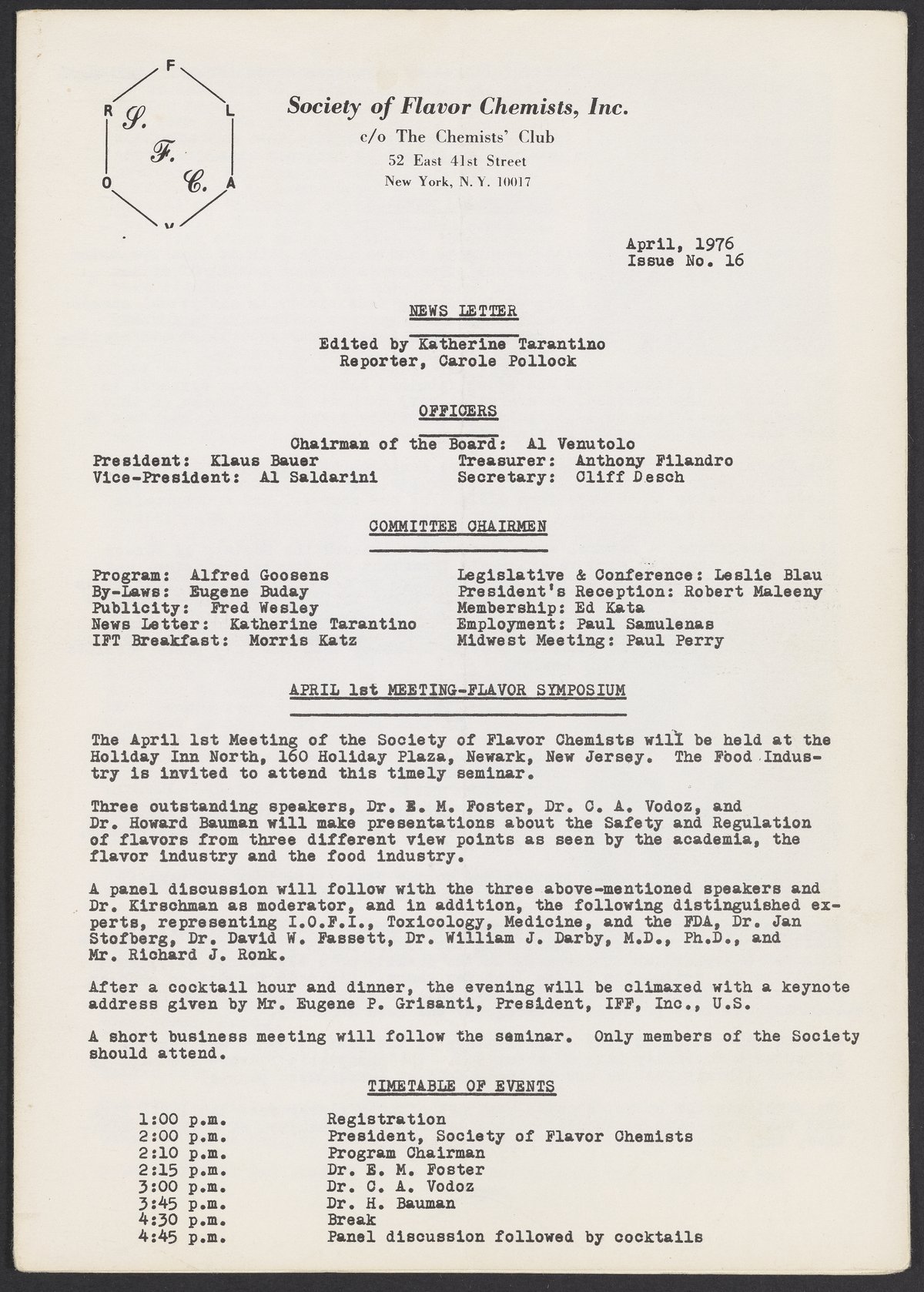 April 1976 issue of the Society of Flavor Chemists newsletter.