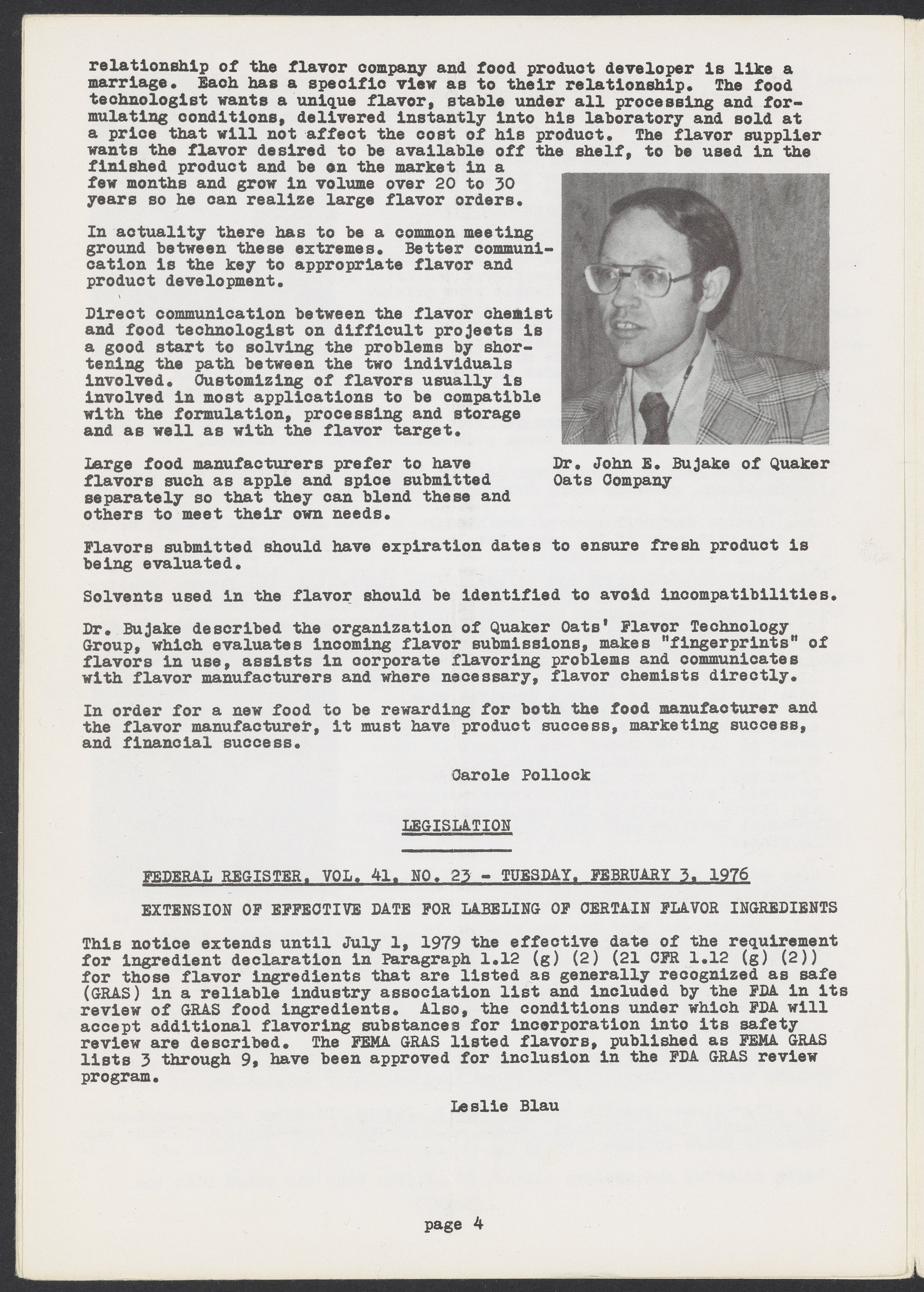 Society of Flavor Chemists newsletter, April 1976
