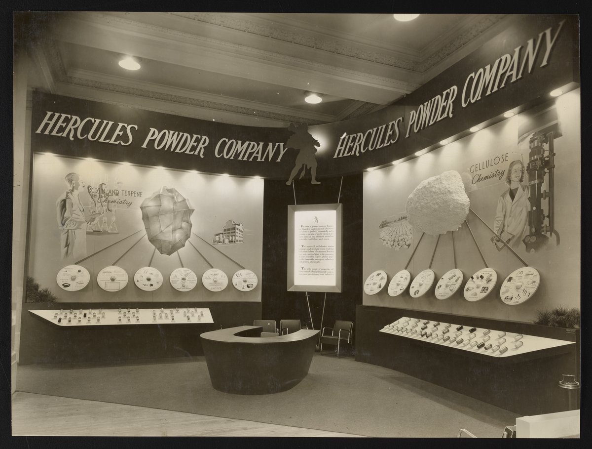 Small JPG1200 x 909px — 159 KBLarge JPG2880 x 2181px — 738 KBFull-sized JPG6235 x 4722px — 2.9 MBOriginal fileTIFF — 6235 x 4722px — 84.3 MBGeneral view of the Hercules Powder Company display at a 1947 chemical industries trade show held in New York City.