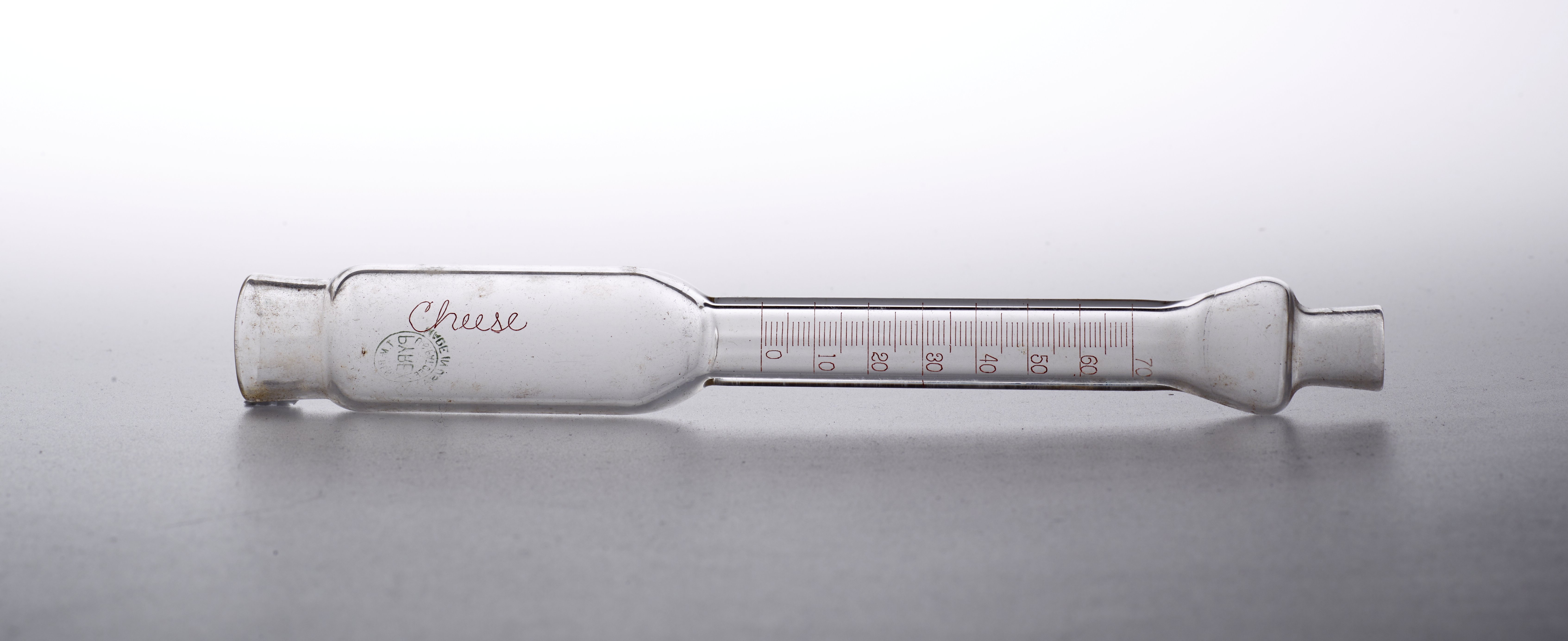Small JPG1200 x 490px — 53.5 KBLarge JPG2880 x 1177px — 197 KBFull-sized JPG6772 x 2768px — 940 KBOriginal fileTIFF — 6772 x 2768px — 53.6 MBPyrex 70% Gerber Bottle - A glass tube bottle with bulbous ends and a flattened midsection. The mid-section has measurements from 0 to 70 mL. One end is inscribed in red "Cheese".