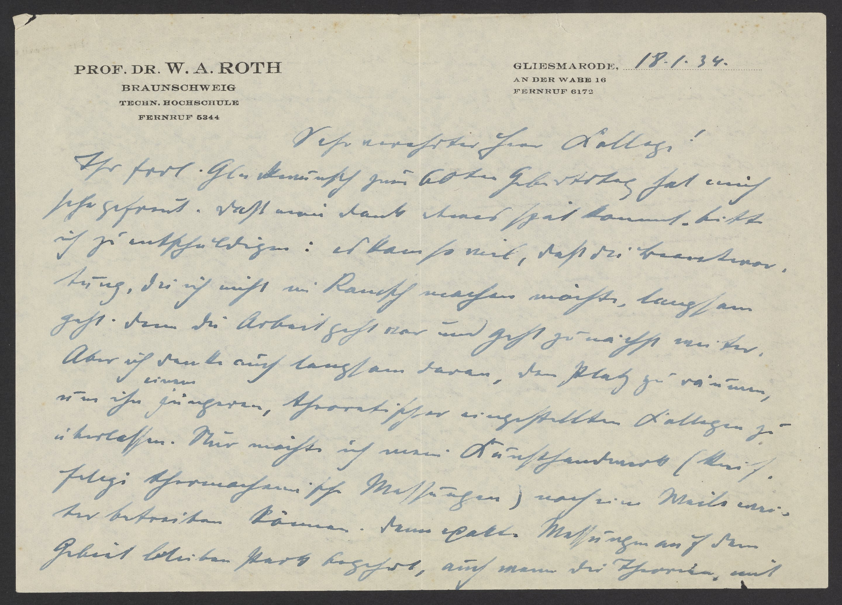 Roth, Walter. “Letter from Walther Roth to Georg Bredig, January 1934,” January 18, 1934. Papers of Georg and Max Bredig, Box 2, Folder 44. Science History Institute. Philadelphia. https://digital.sciencehistory.org/works/w3cqnk6.