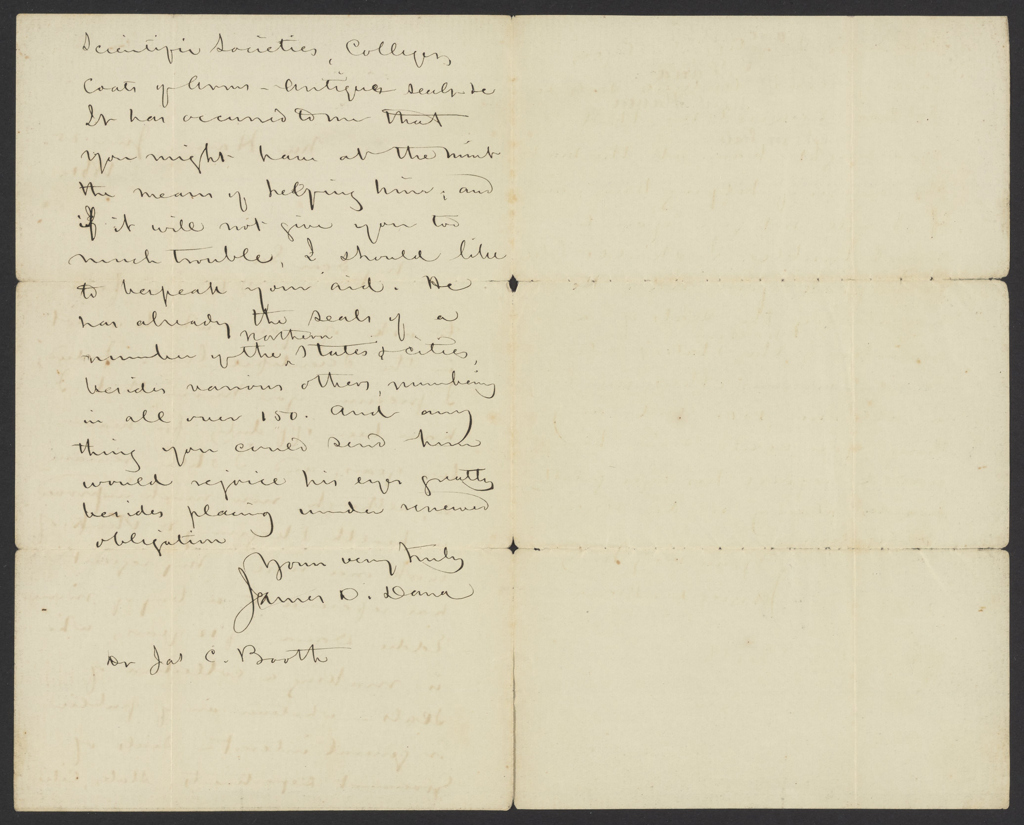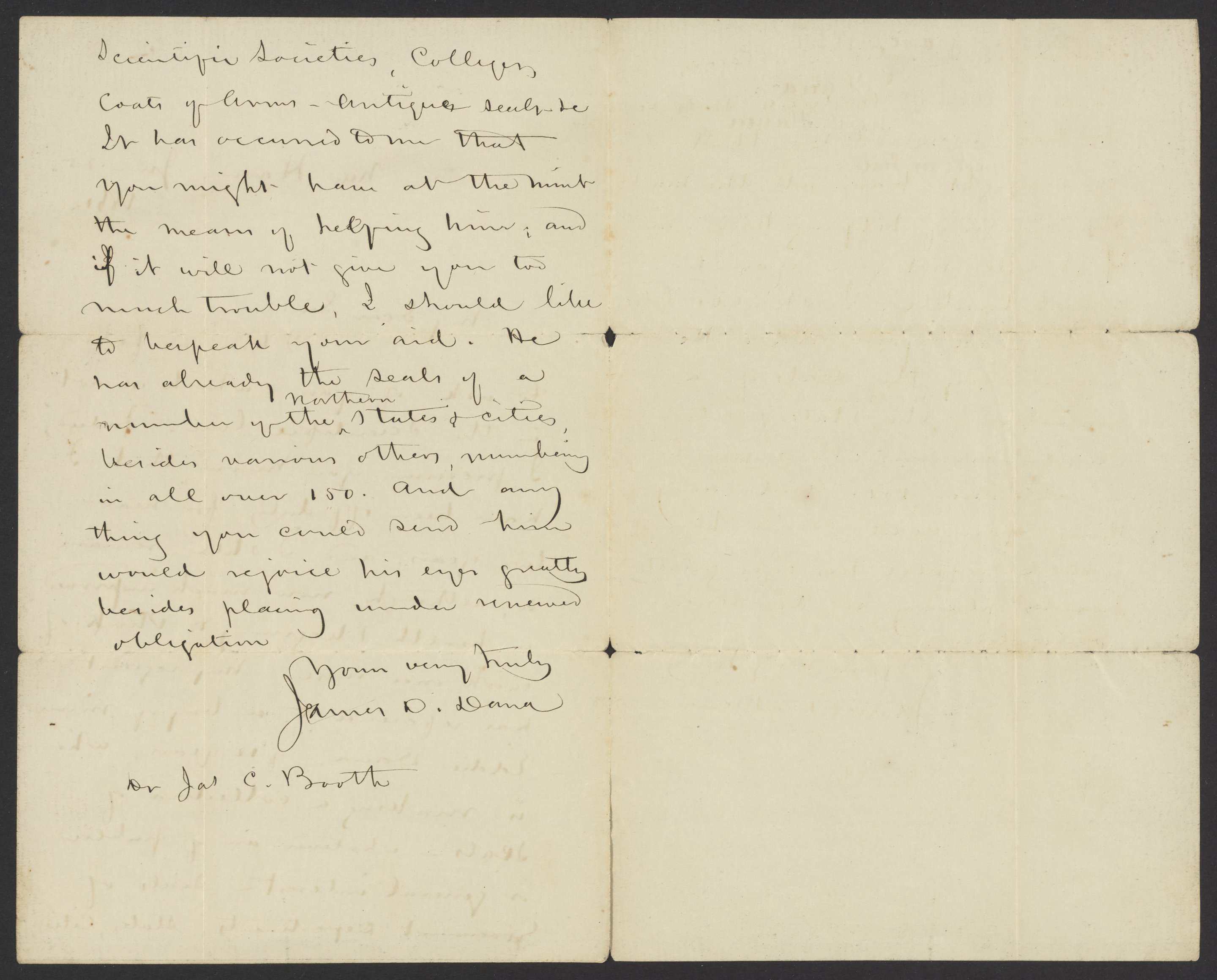 Letter from James Dwight Dana to James Curtis Booth, June 25, 1861