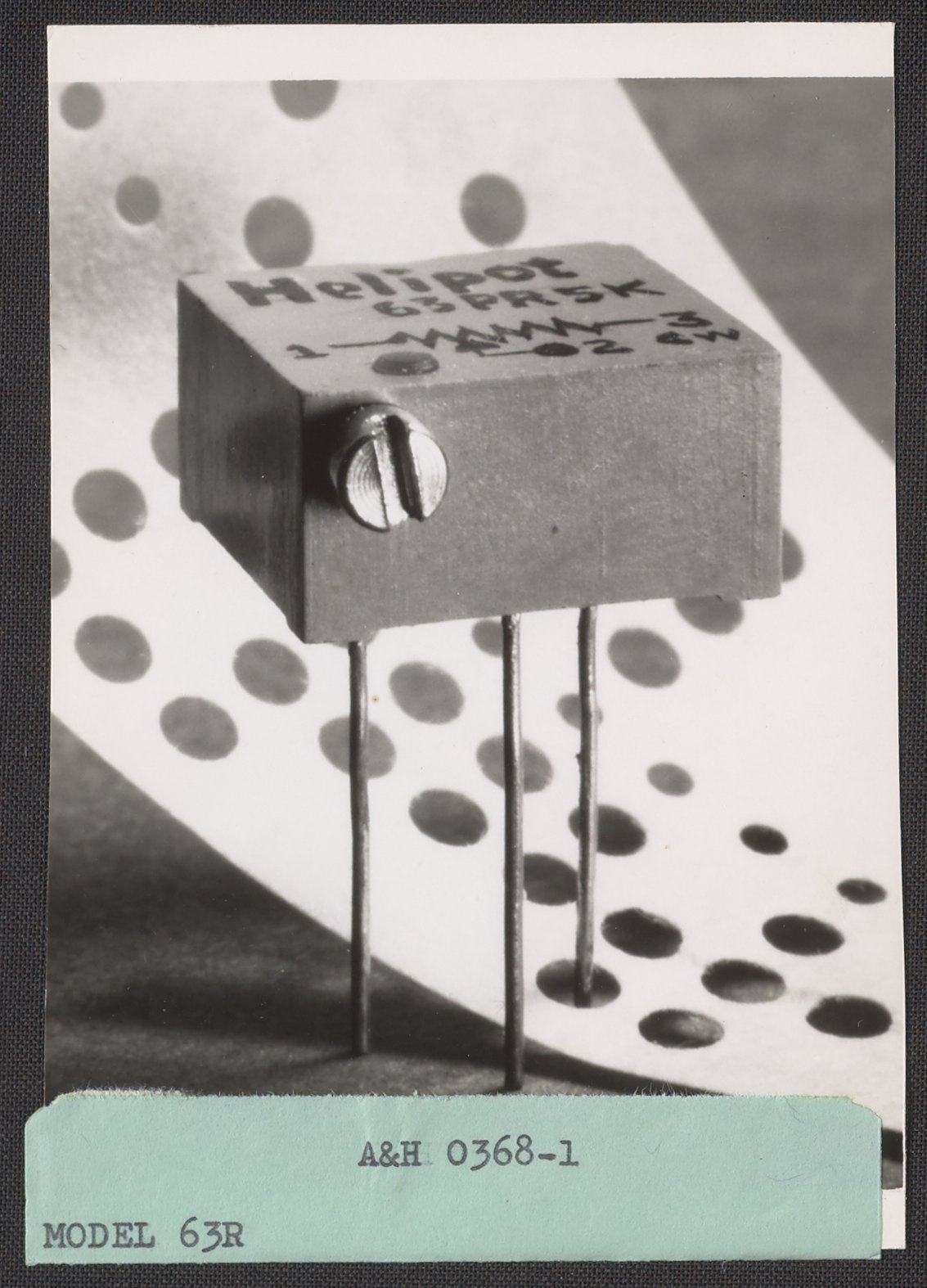 Armstrong & Hess. “Helipot Model 63R Helitrim Trimming Potentiomer,” 1950–1969. Beckman Historical Collection, Box 85. Science History Institute. Philadelphia. https://digital.sciencehistory.org/works/w6634400v.