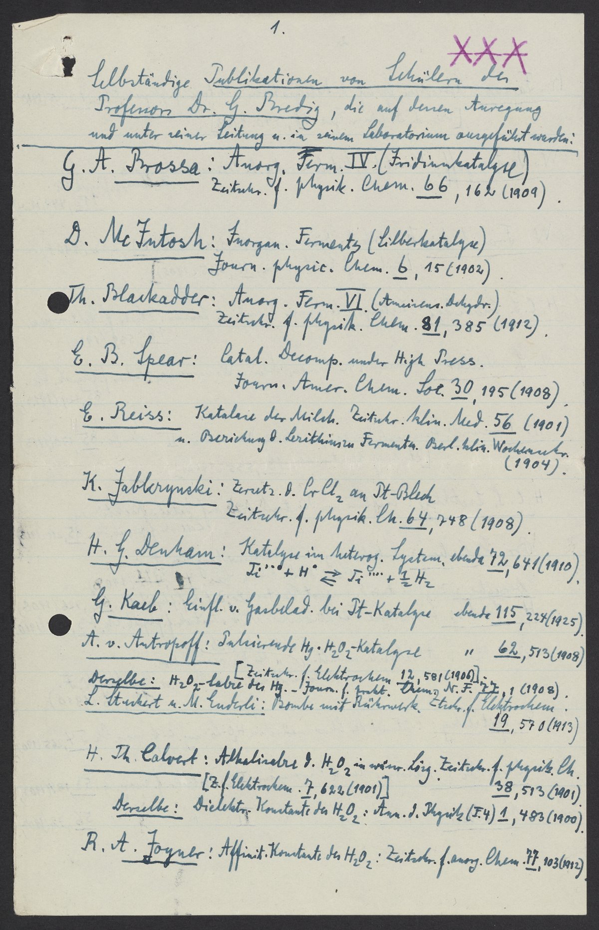 Citation list written by Georg Bredig