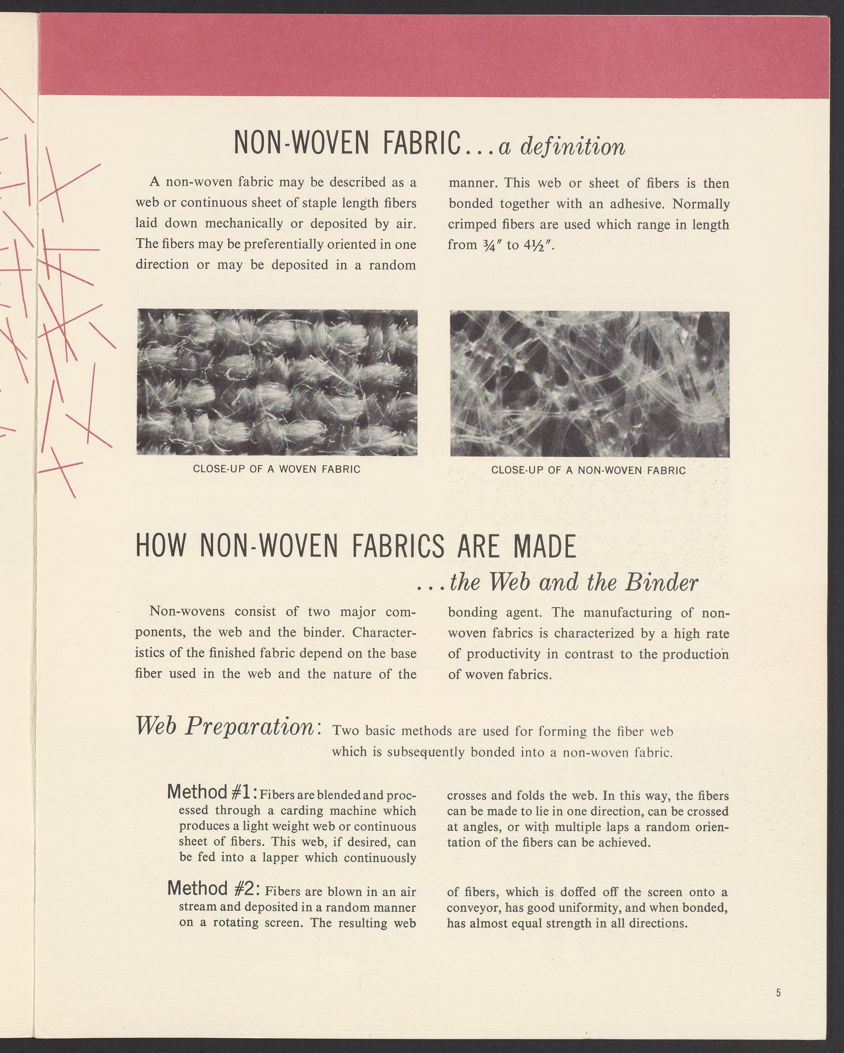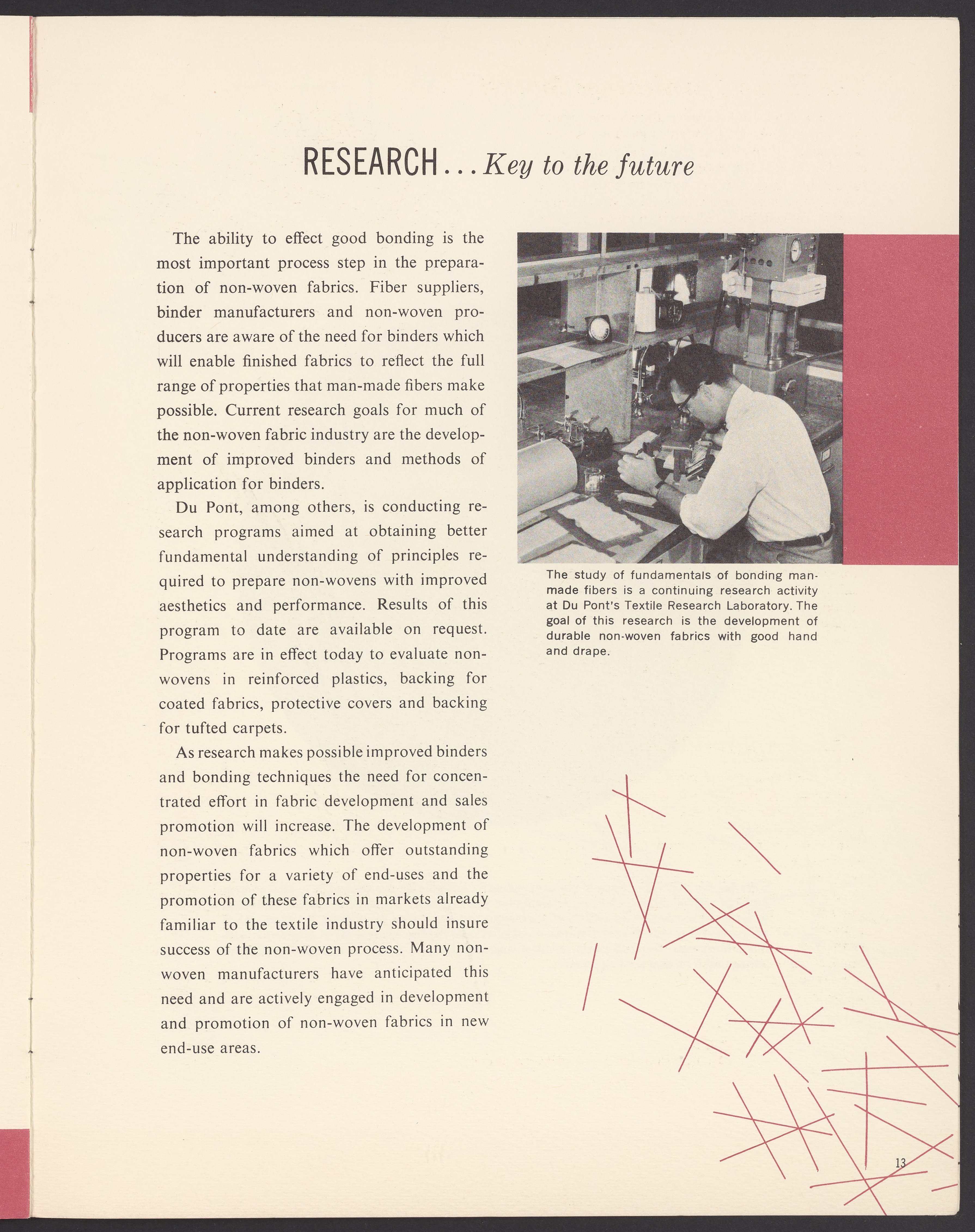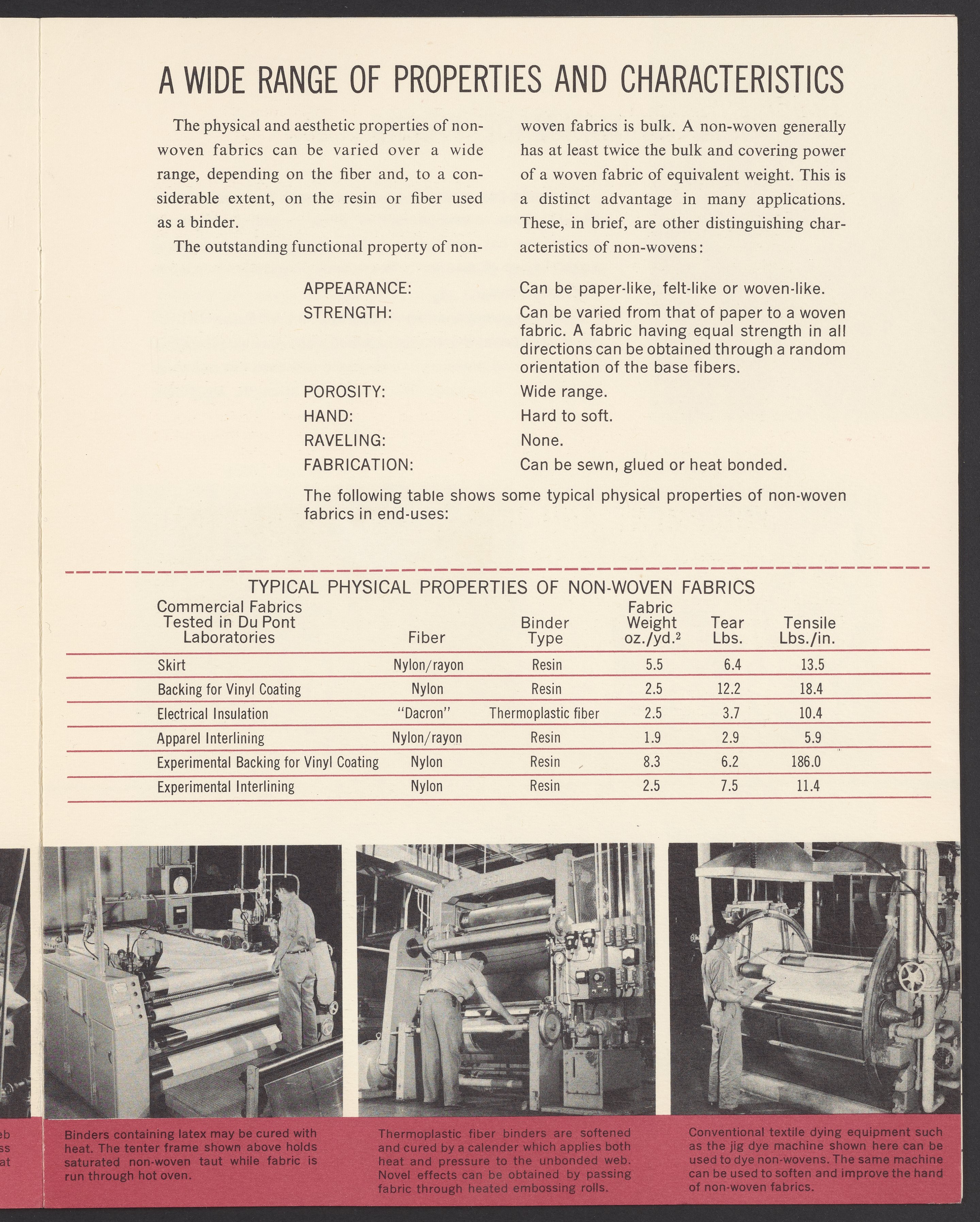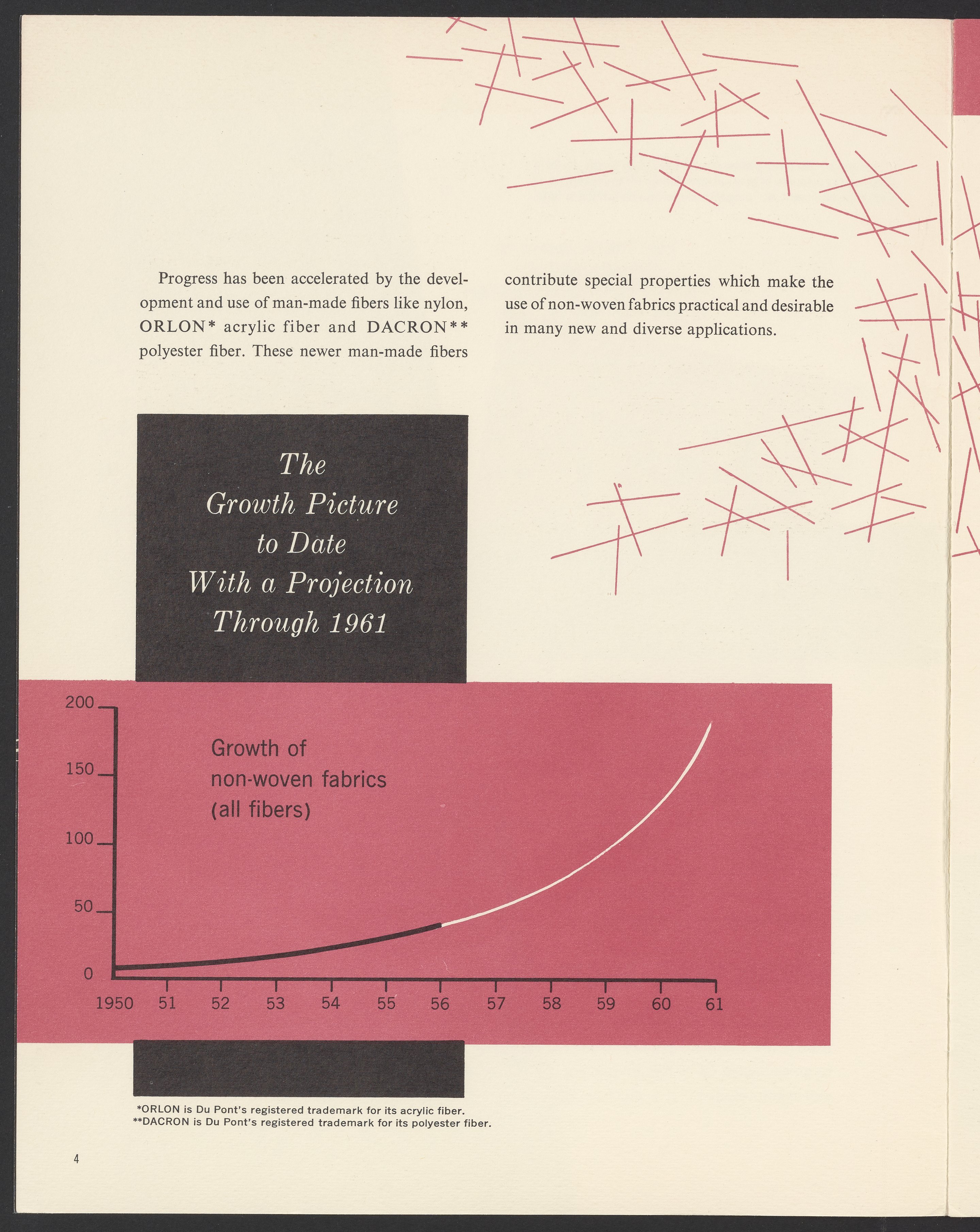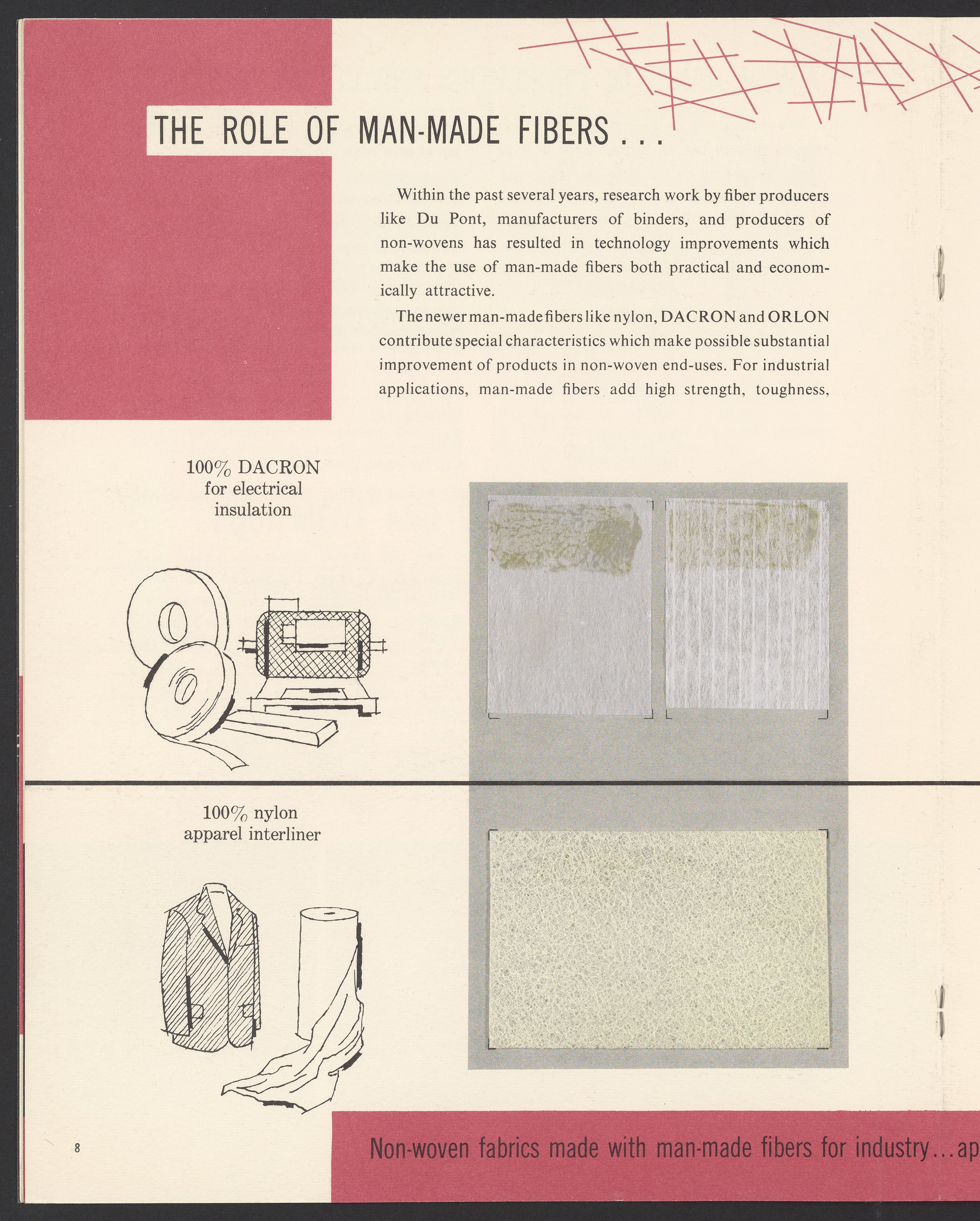 E.I. du Pont de Nemours & Company. New Opportunities in Non-Woven Fabrics... A Report by Du Pont. Wilmington, Delaware: E.I. du Pont de Nemours & Company, circa 1957. https://digital.sciencehistory.org/works/wg3wv4d.