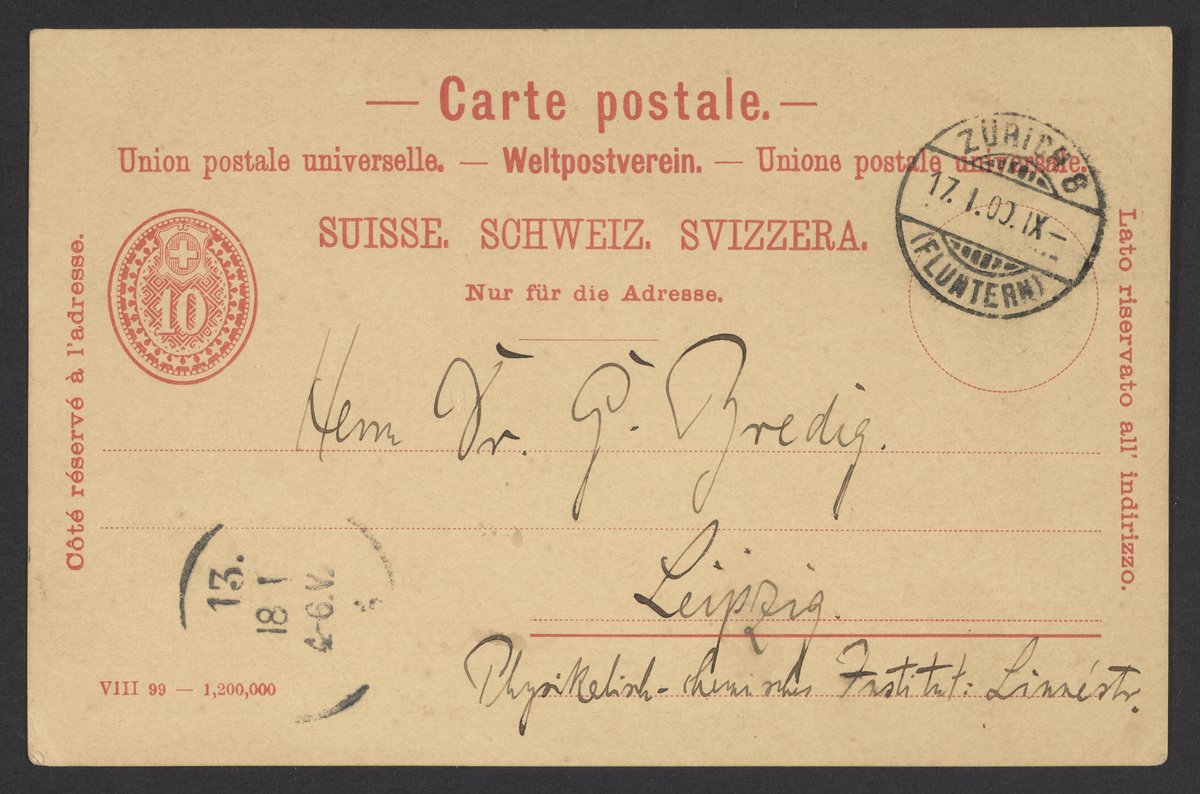 Höber, Rudolf. “Postcard from Rudolf Höber to Georg Bredig,” January 16, 1900. Papers of Georg and Max Bredig, Box 1, Folder 59. Science History Institute. Philadelphia. https://digital.sciencehistory.org/works/wgirvup.