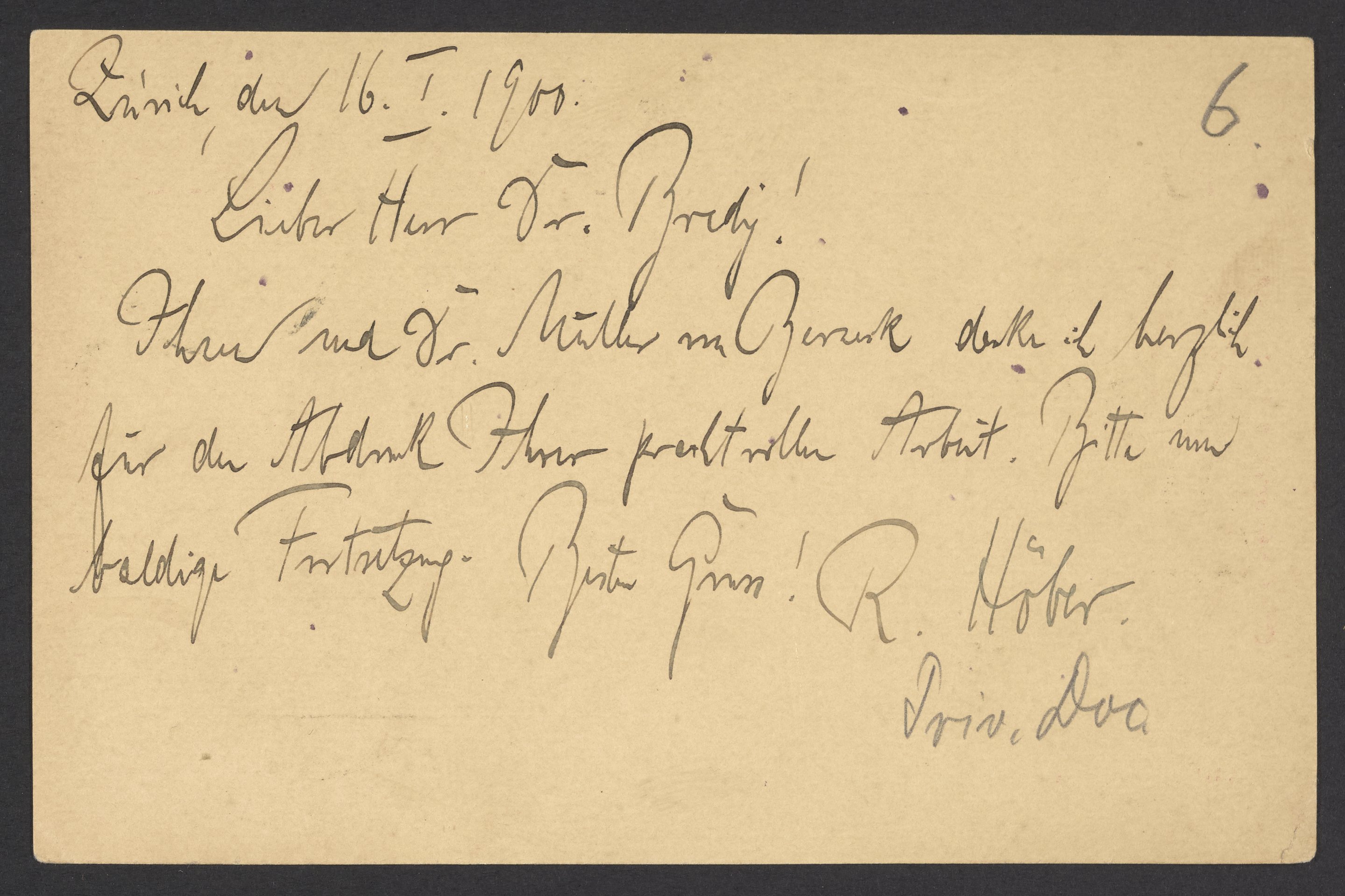Postcard from Rudolf Höber to Georg Bredig