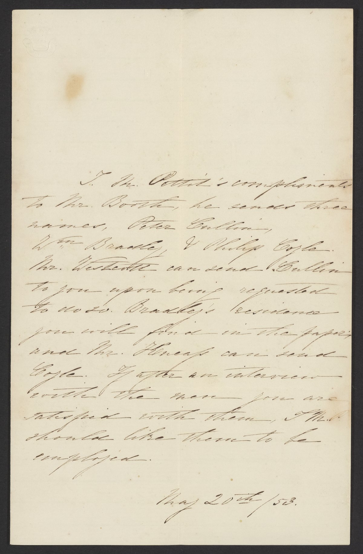 Letter from G.M. Pettit to James Curtis Booth, May 20, 1853