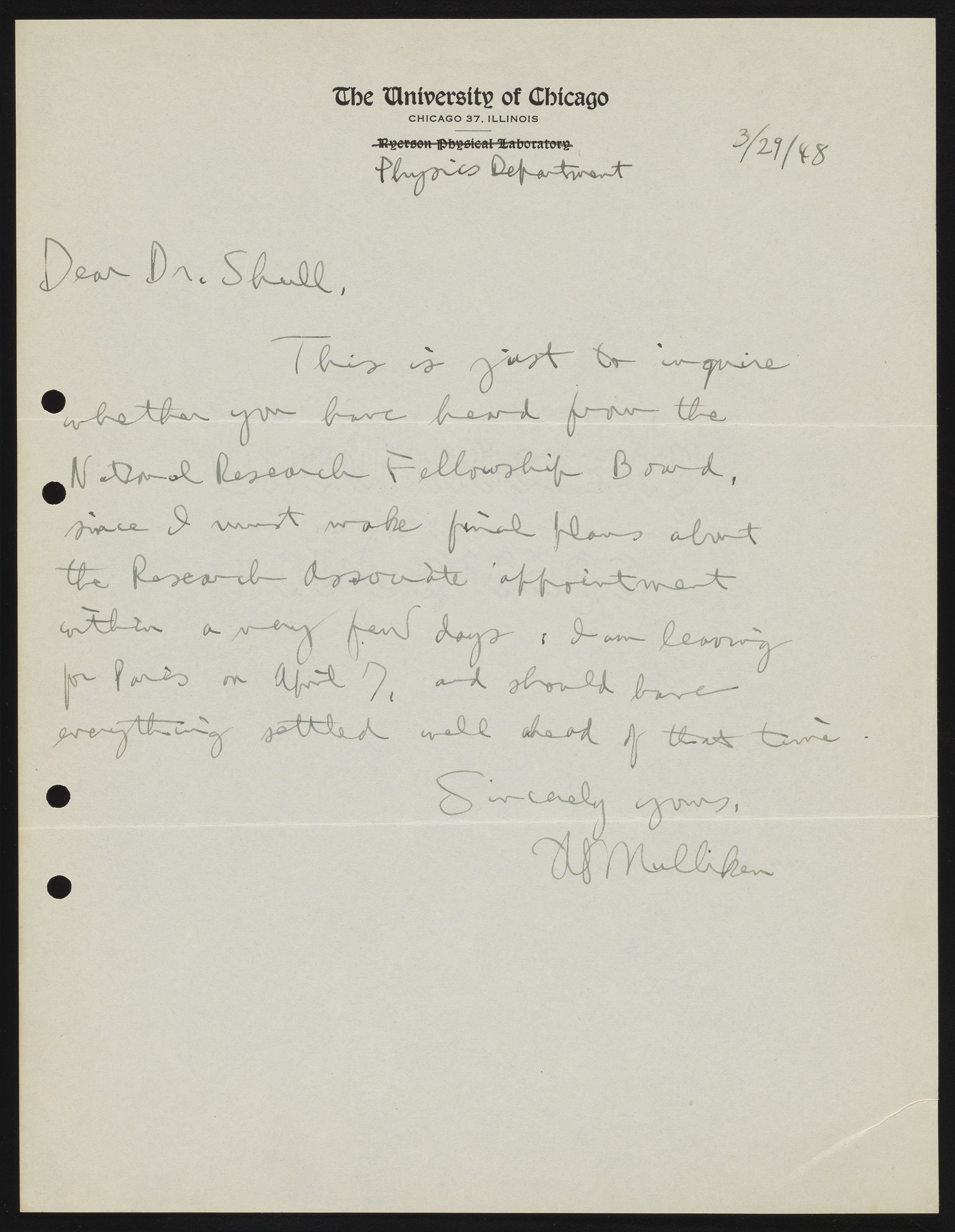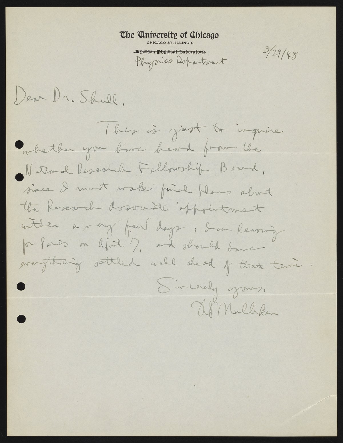 Mulliken, Robert Sanderson. “Letter from Robert S. Mulliken to Harrison Shull, 1948,” March 29, 1948. Robert S. Mulliken & Harrison Shull Correspondence, Box 1. Science History Institute. Philadelphia. https://digital.sciencehistory.org/works/wh246s23s.