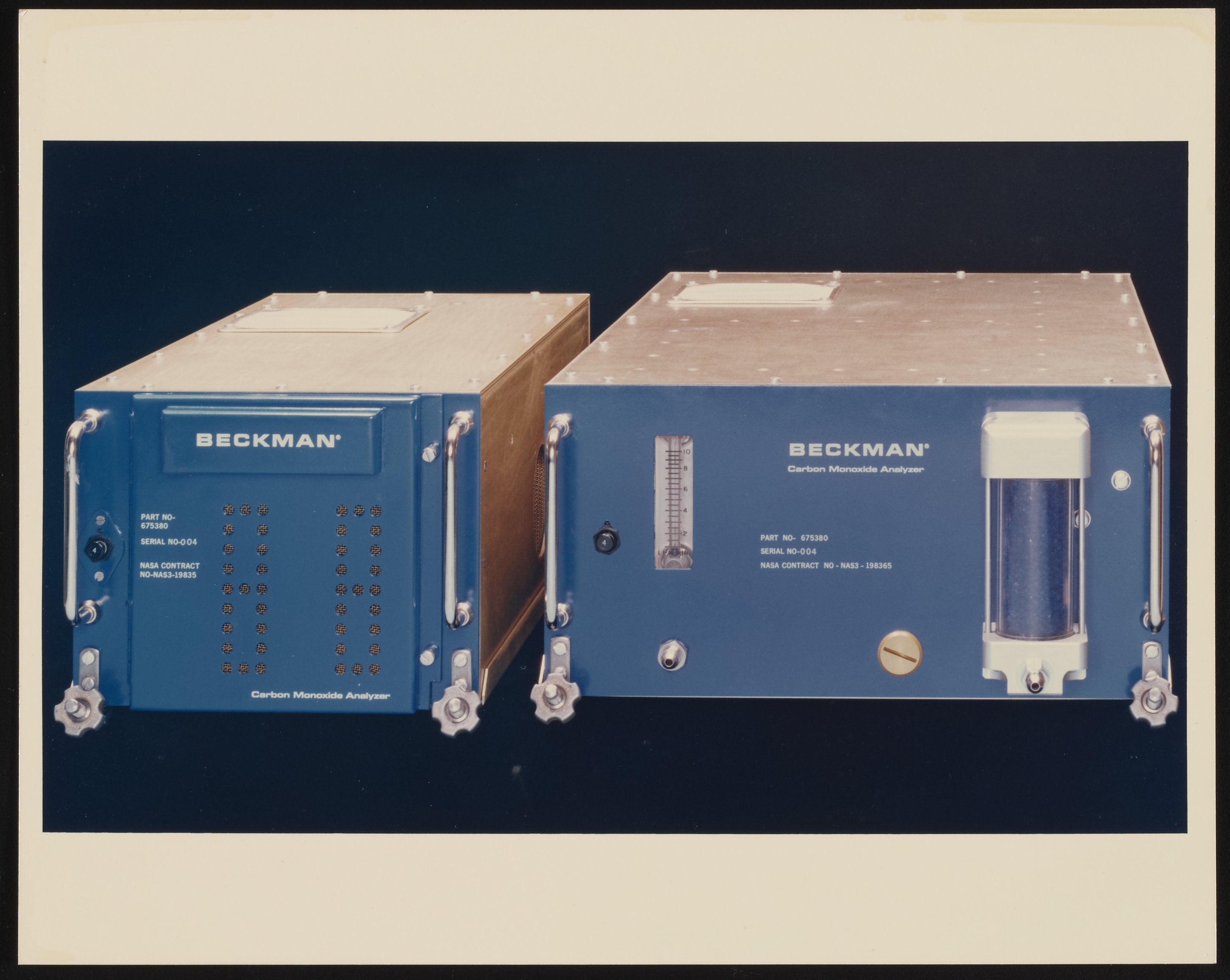 One of several carbon monoxide monitors made by Beckman Instruments' Advanced Technology Operations (ATO) for NASA's Global Air Sampling Program (GASP) in 1974. These instruments were designed to be used on commercial aircraft to monitor the atmosphere at 20 to 40 thousand feet.