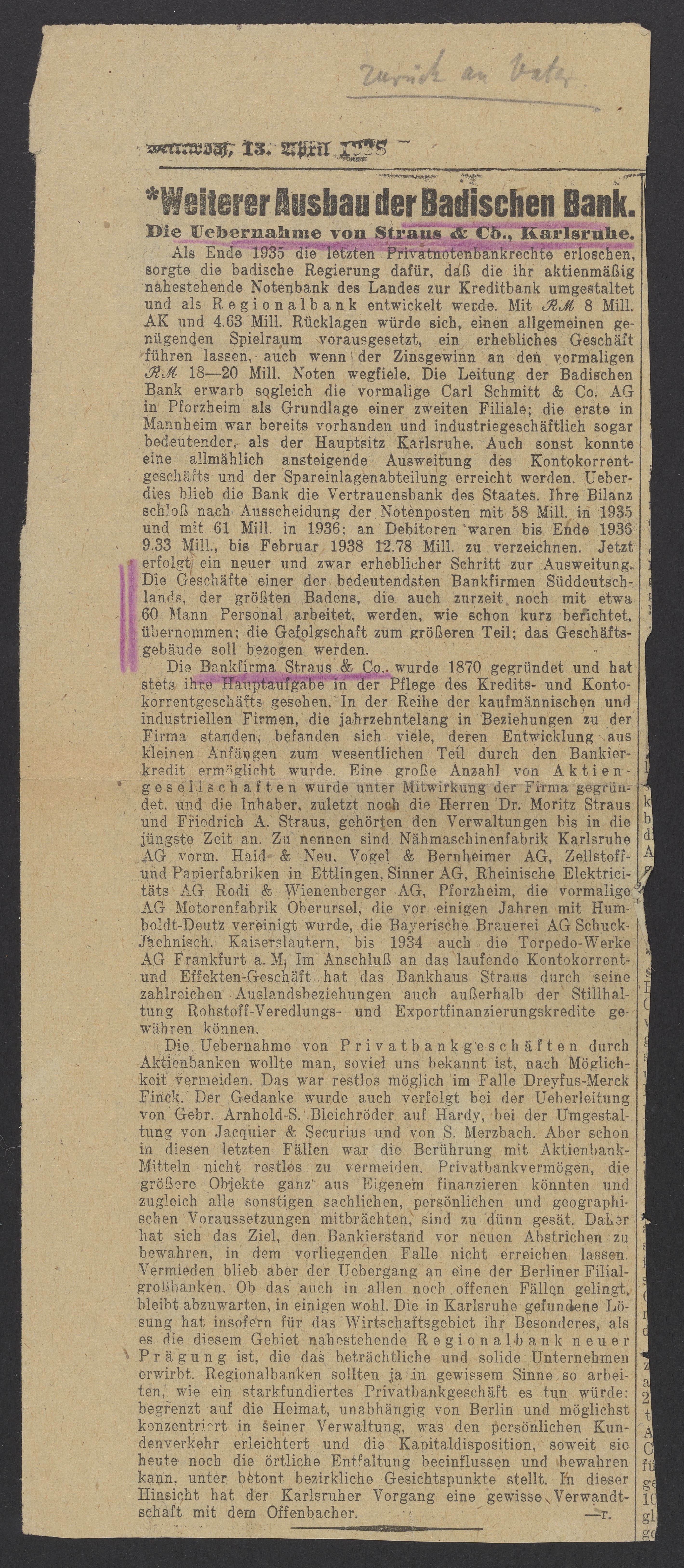 “Weiterer Ausbau Der Badischen Bank,” April 13, 1925. Papers of Georg and Max Bredig, Box 4, Folder 13. Science History Institute. Philadelphia. https://digital.sciencehistory.org/works/whpeetf.