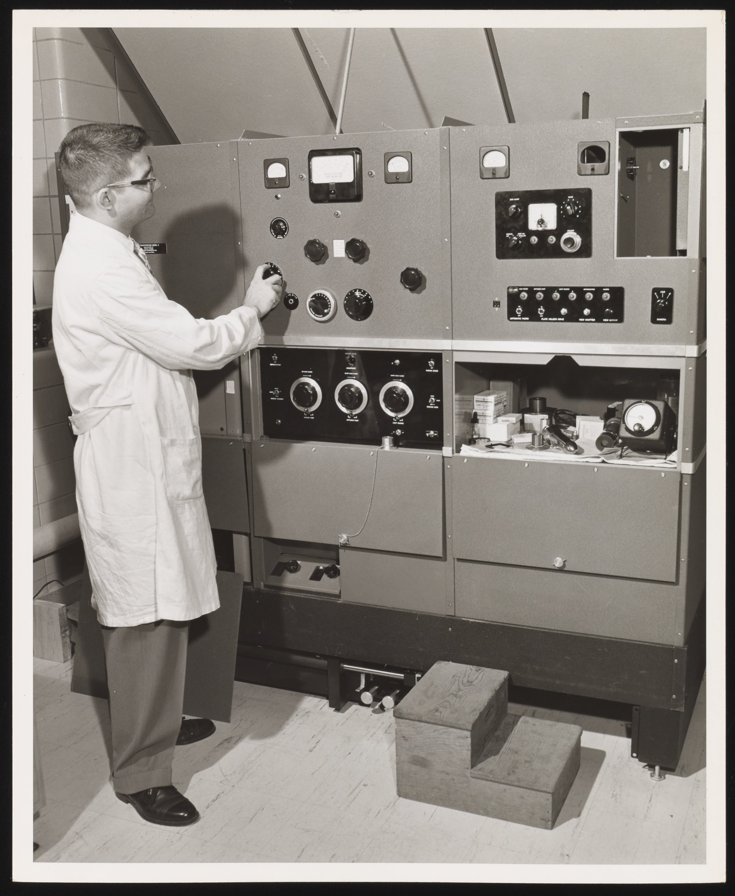 Wollin, William, and Russell Illig. “Beckman Model E Analytical Ultracentrifuge,” 1950–1959. Beckman Historical Collection, Box 59, Folder 116. Science History Institute. Philadelphia. https://digital.sciencehistory.org/works/wm117p37c.