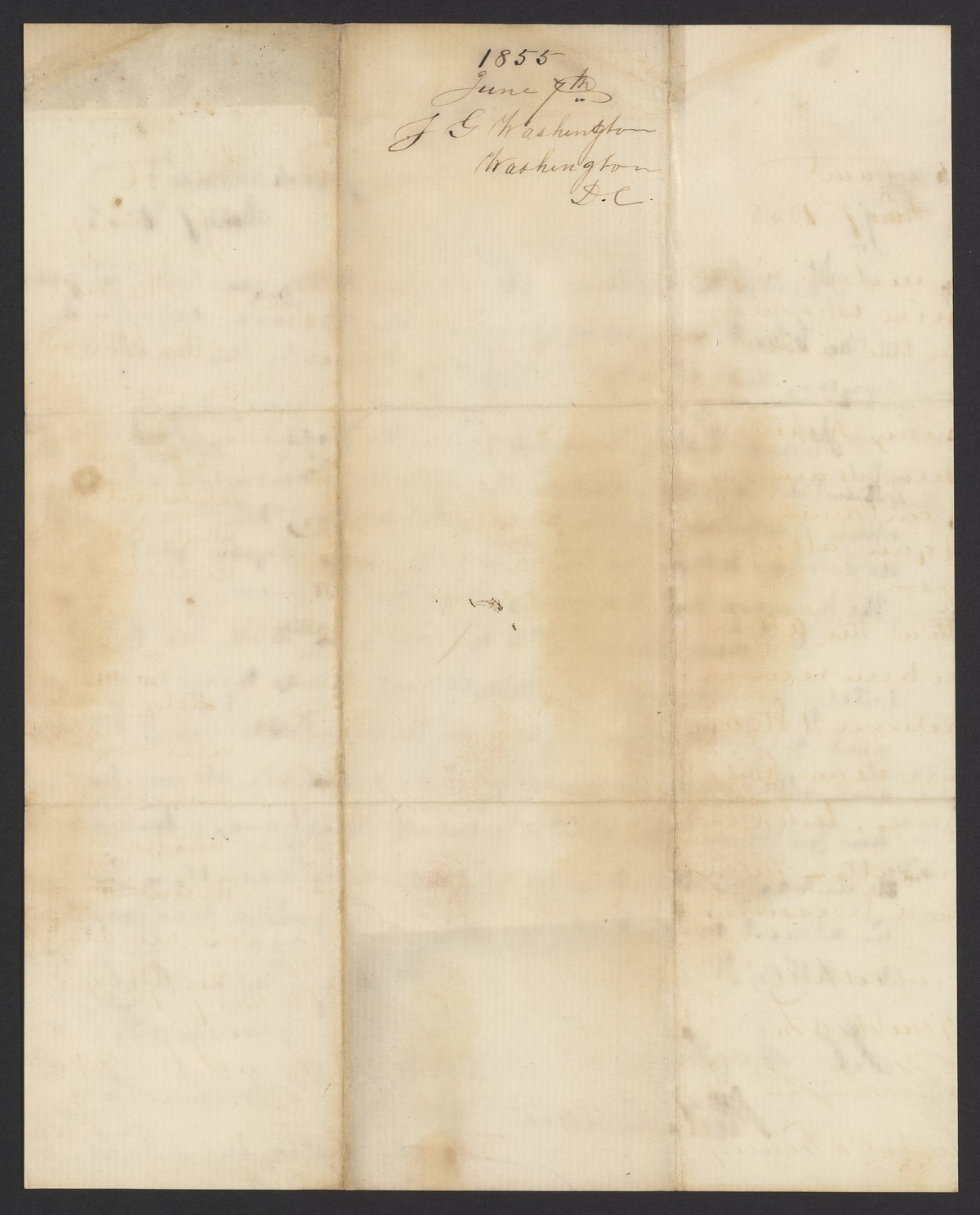 Letter from J. G. Washington to James Curtis Booth, June 1, 1855