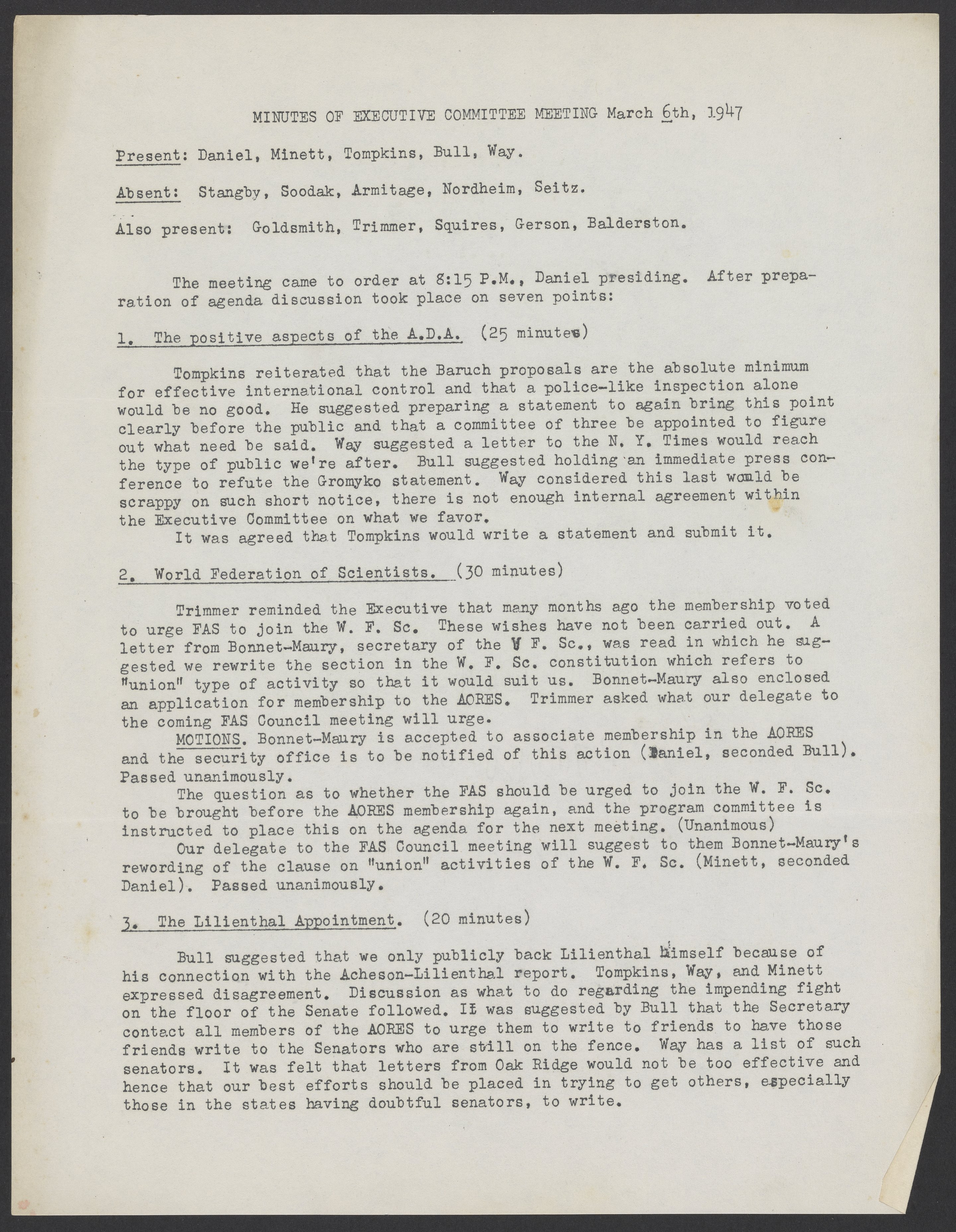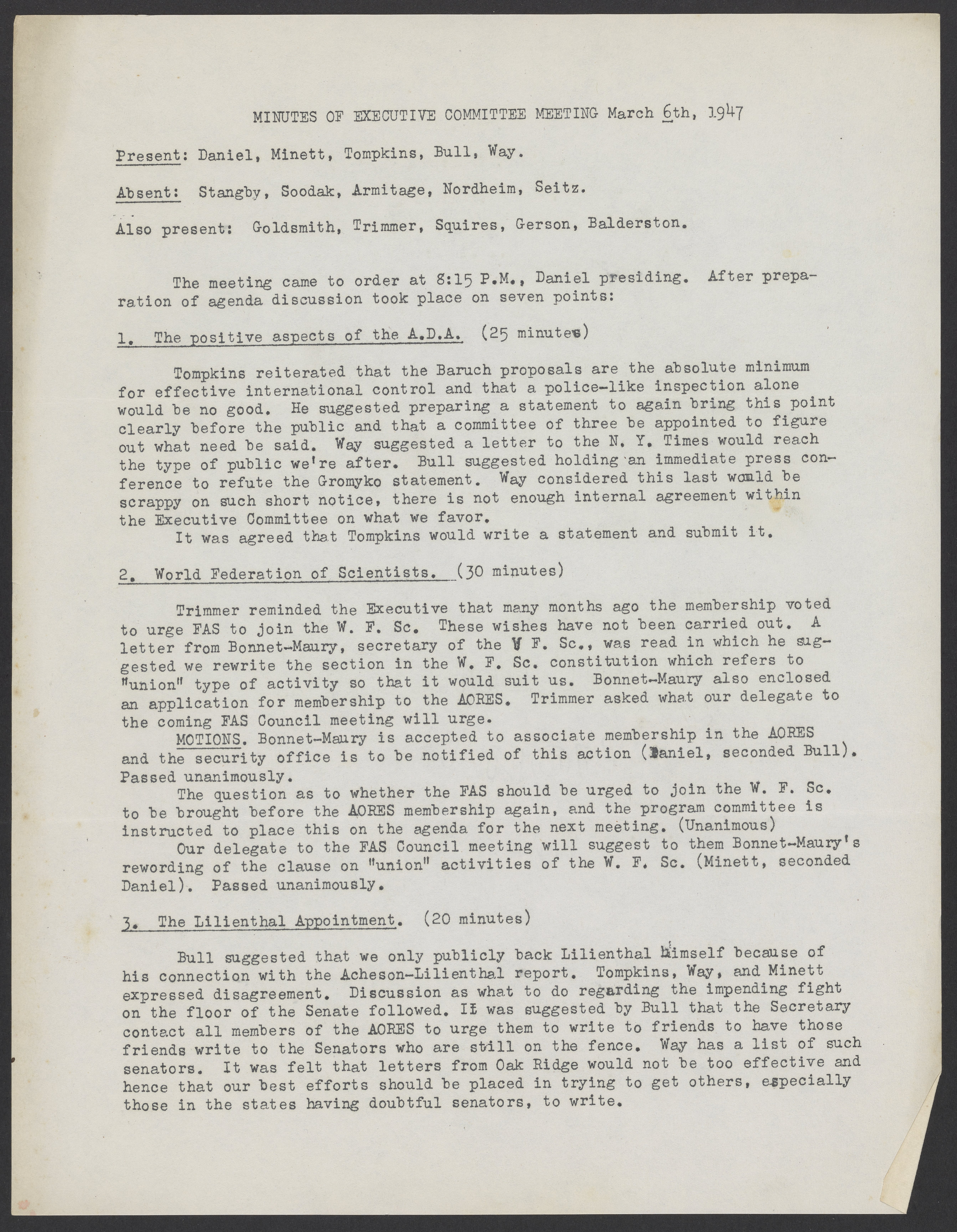 Association of Oak Ridge Engineers and Scientists (AORES) meeting minutes, March 6, 1947