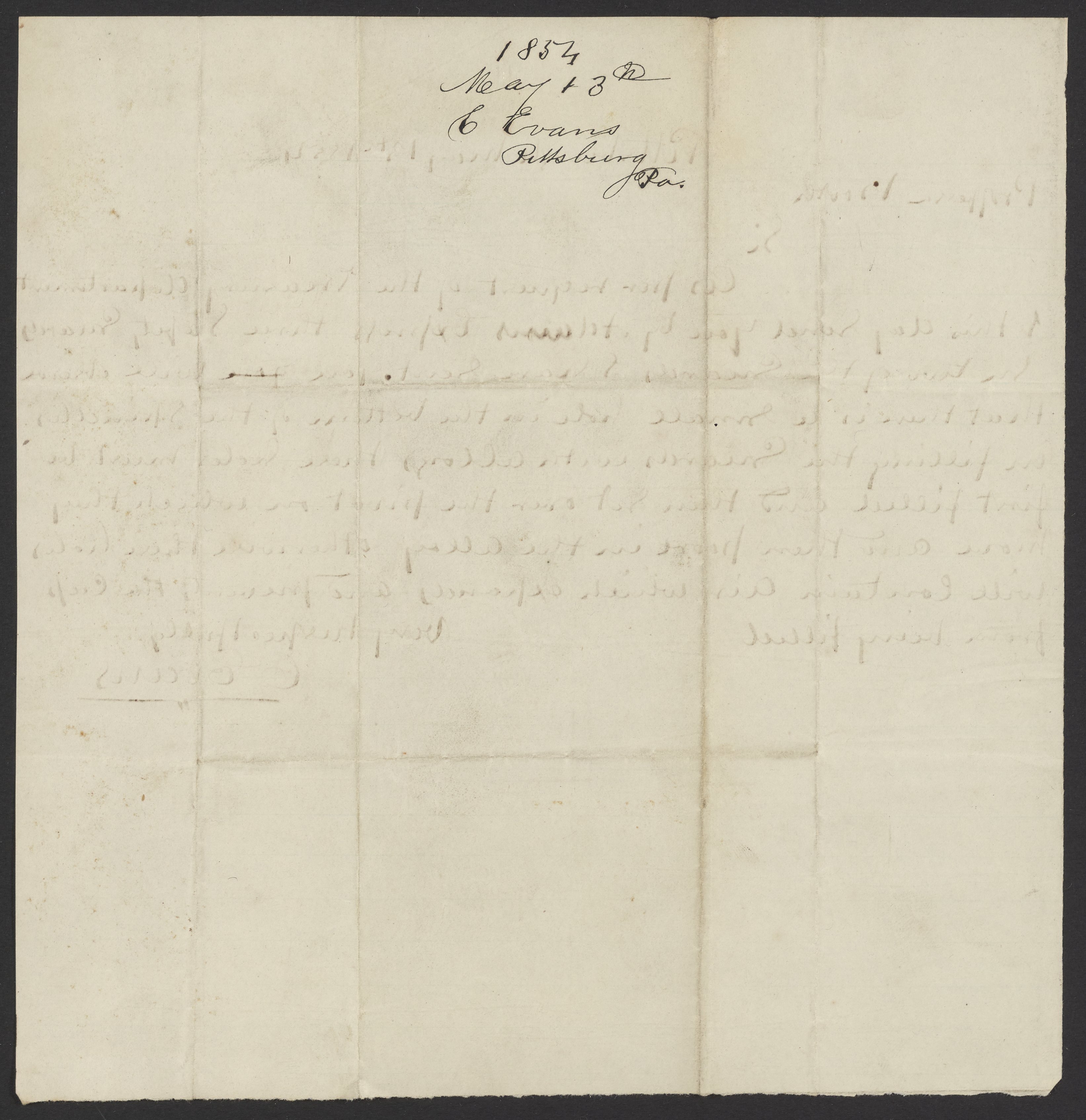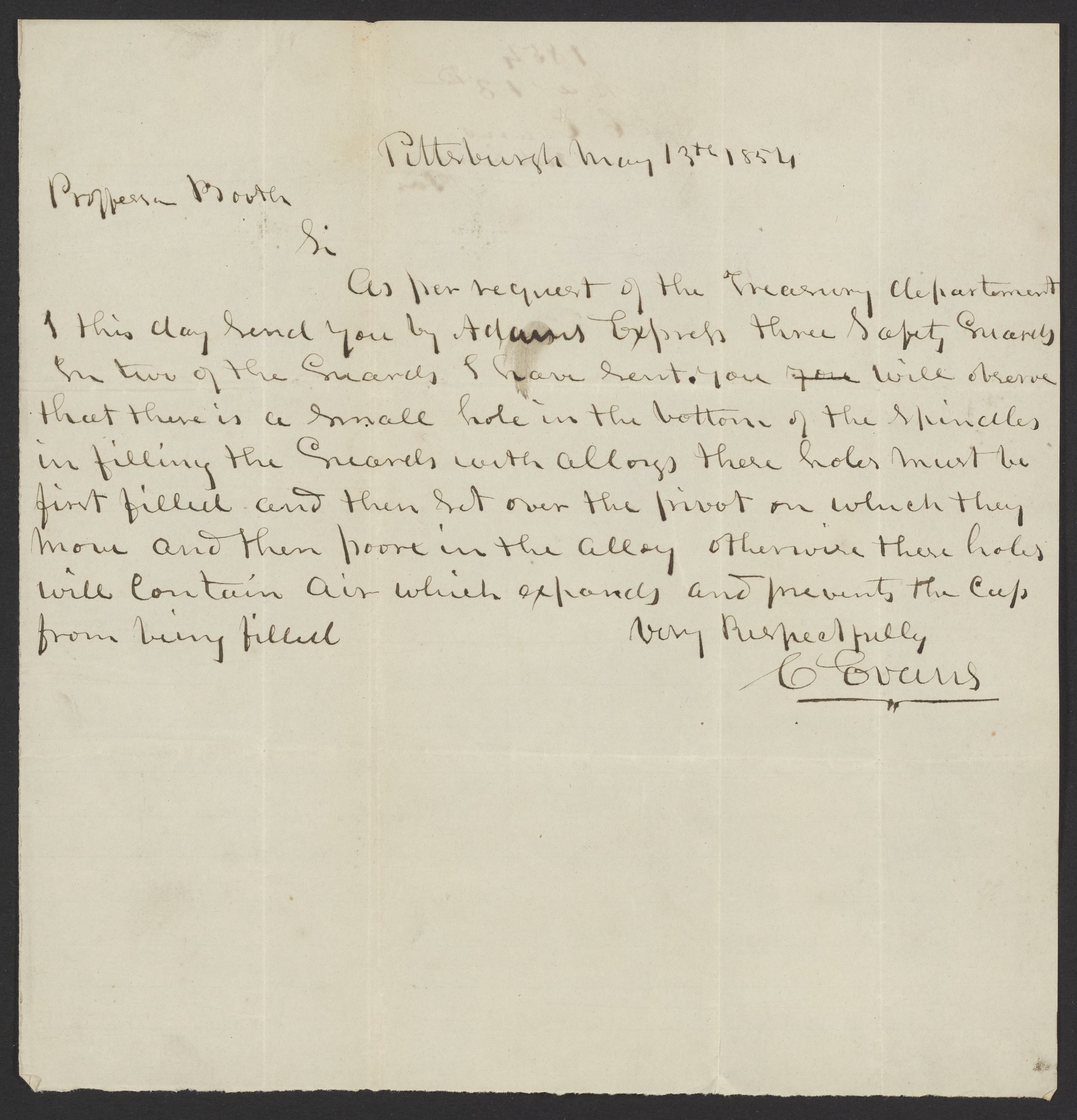 Letter from C. Evans to James Curtis Booth, May 13, 1854