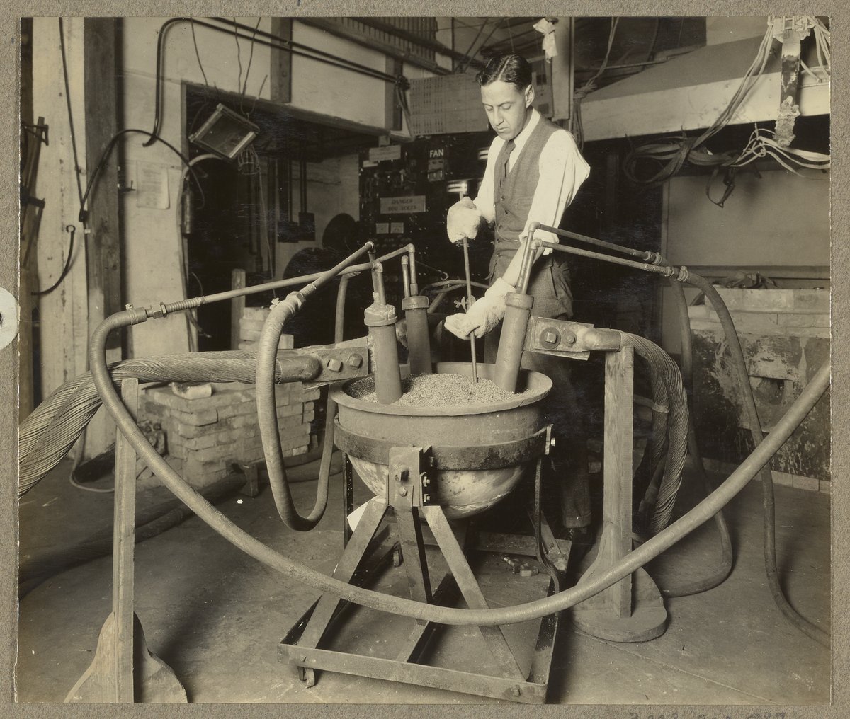 “Dr. J.G. Thompson with Ammonia Catalyst Fusion Pot,” April 1926. Travis P. Hignett Collection of Fixed Nitrogen Research Laboratory Photographs, Box 1. Science History Institute. Philadelphia. https://digital.sciencehistory.org/works/x059c743t.