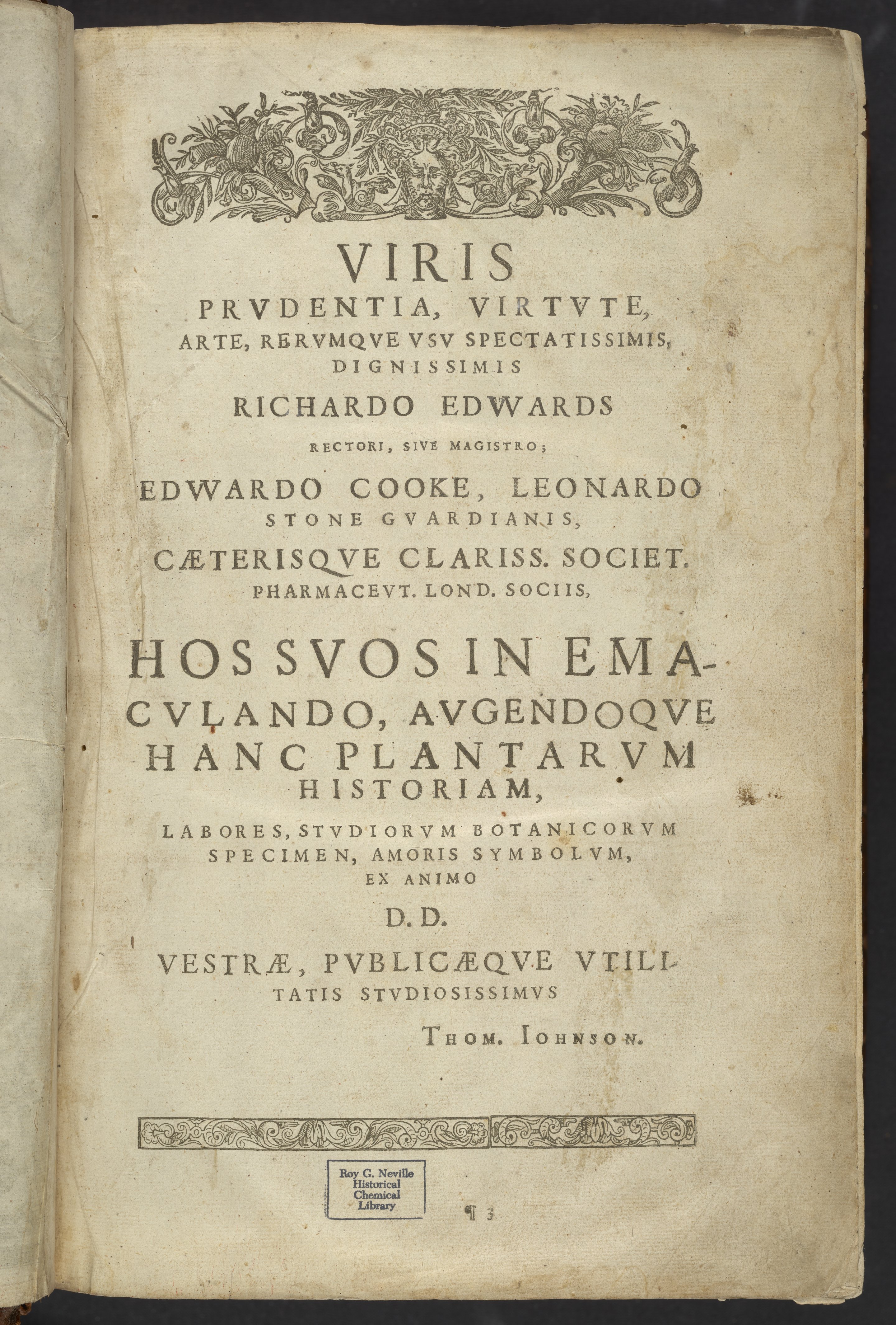Gerard, John, Rembert Dodoens, and Iacobus Theodorus. The Herball, or, Generall Historie of Plantes. London, England: Thomas Johnson, 1633. https://digital.sciencehistory.org/works/x059c8449.
