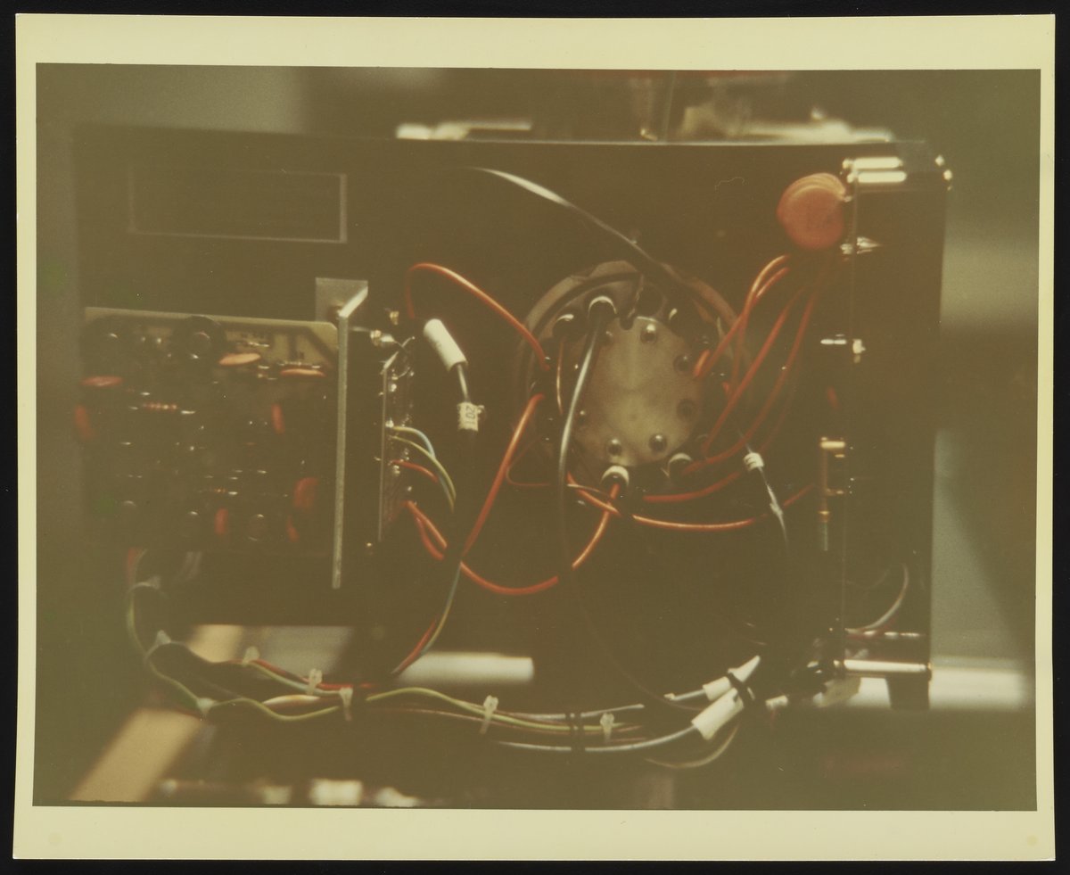 Small JPG1200 x 981px — 107 KBLarge JPG2880 x 2355px — 516 KBFull-sized JPG4260 x 3484px — 1.0 MBOriginal fileTIFF — 4260 x 3484px — 42.5 MBTwo close-up views of the back of an unidentified scientific apparatus, likely an accessory for a Bendix Time-of-Flight Mass Spectrometer, with view of assorted electrical cables and wires.