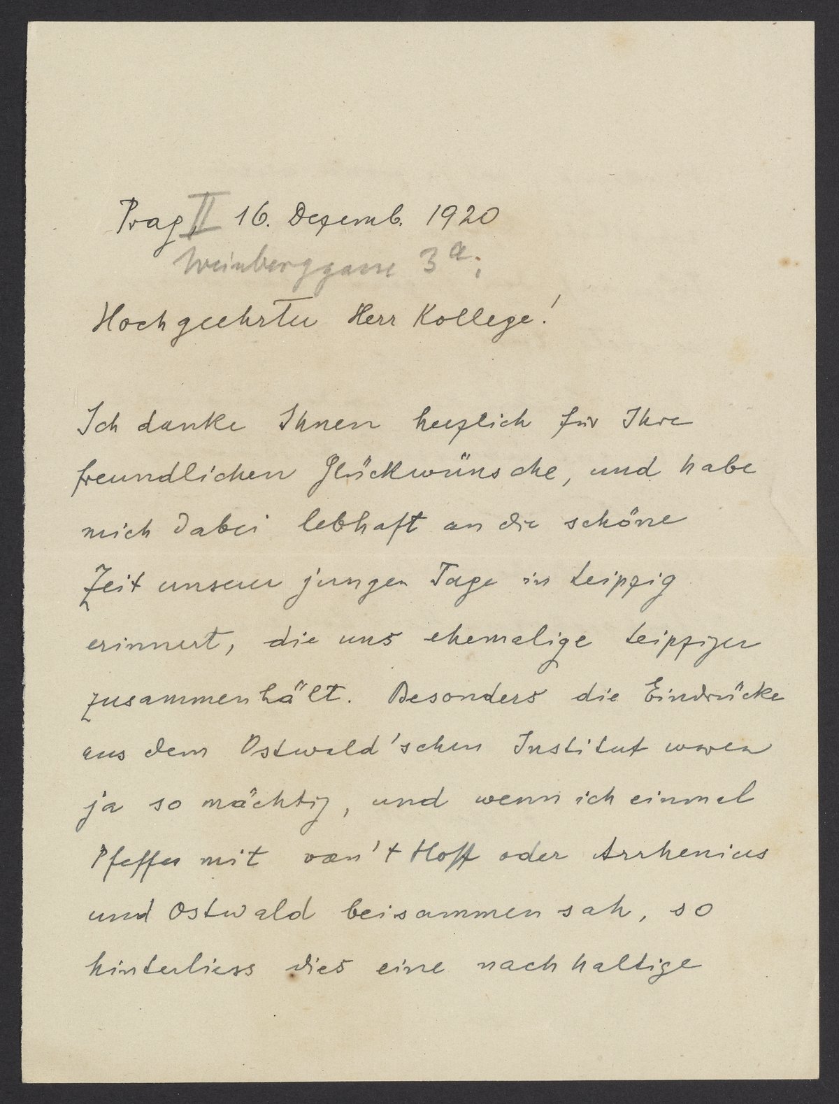 Letter from Fritz Haber to Georg Bredig, December 1920