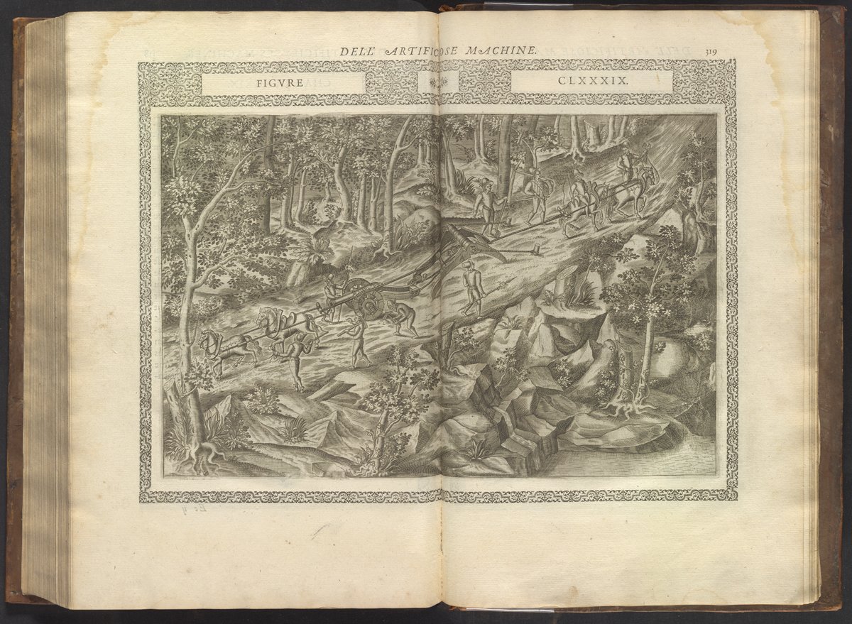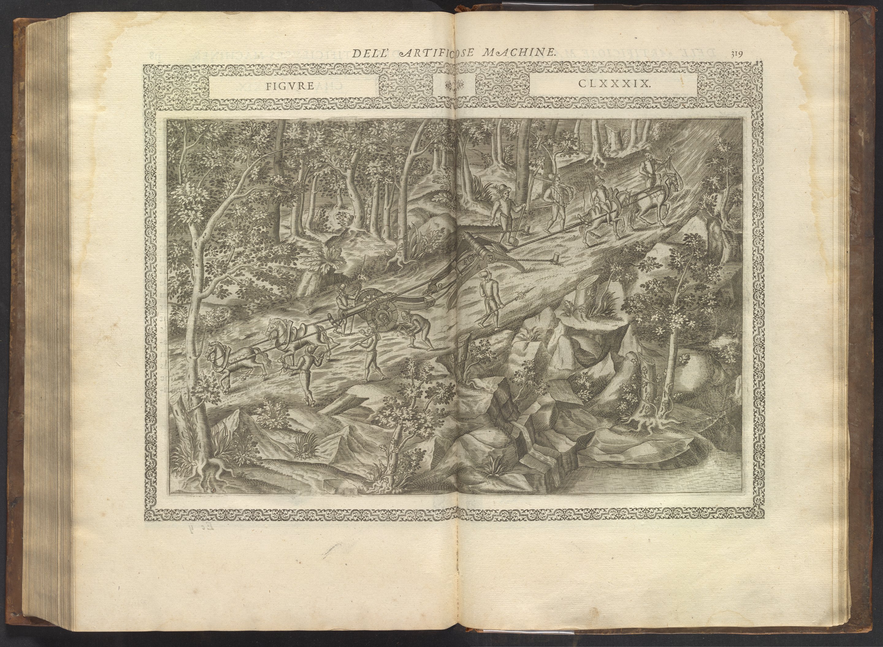 Ramelli, Agostino. “Plate 189: Machine for Moving Artillery in Steep and Mountainous Places.” In Le Diverse Et Artificiose Machine Del Capitano Agostino Ramelli. Paris, France, 1588. https://digital.sciencehistory.org/works/x633f126n.