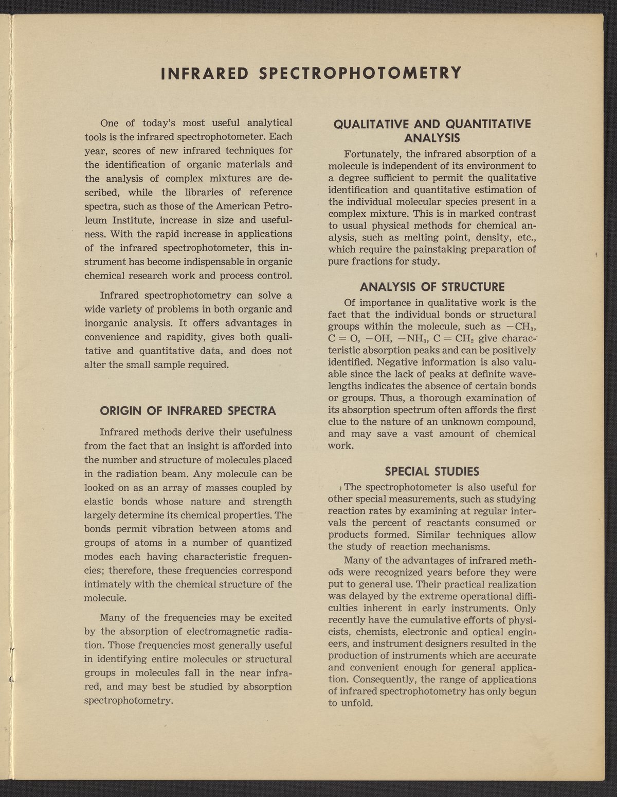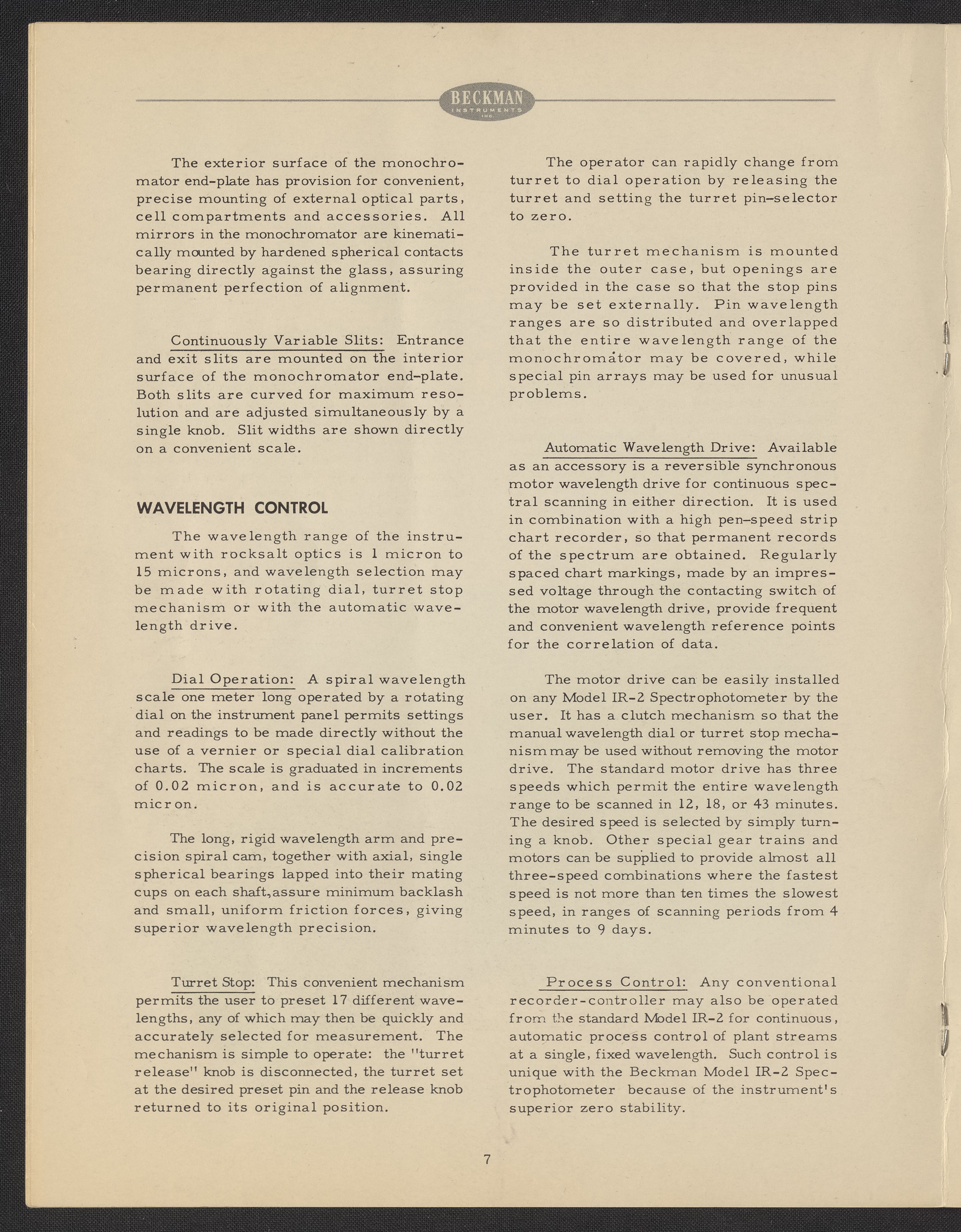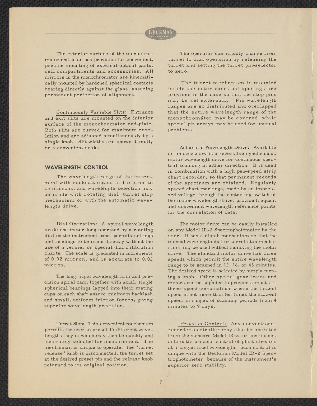 Small JPG1200 x 1523px — 275 KBFull-sized JPG2776 x 3524px — 1.4 MBOriginal fileTIFF — 2776 x 3524px — 28.1 MBThe Beckman Instruments IR spectrophotometers began as a request from the Office of Rubber Reserve to Arnold O. Beckman in 1942, asking for an infrared spectrophotometer that they could use to create rubber. Under this contract, Beckman Instruments developed a single-beam spectrophotometer based on Robert Battrain’s extant design, which in 1942 was sold as the IR-1. With the IR-4 in 1956, Beckman Instruments branched out into double-beam design and kicked off a golden age of IR spectrophotometer production that lasted until 1973.