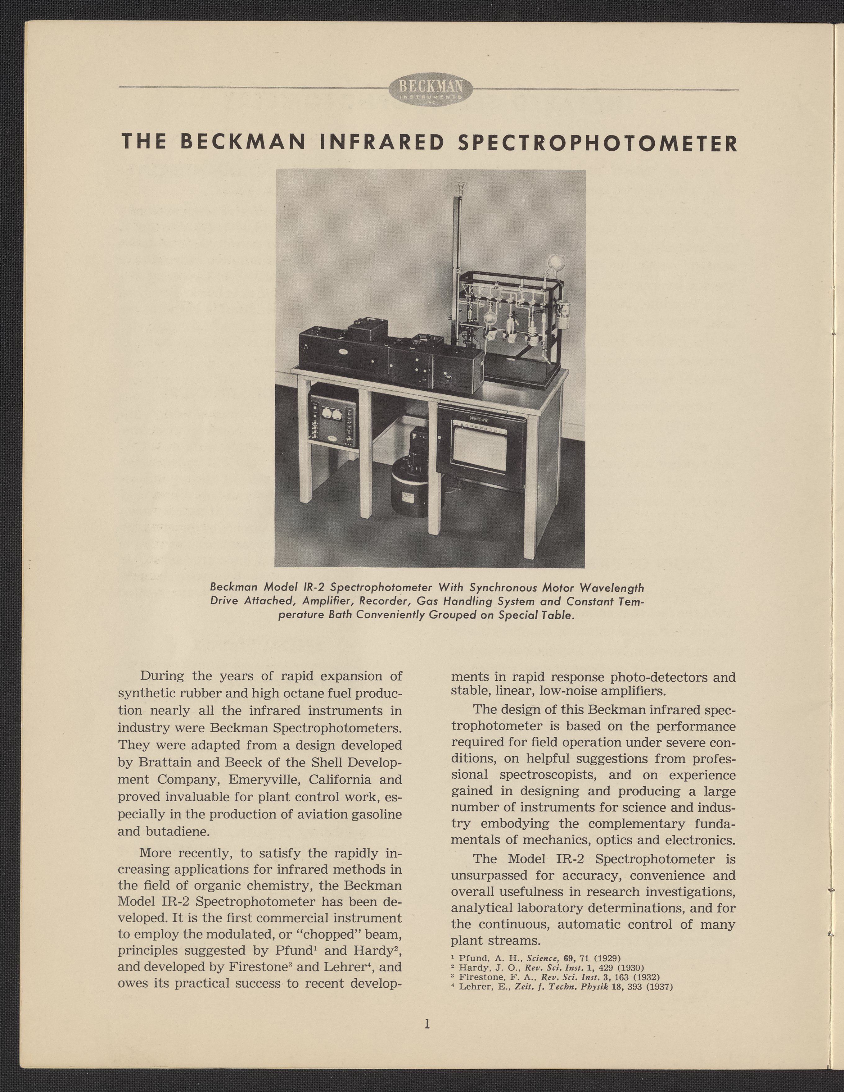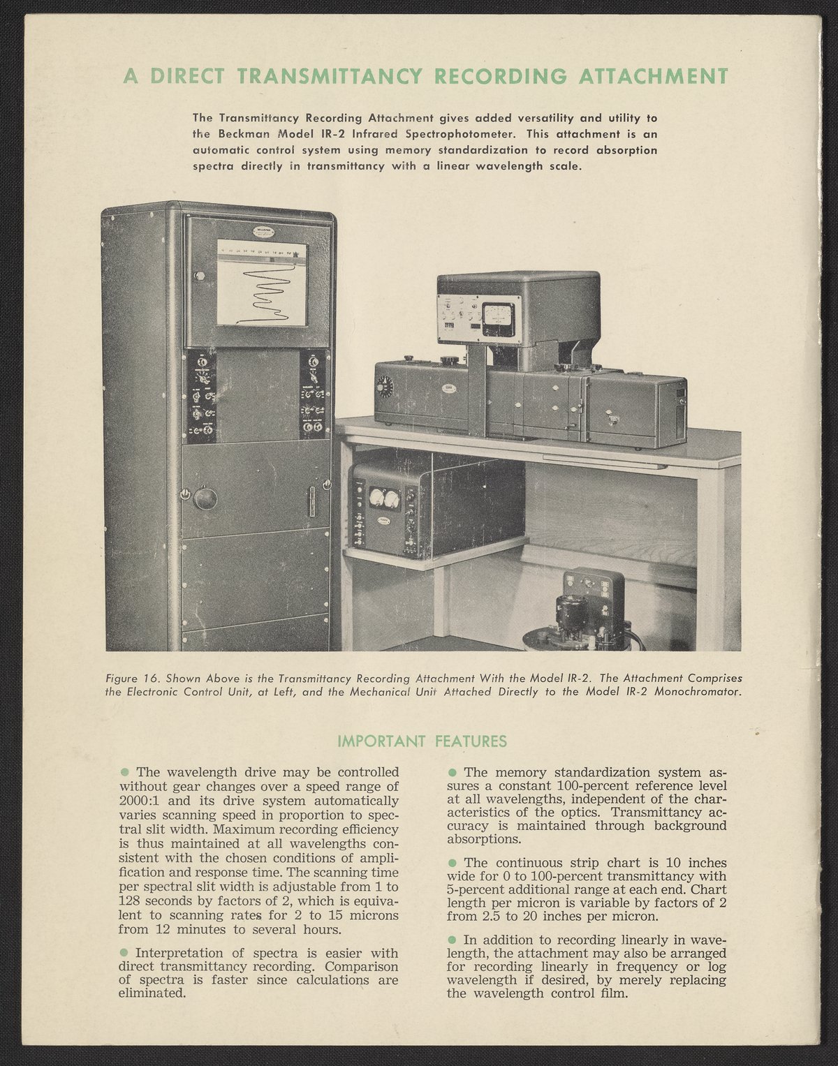 Beckman Instruments, Inc. “Beckman Infrared Spectrophotometer Model IR-2,” 1946–1955. Beckman Historical Collection, Box 18, Folder 14. Science History Institute. Philadelphia. https://digital.sciencehistory.org/works/xd07gt25z.