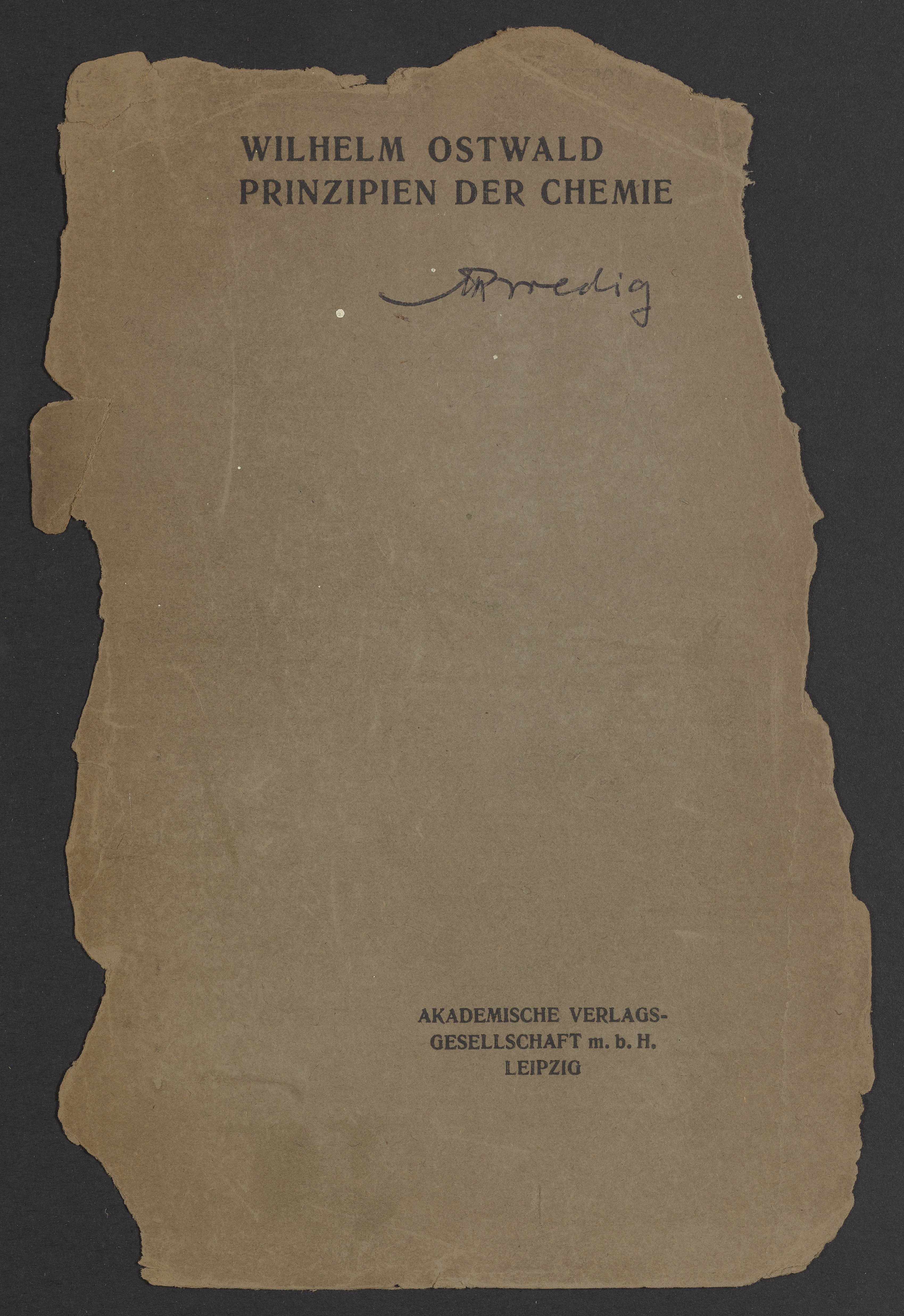 “Cover of Wilhelm Ostwald Prinzipien Der Chemie,” circa 1907. Papers of Georg and Max Bredig, Box 4, Folder 30. Science History Institute. Philadelphia. https://digital.sciencehistory.org/works/xf6wwl2.