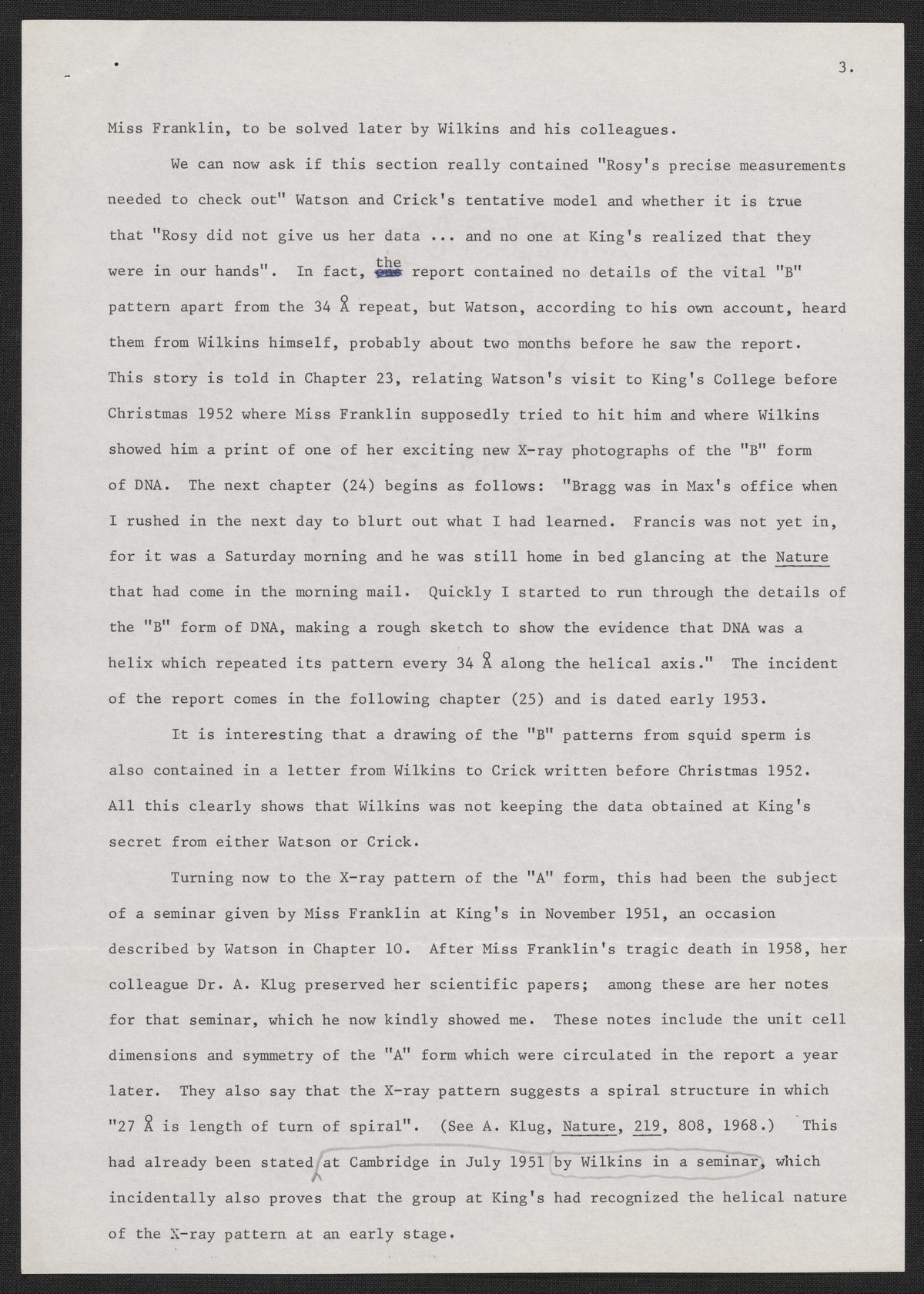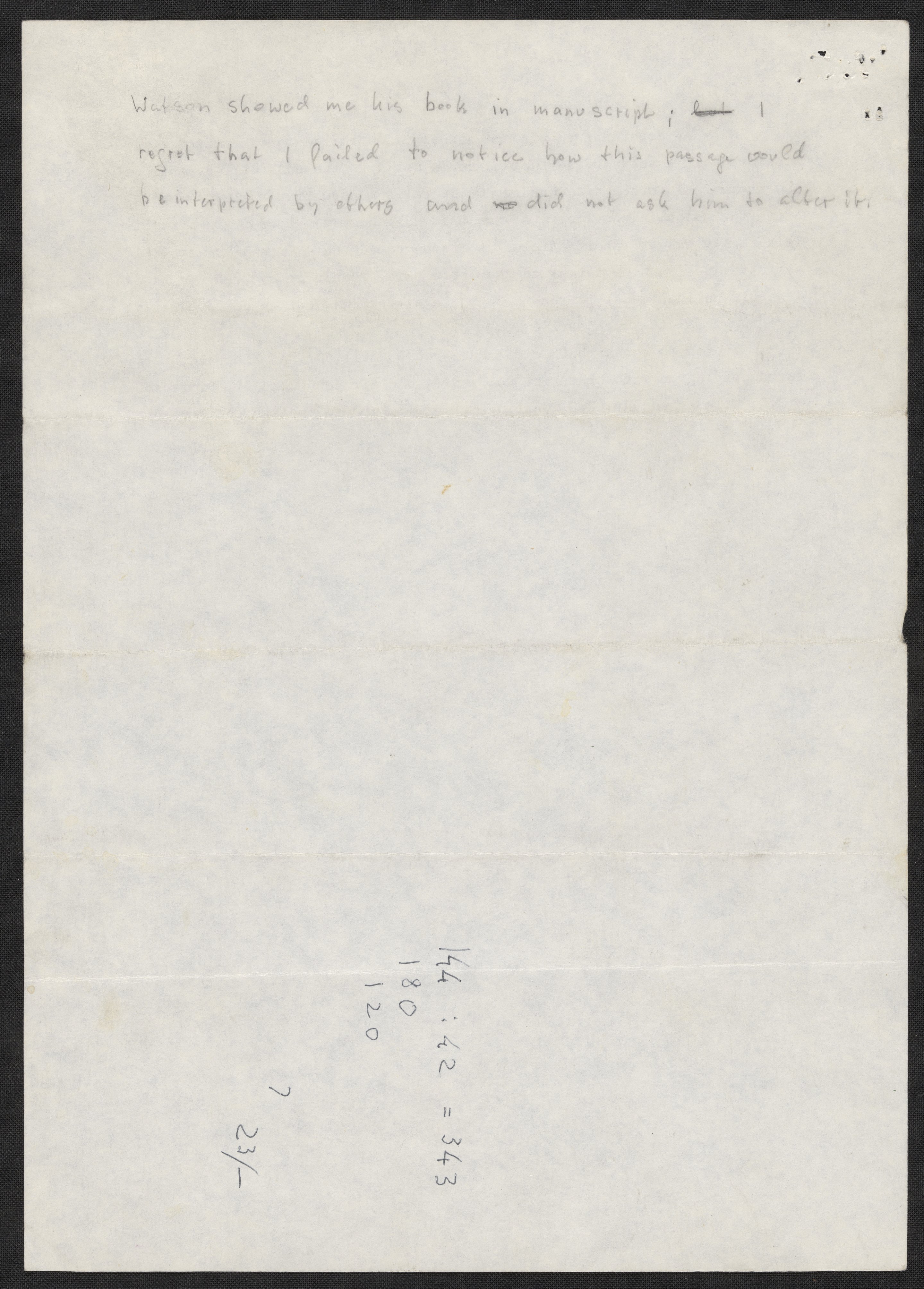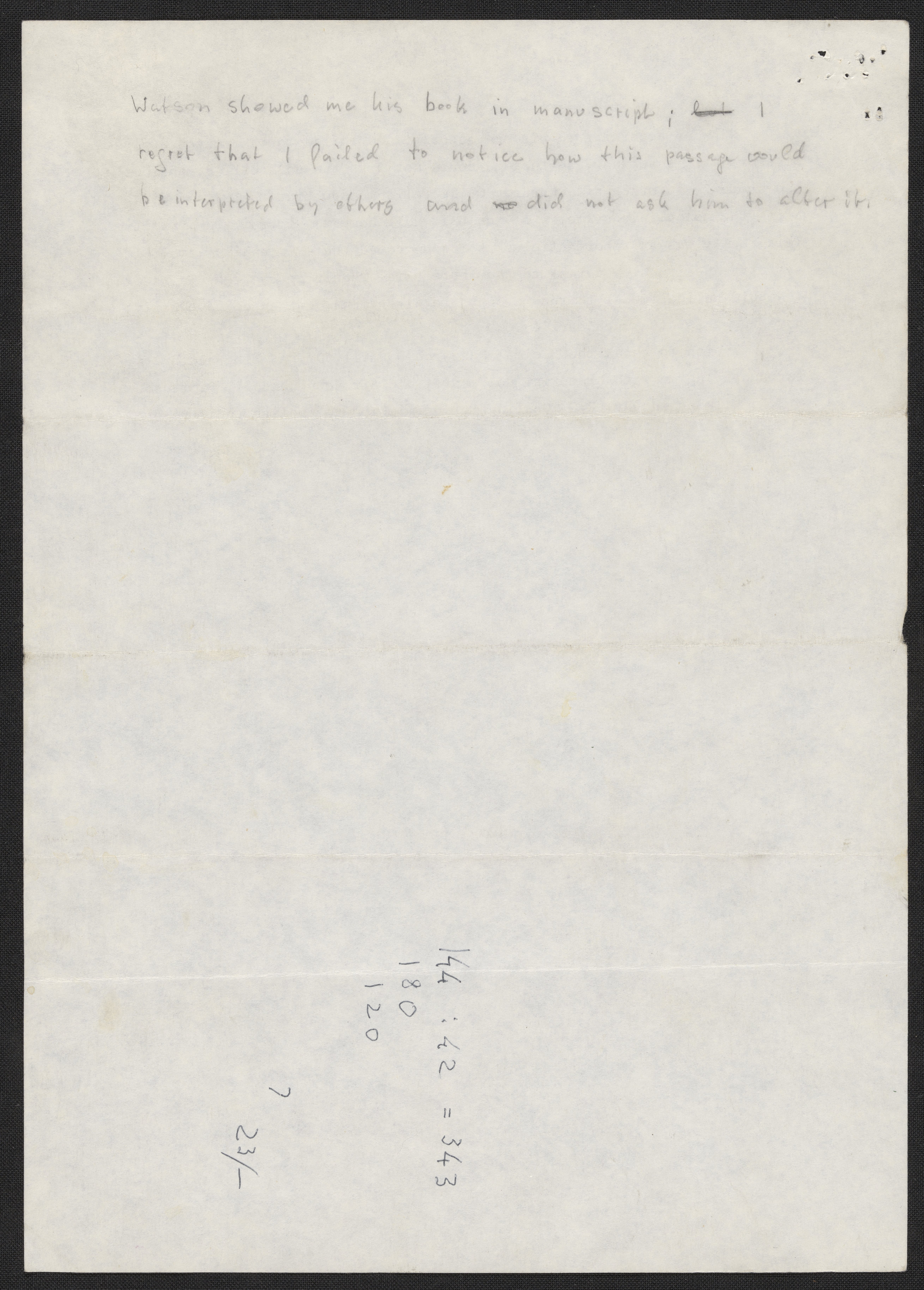 Small JPG1200 x 1701px — 351 KBLarge JPG2880 x 4081px — 1.8 MBFull-sized JPG5183 x 7345px — 5.5 MBOriginal fileTIFF — 5183 x 7345px — 109 MBDrafts of a letter to the editor of Scientific American, written by Max Perutz (1914-2002), regarding Andre Lwoff's (1902-1994) review of James D. Watson's (1928-2025) book The Double Helix.