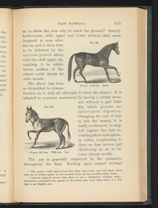Steele, Joel Dorman, and Jenks, J. W. P. (John Whipple Potter). “Figure 368. Horse. Figure 369. Wild Ass.” Popular Zoology. New York, New York: Chautauqua Press, 1887. https://digital.sciencehistory.org/works/xnzfsl6.