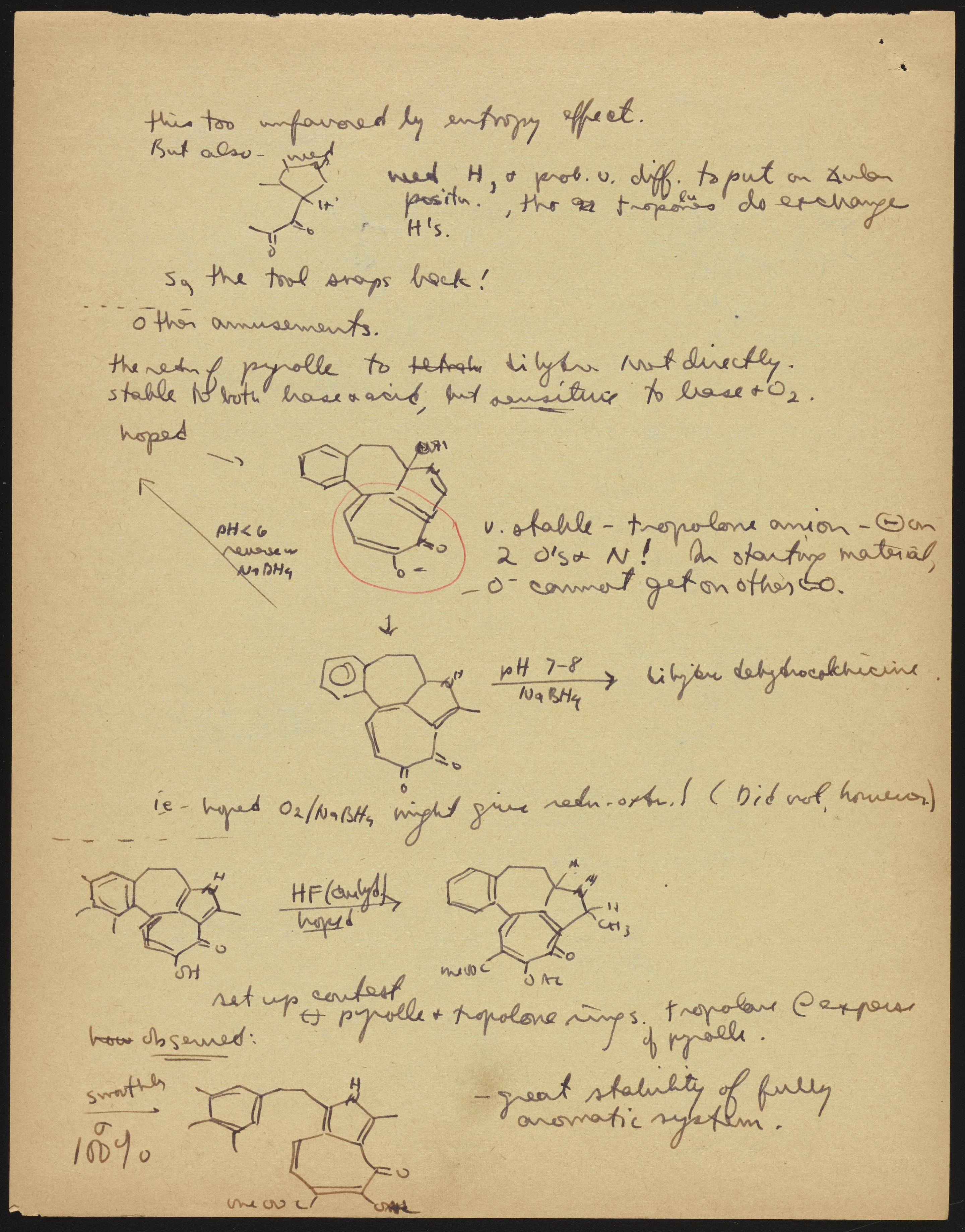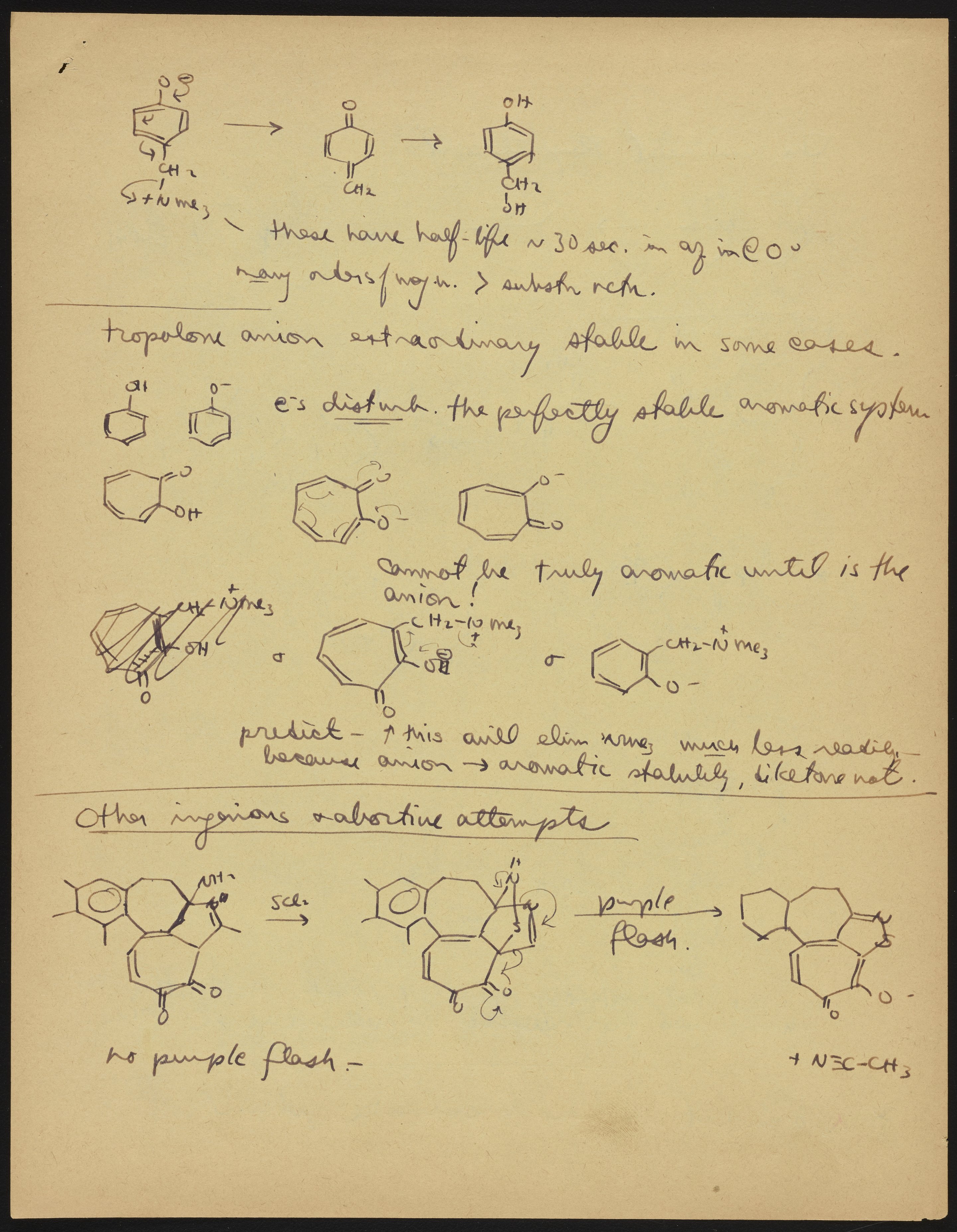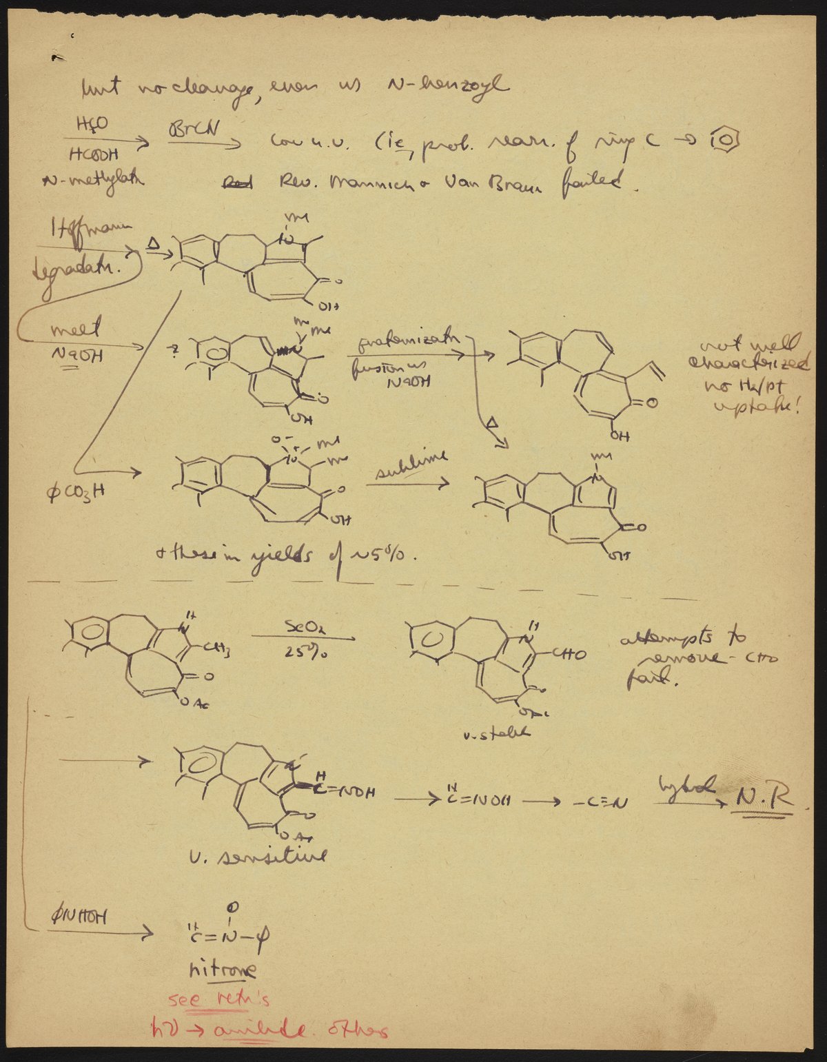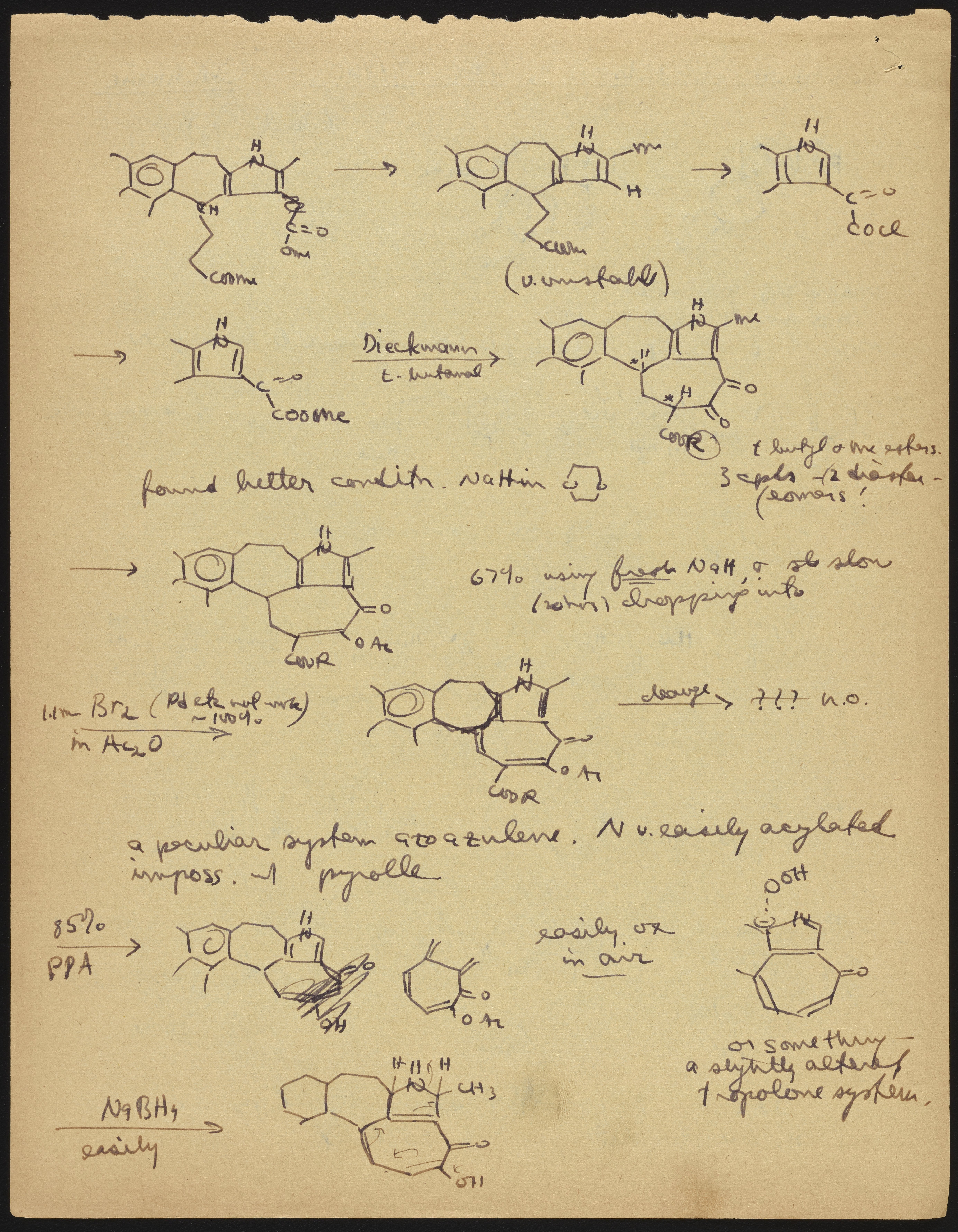 Kohler, Robert E. “R. B. (Robert Burns) Woodward Seminar Entitled ‘Colchicine.’” Notes from R. B. (Robert Burns) Woodward's Seminars, circa 1959–1966. Folder 2. Science History Institute. Philadelphia. https://digital.sciencehistory.org/works/xp68kh266.