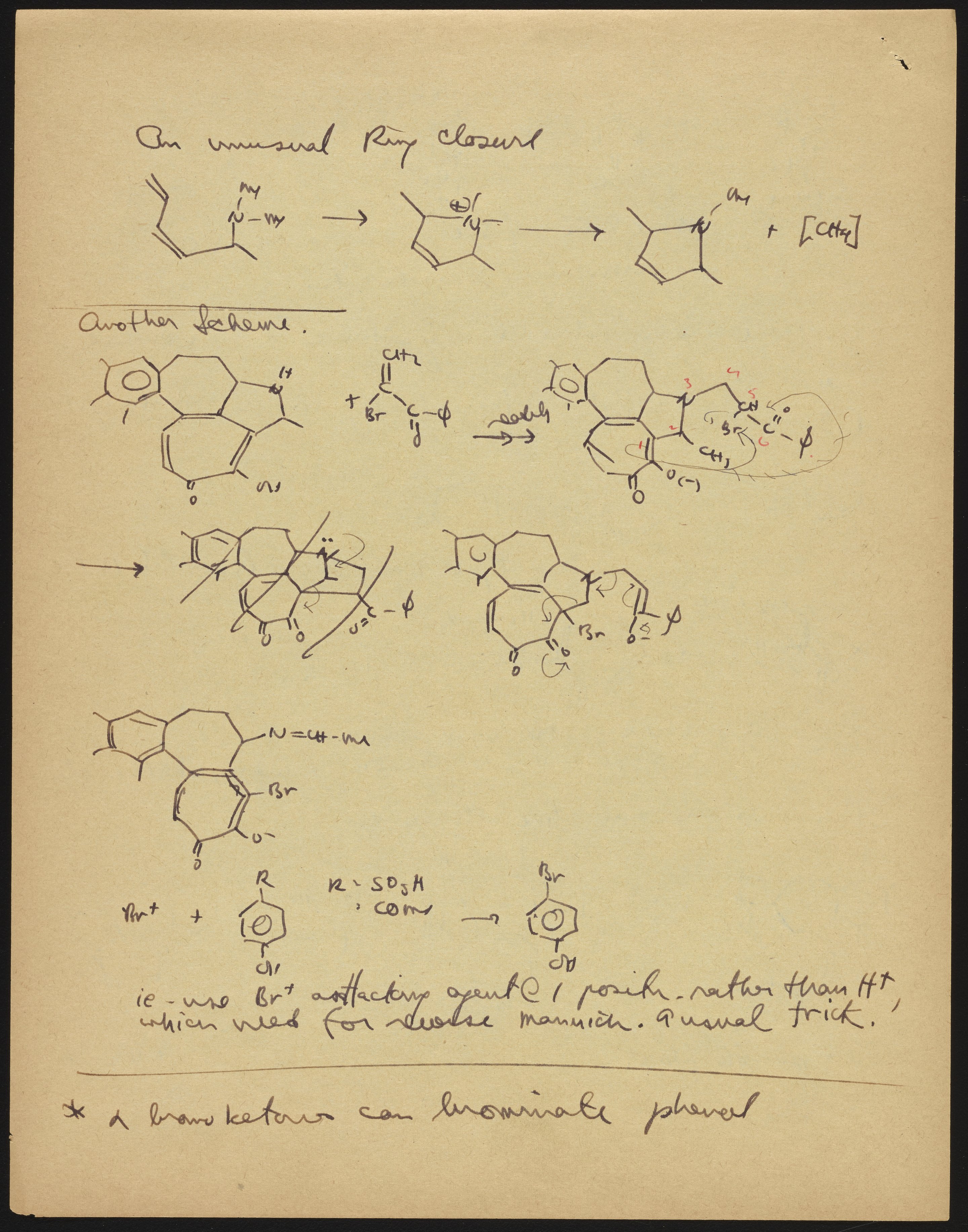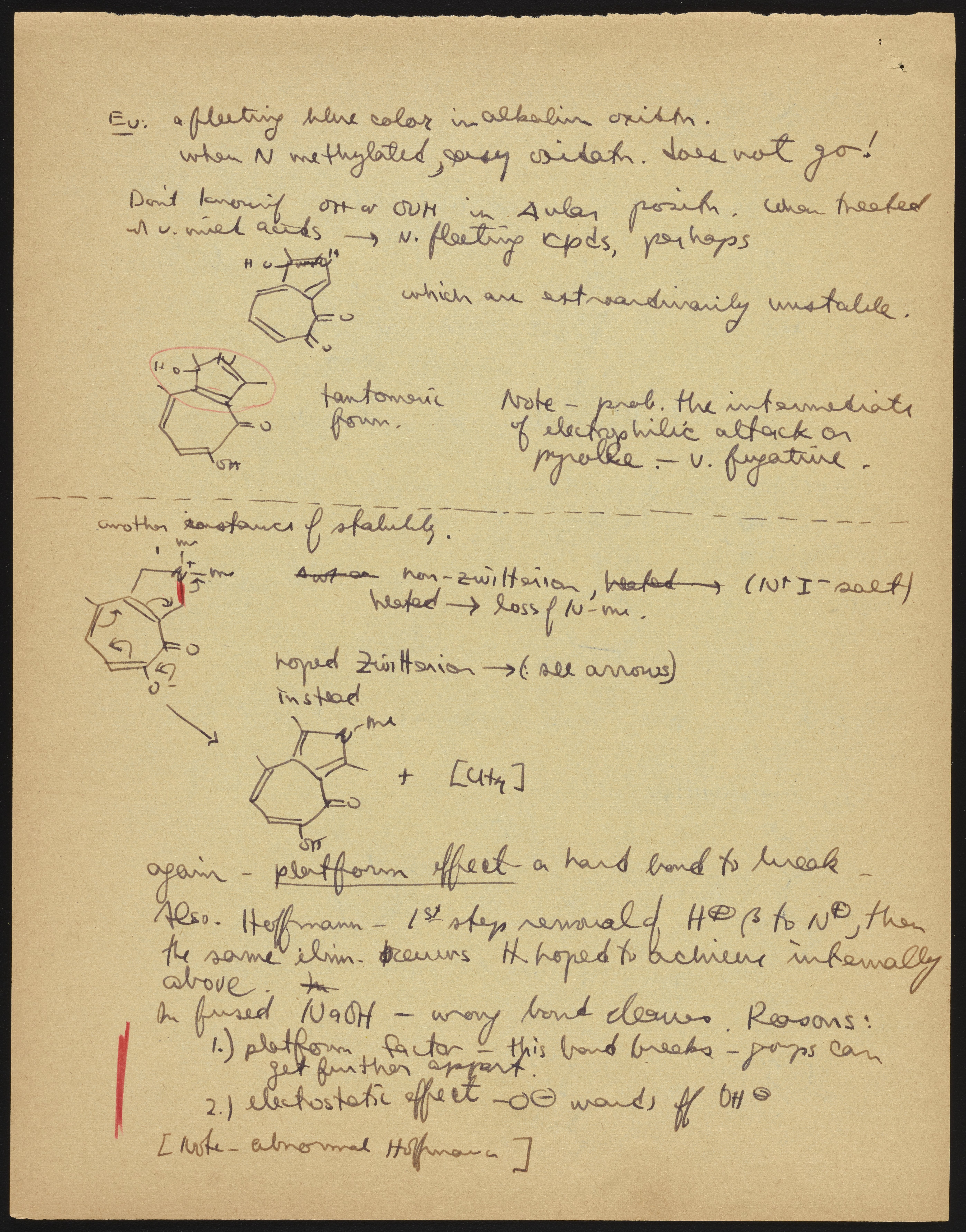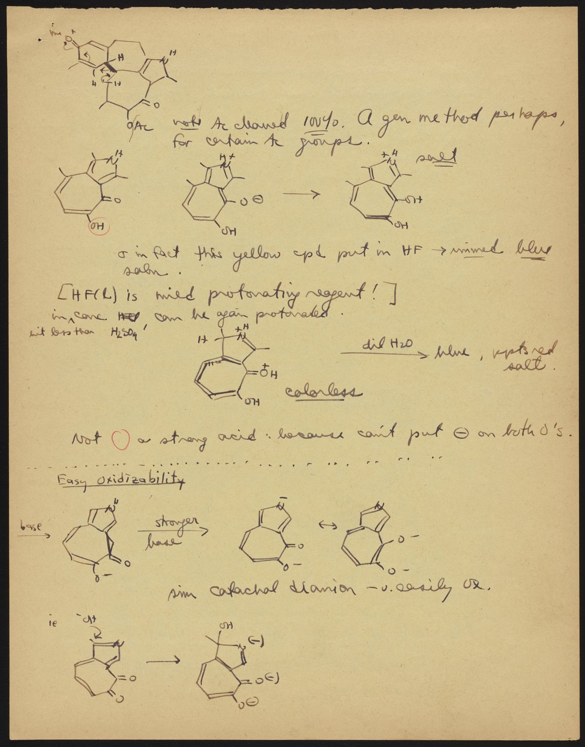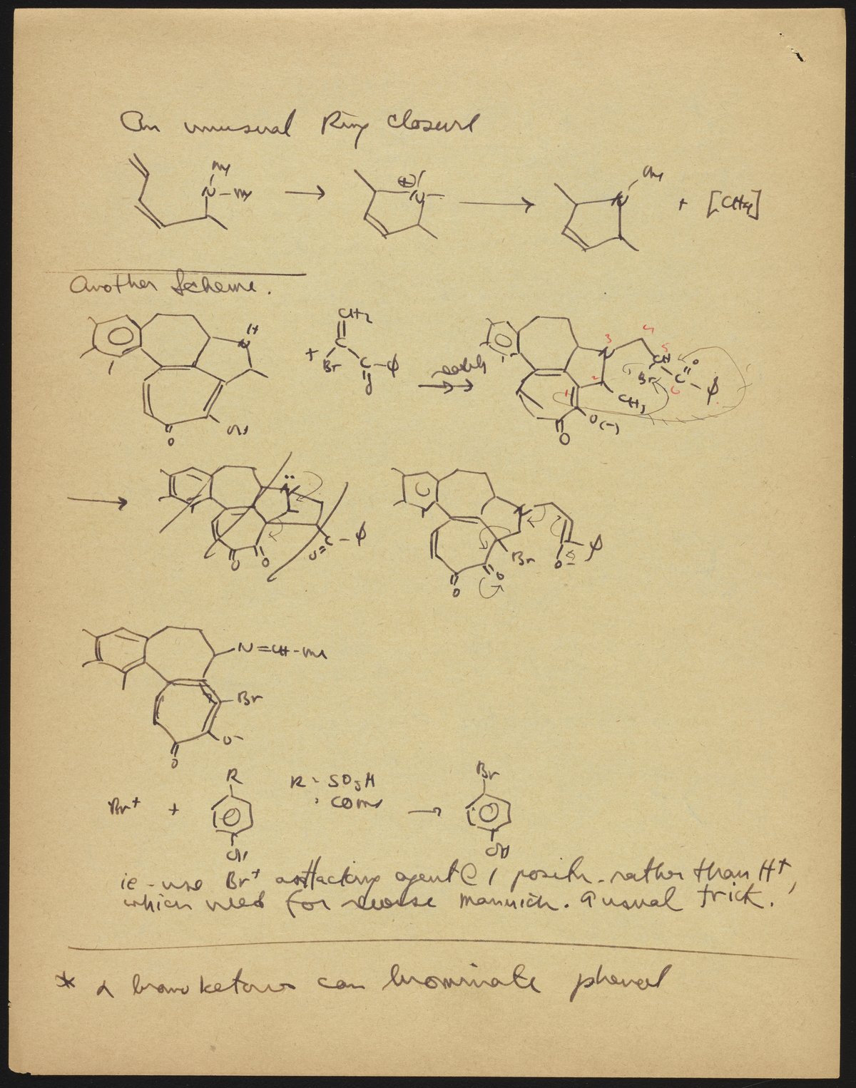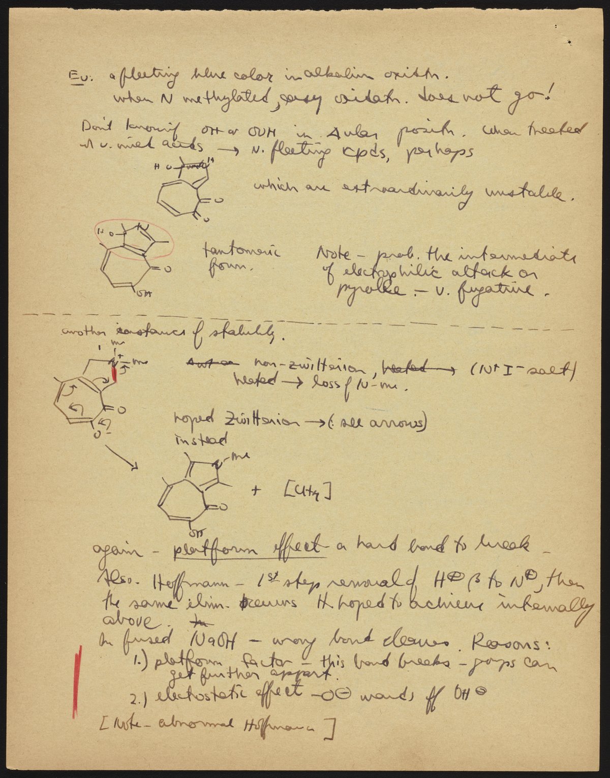 Kohler, Robert E. “R. B. (Robert Burns) Woodward Seminar Entitled ‘Colchicine.’” Notes from R. B. (Robert Burns) Woodward's Seminars, circa 1959–1966. Folder 2. Science History Institute. Philadelphia. https://digital.sciencehistory.org/works/xp68kh266.
