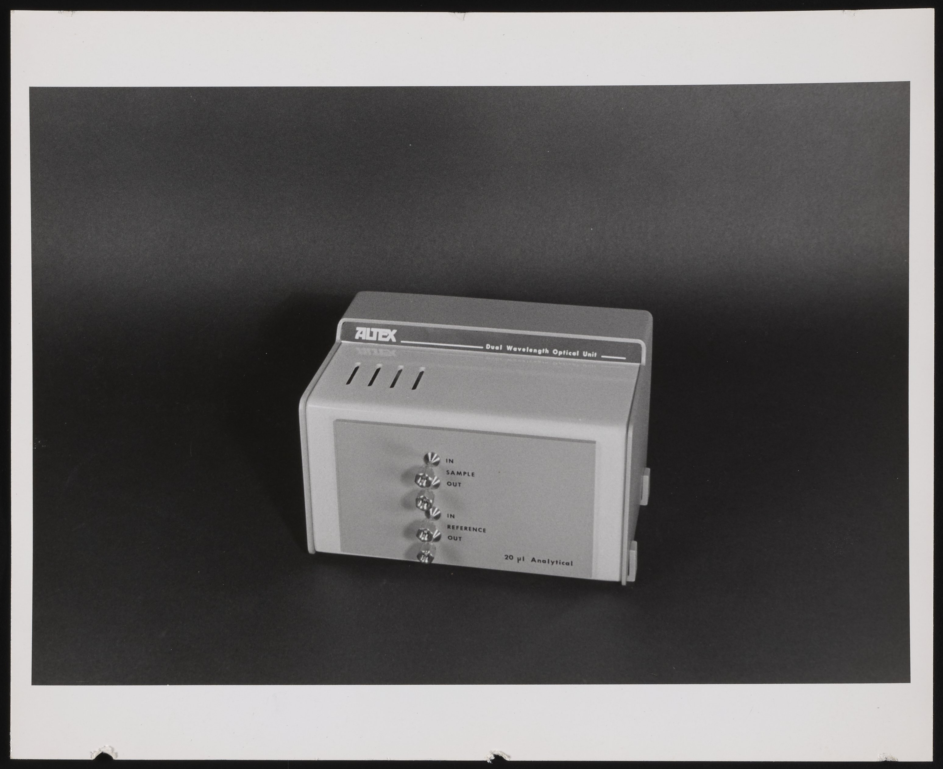 Maas, Ken. “Altex Dual Wavelength Optical Unit,” 1978–1990. Beckman Historical Collection, Box 83. Science History Institute. Philadelphia. https://digital.sciencehistory.org/works/xs55mc18j.