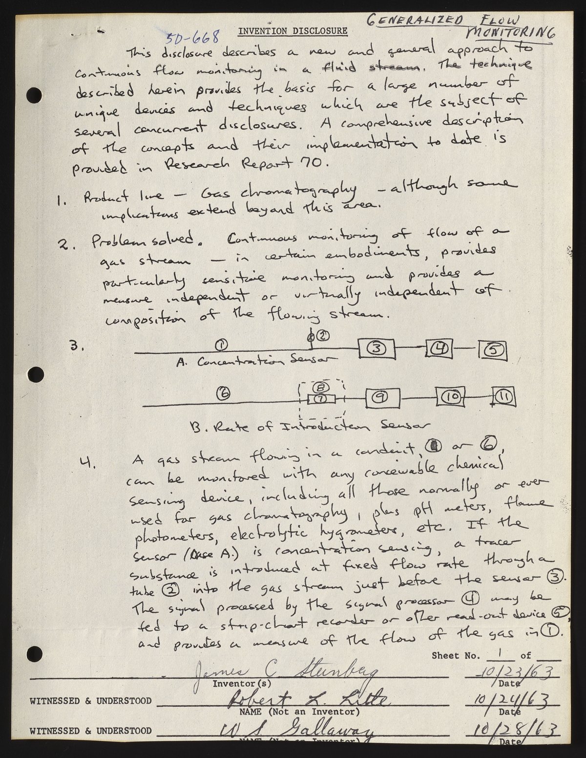 Small JPG1200 x 1551px — 383 KBFull-sized JPG2788 x 3604px — 1.8 MBOriginal fileTIFF — 2788 x 3604px — 28.8 MBThe invention disclosure for use in gas chromatography documents some of James C. Sternberg's early work for Beckman Instruments. Robert S. Litle and W. S. Gallaway signed this disclosure as witnesses.
