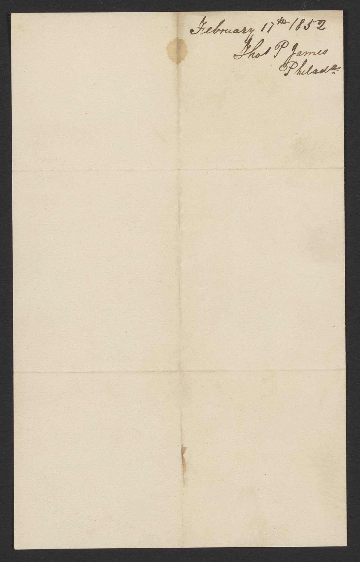 James, Thomas Potts. “Letter from Thomas P. James to James Curtis Booth,” February 17, 1852. Papers of James Curtis Booth, Box 1, Folder 6. Science History Institute. Philadelphia. https://digital.sciencehistory.org/works/xvwd5pz.