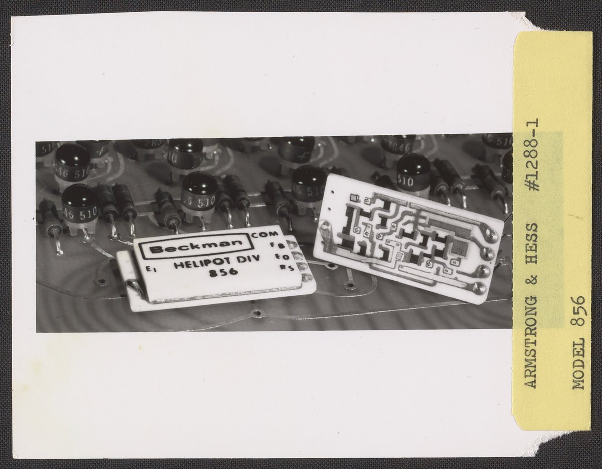 Armstrong & Hess. “Helipot Model 856 Voltage Regulators on a Printed Circuit Board,” 1950–1969. Beckman Historical Collection, Box 85. Science History Institute. Philadelphia. https://digital.sciencehistory.org/works/xw42n823n.