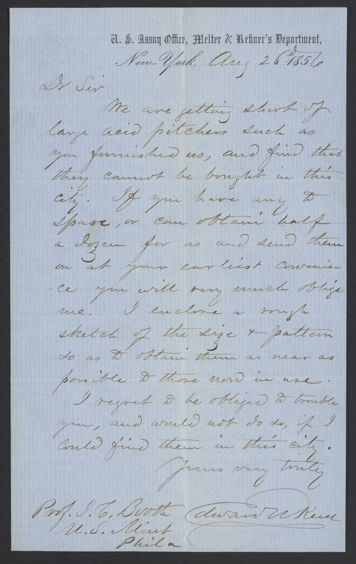 Small JPG1200 x 1902px — 336 KBFull-sized JPG2089 x 3311px — 846 KBOriginal fileTIFF — 2089 x 3311px — 19.8 MBEdward N. Kent of the United States Assay Office at New York requests a supply of large acid pitchers.