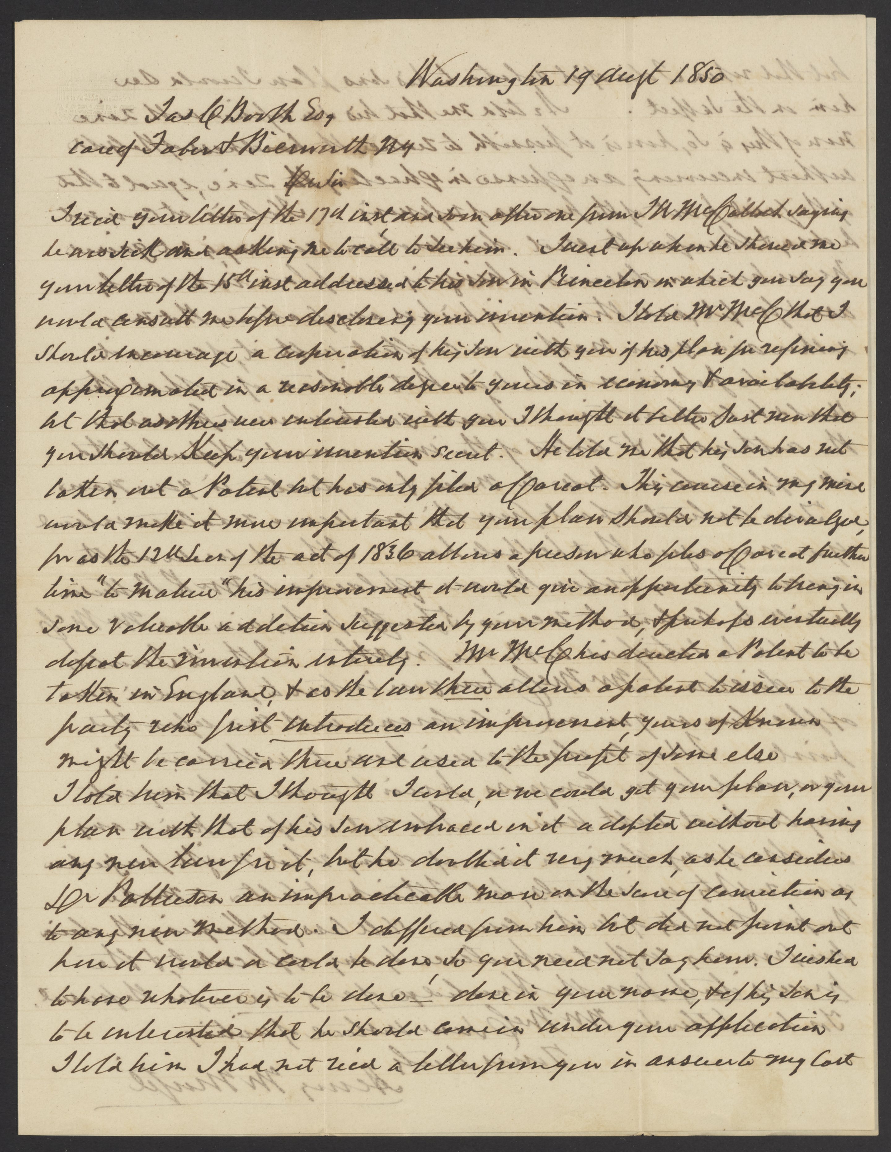 Morfit, Henry Mason. “Letter from Henry M. Morfit to James Curtis Booth, August 19, 1850,” August 19, 1850. Papers of James Curtis Booth, Box 1, Folder 12. Science History Institute. Philadelphia. https://digital.sciencehistory.org/works/y7e26i4.