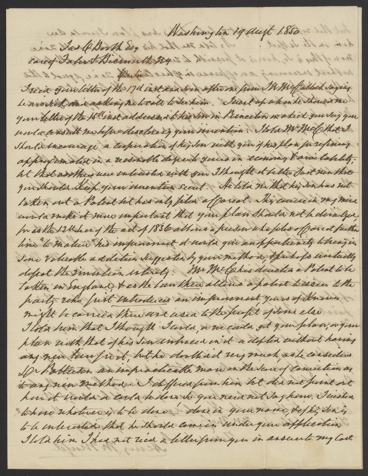 Letter from Henry M. Morfit to James Curtis Booth, August 19, 1850
