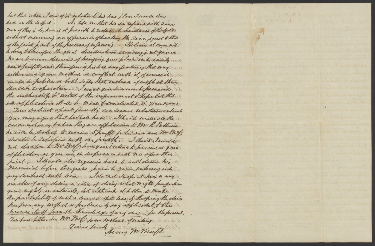 Small JPG1200 x 1552px — 395 KBLarge JPG2880 x 3724px — 1.5 MBFull-sized JPG3415 x 4416px — 1.9 MBOriginal fileTIFF — 3415 x 4416px — 43.2 MBHenry M. Morfit (1793-1865) writes more on a proposed partnership with Richard Sears McCulloch (1818-1894) in response to his letter of August 17th. Morfit urges caution and points to several drawbacks in McCulloch’s process.
