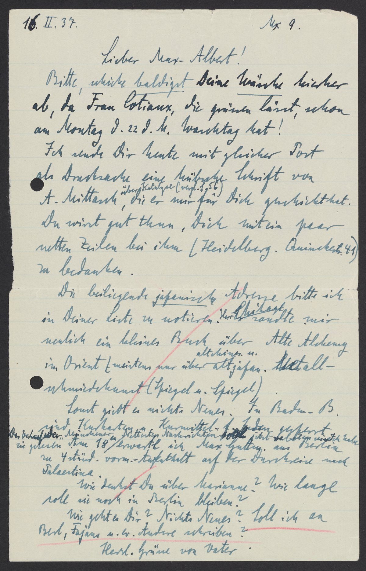 Letter from Georg Bredig to Max Bredig, February 16, 1937