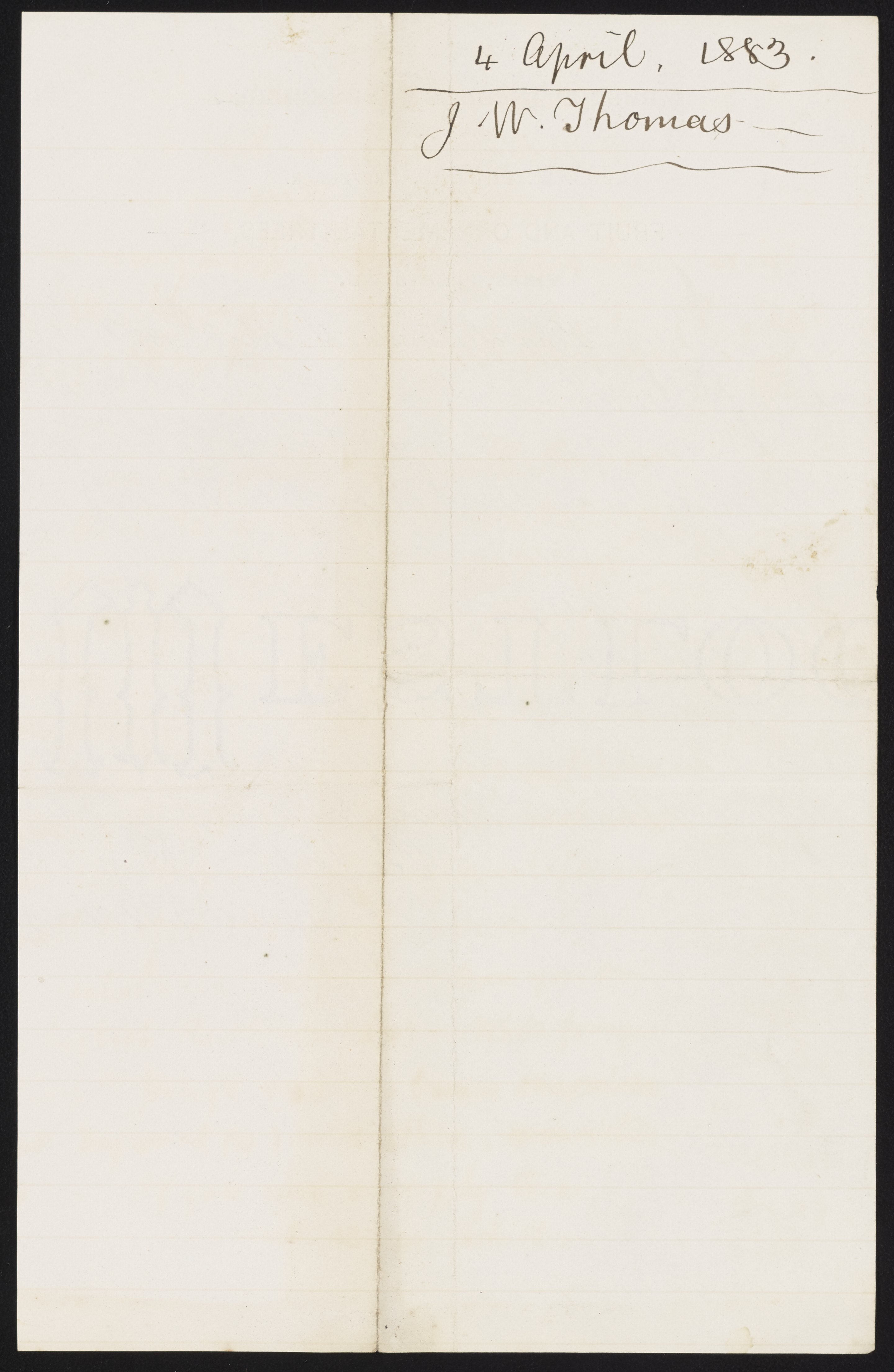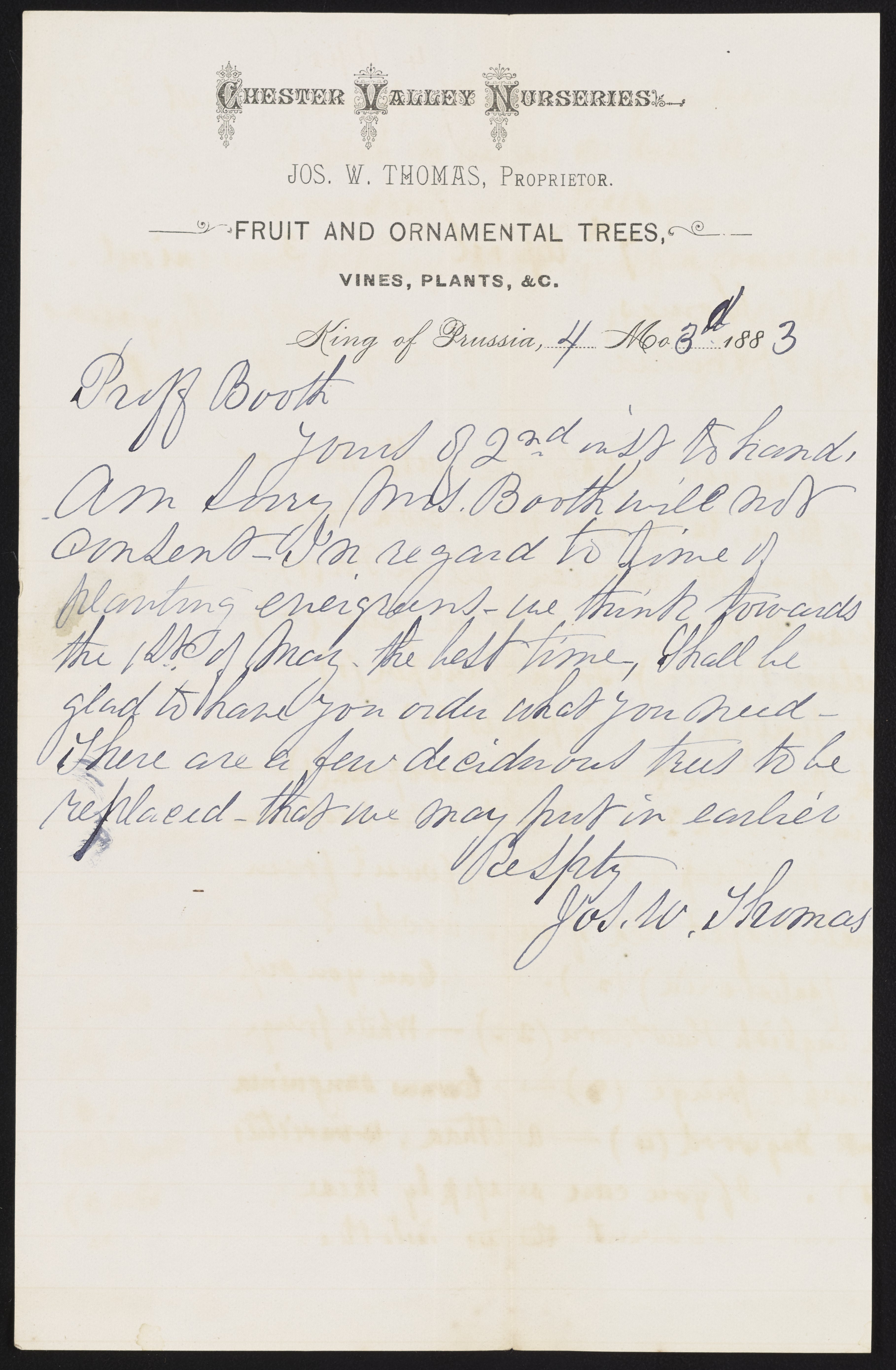 Letter from J.W. Thomas to James Curtis Booth, April 3, 1883