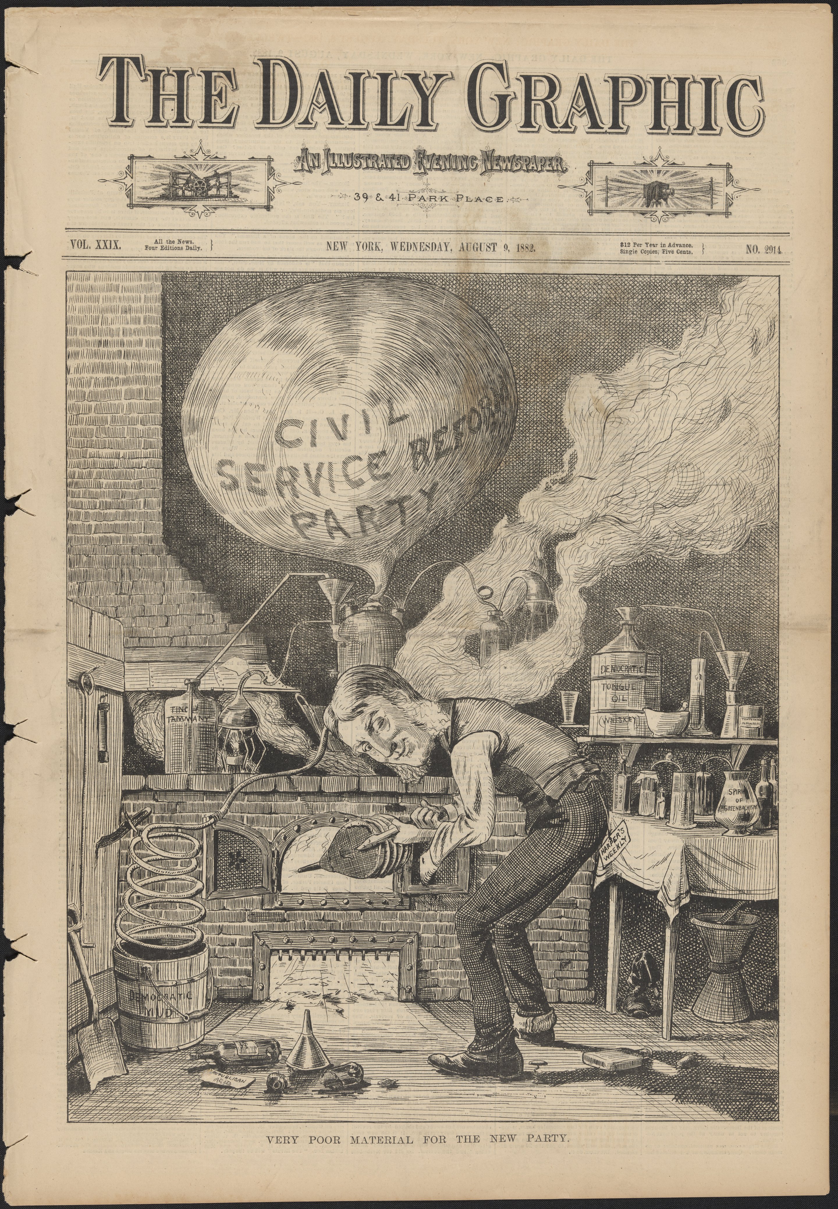“Very Poor Material for the New Party.” Ink, paper (fiber product). New York Daily Graphic, August 9, 1882. Science History Institute. Philadelphia. https://digital.sciencehistory.org/works/ymtbqa7.
