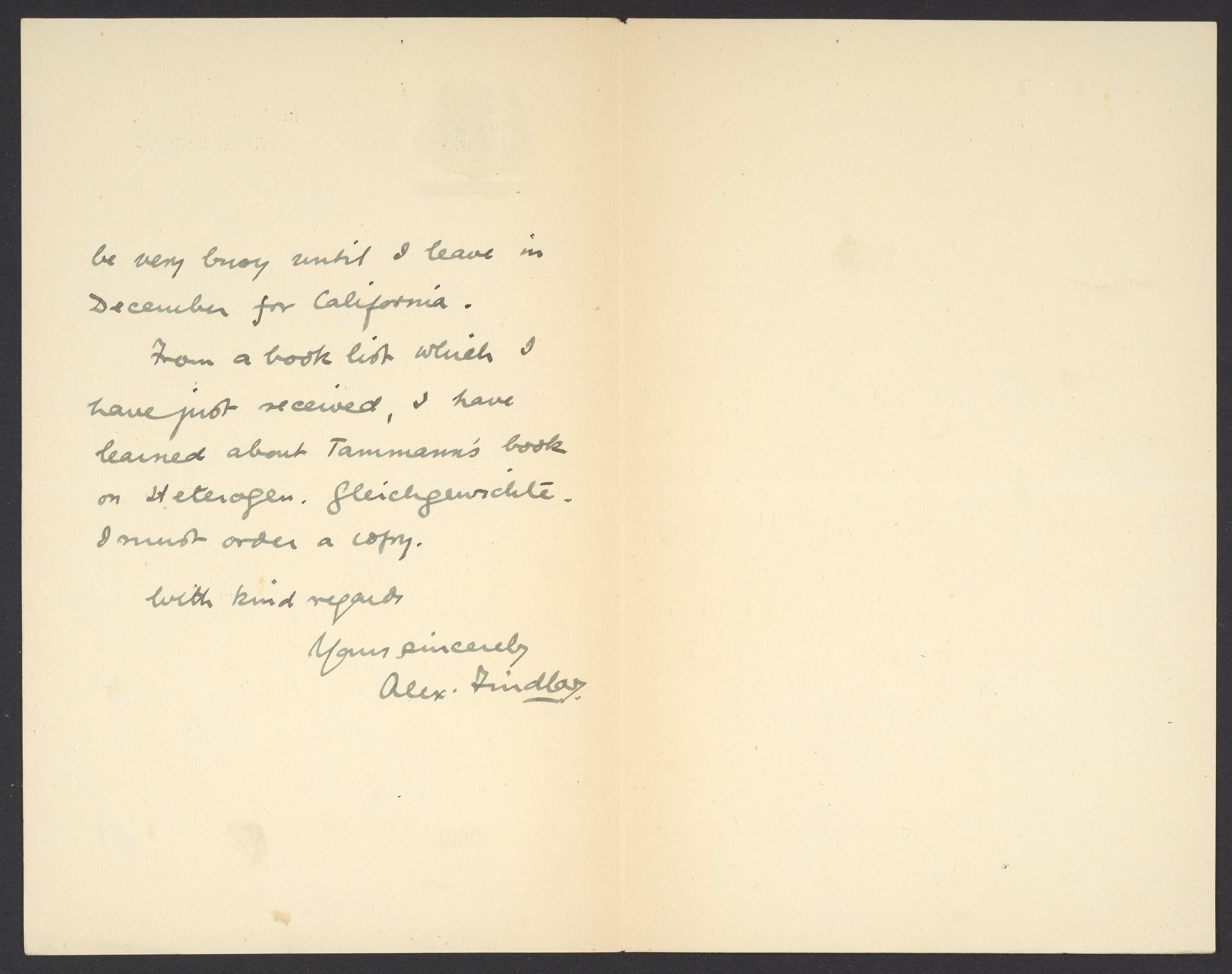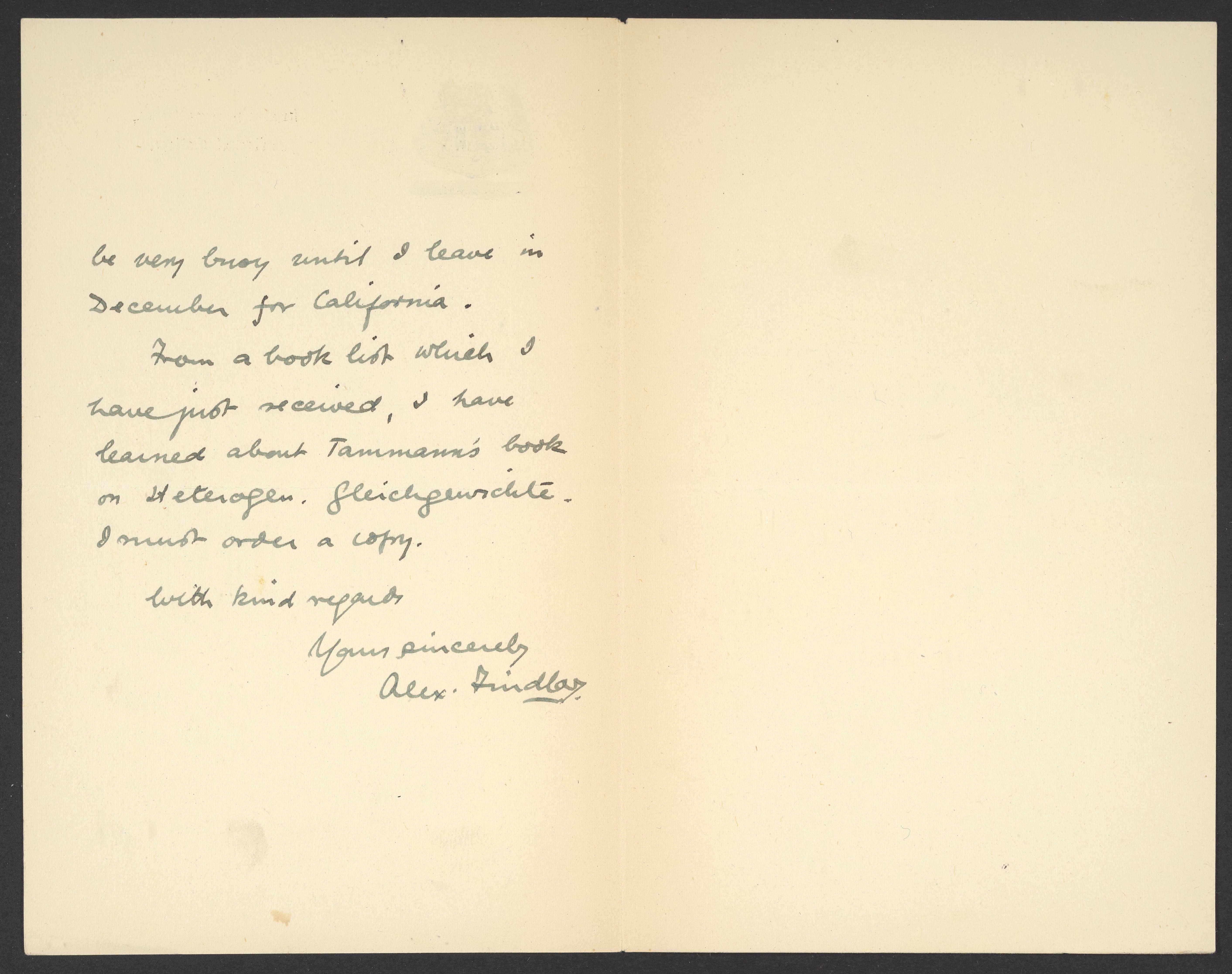 Letter from Alex Findlay to Georg Bredig