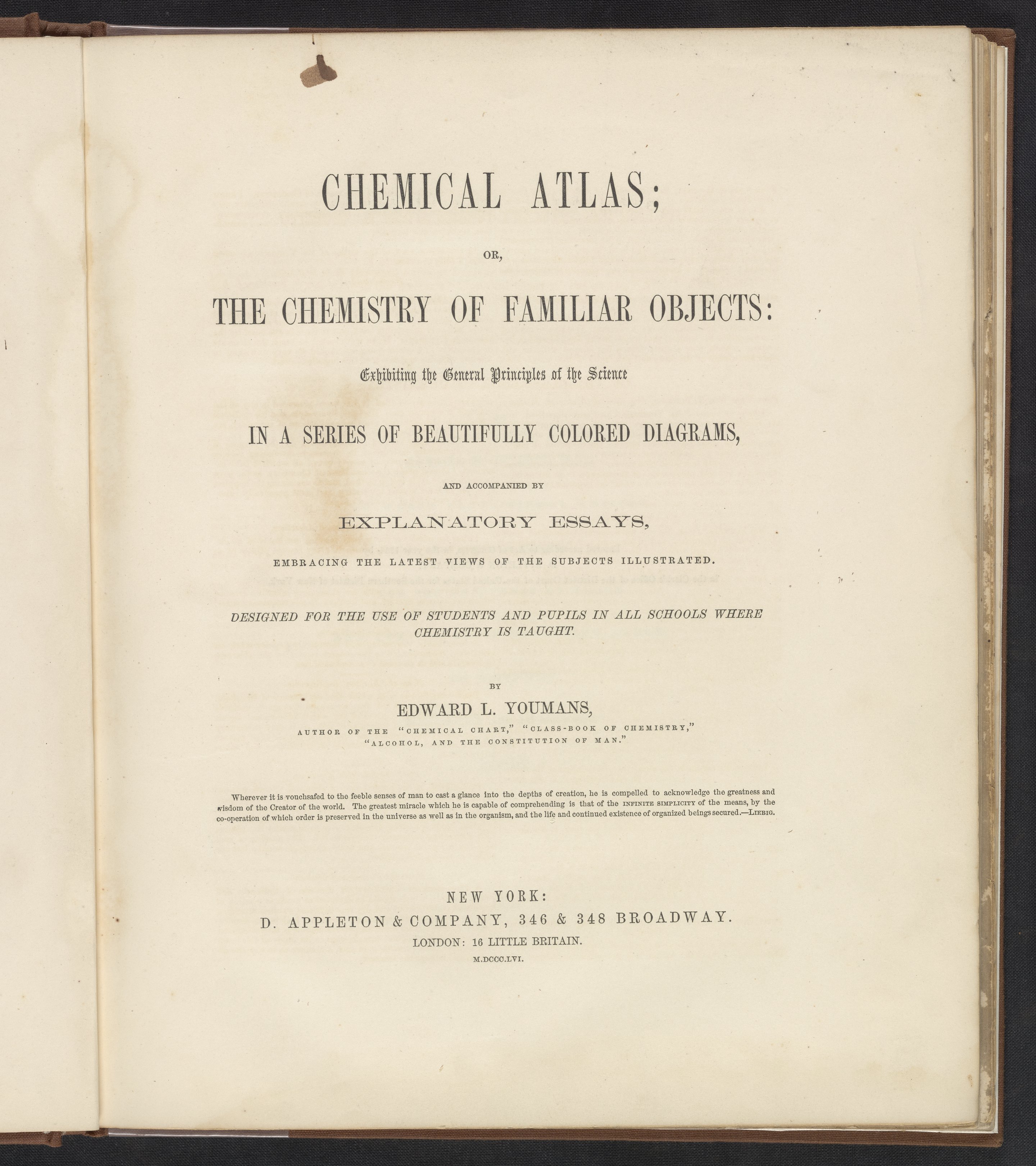 Youmans, Edward Livingston. Chemical Atlas; or, The Chemistry of Familiar Objects. New York, New York, 1856. https://digital.sciencehistory.org/works/ysnh5if.