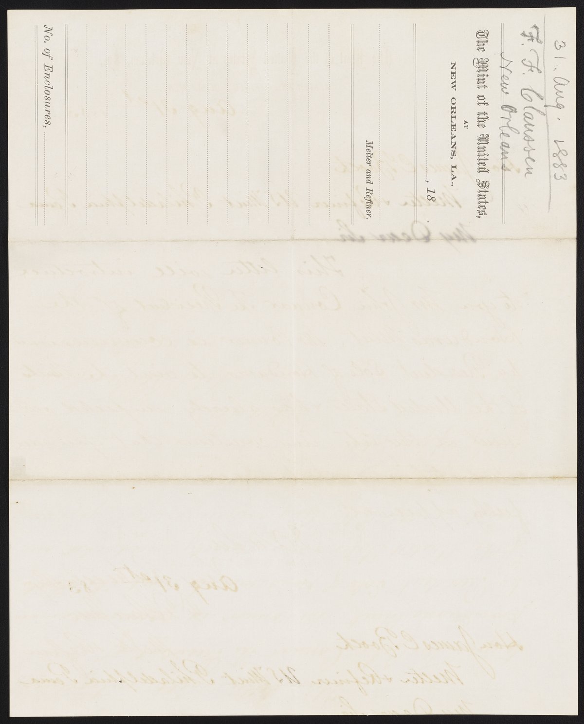 Letter from F. F. Claussen to James Curtis Booth, August 31, 1883
