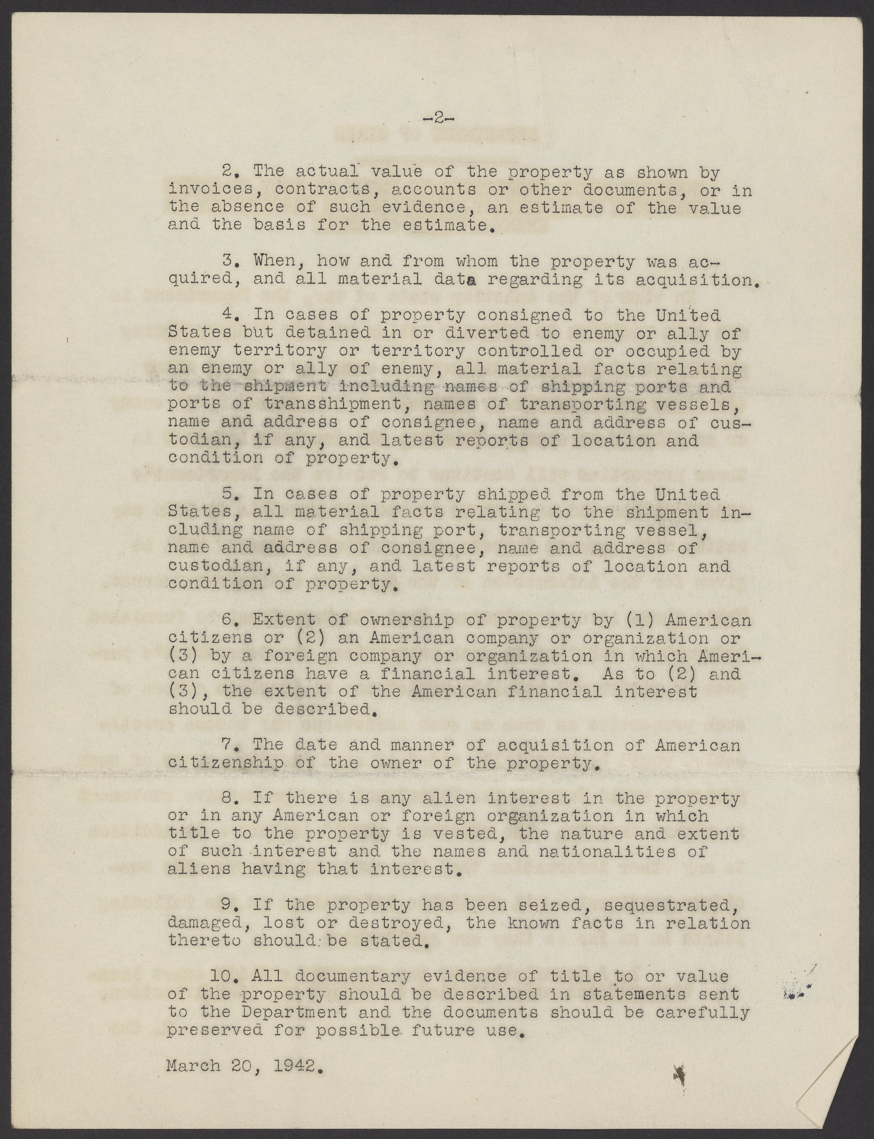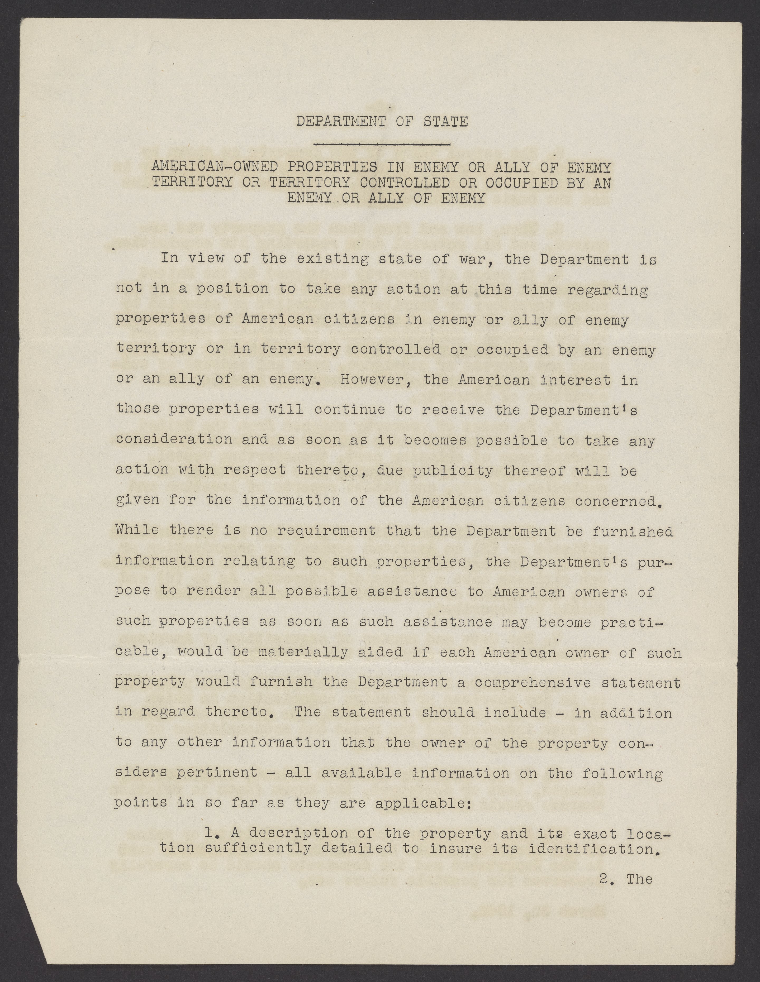 American-Owned Properties in Enemy or Ally of Enemy Territory or Territory Controlled or Occupied by an Enemy or Ally of Enemy