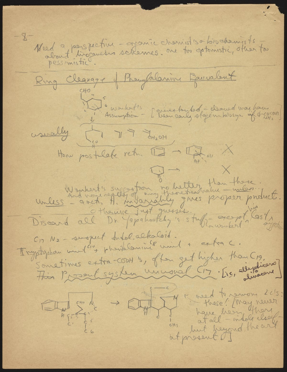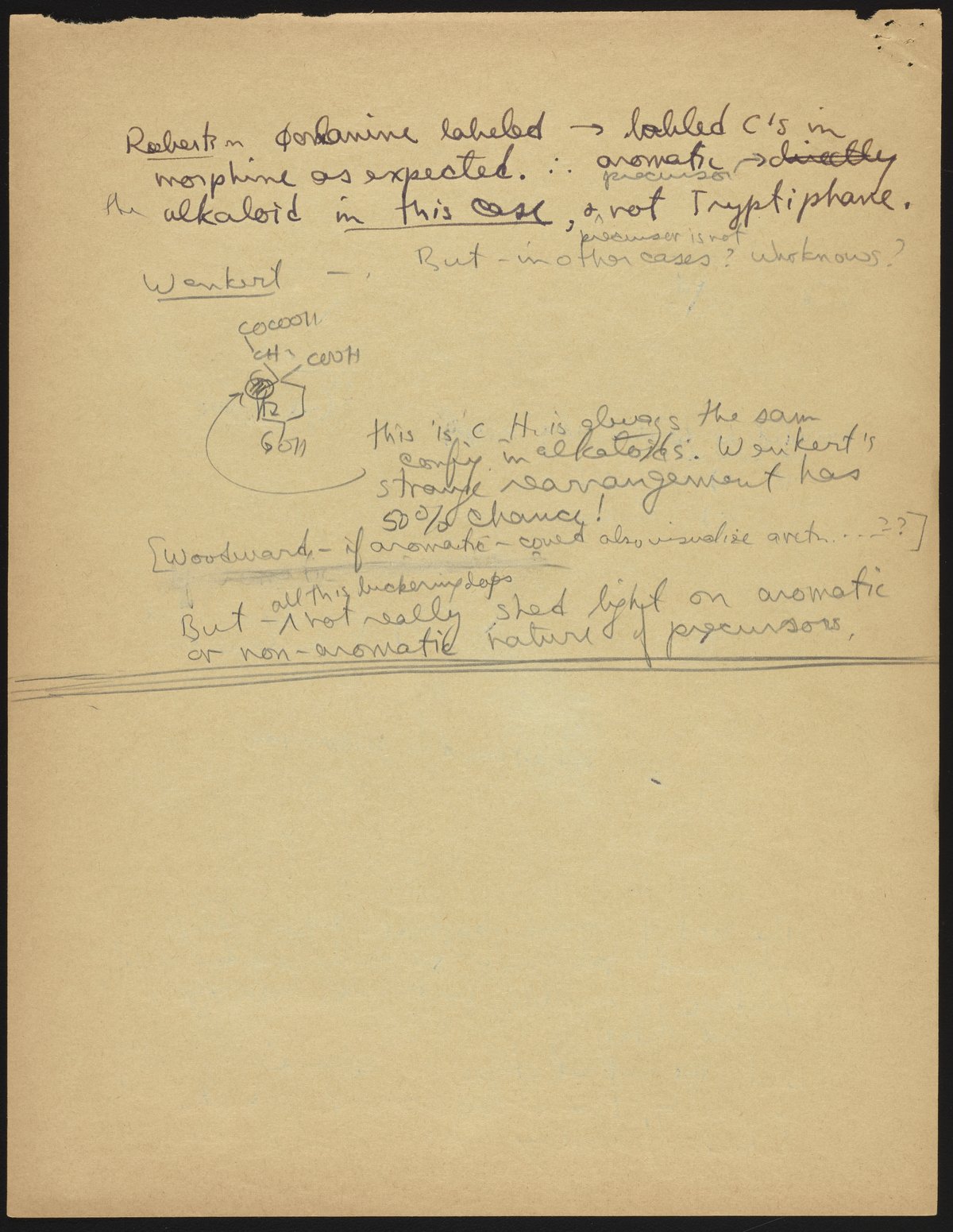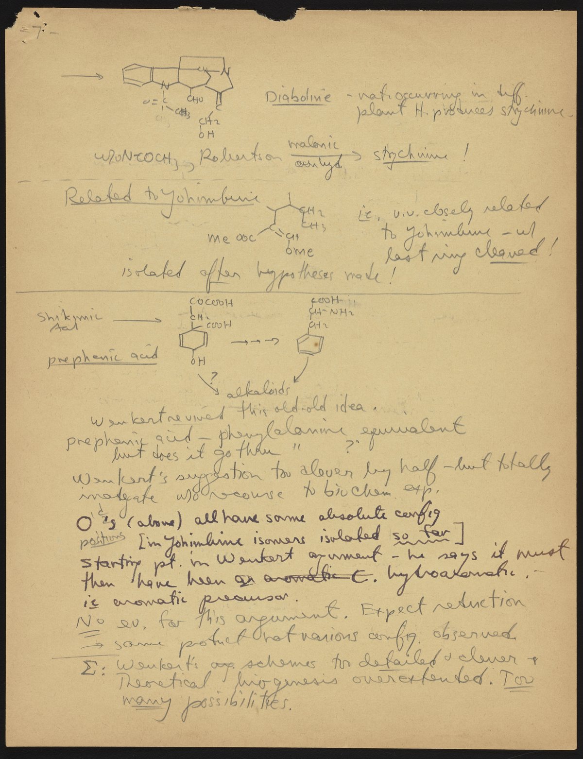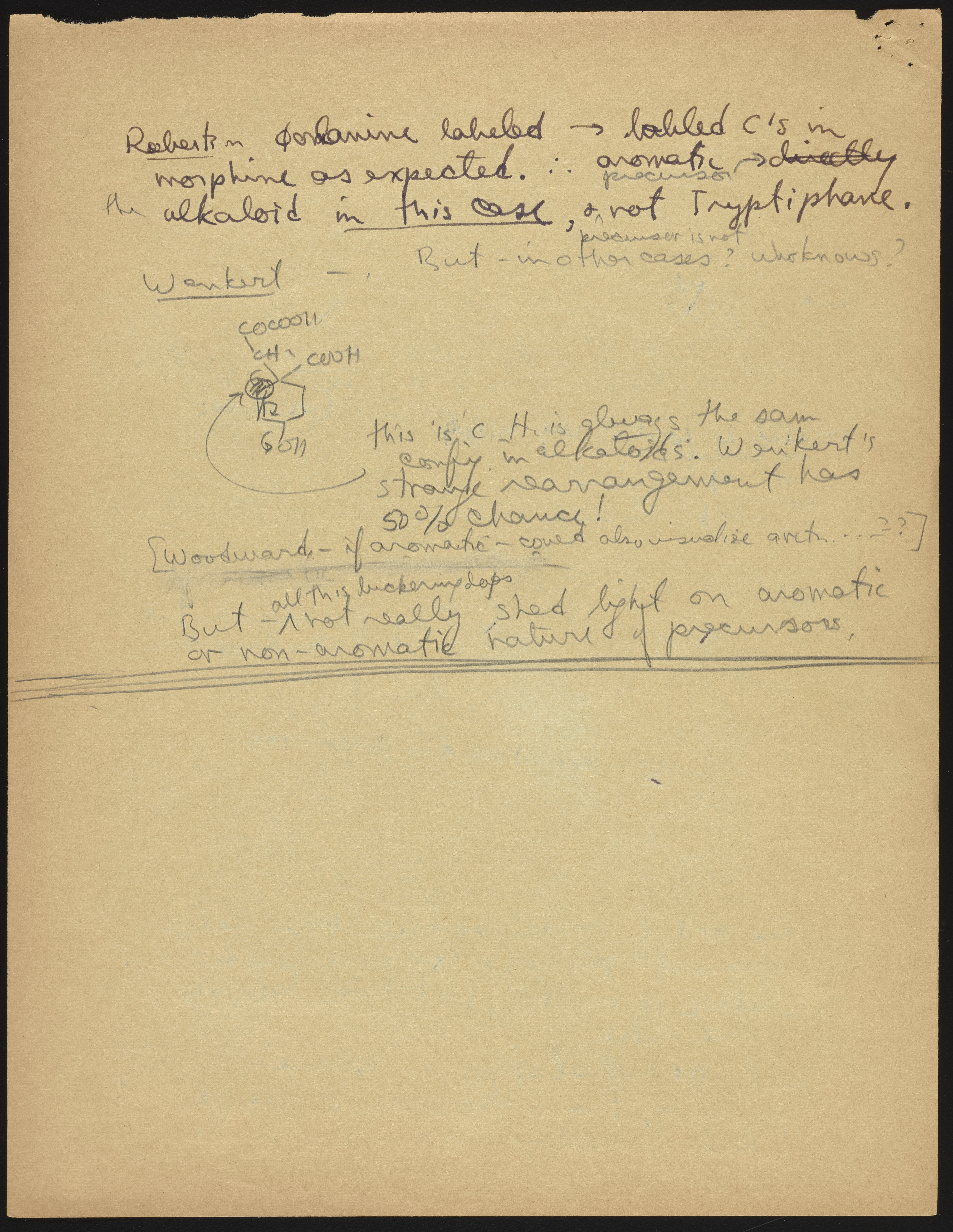 Kohler, Robert E. “R. B. (Robert Burns) Woodward Seminar Entitled ‘Some Indole Alkaloids Biogenesis.’” Notes from R. B. (Robert Burns) Woodward's Seminars, circa 1959–1966. Folder 2. Science History Institute. Philadelphia. https://digital.sciencehistory.org/works/z029p5792.