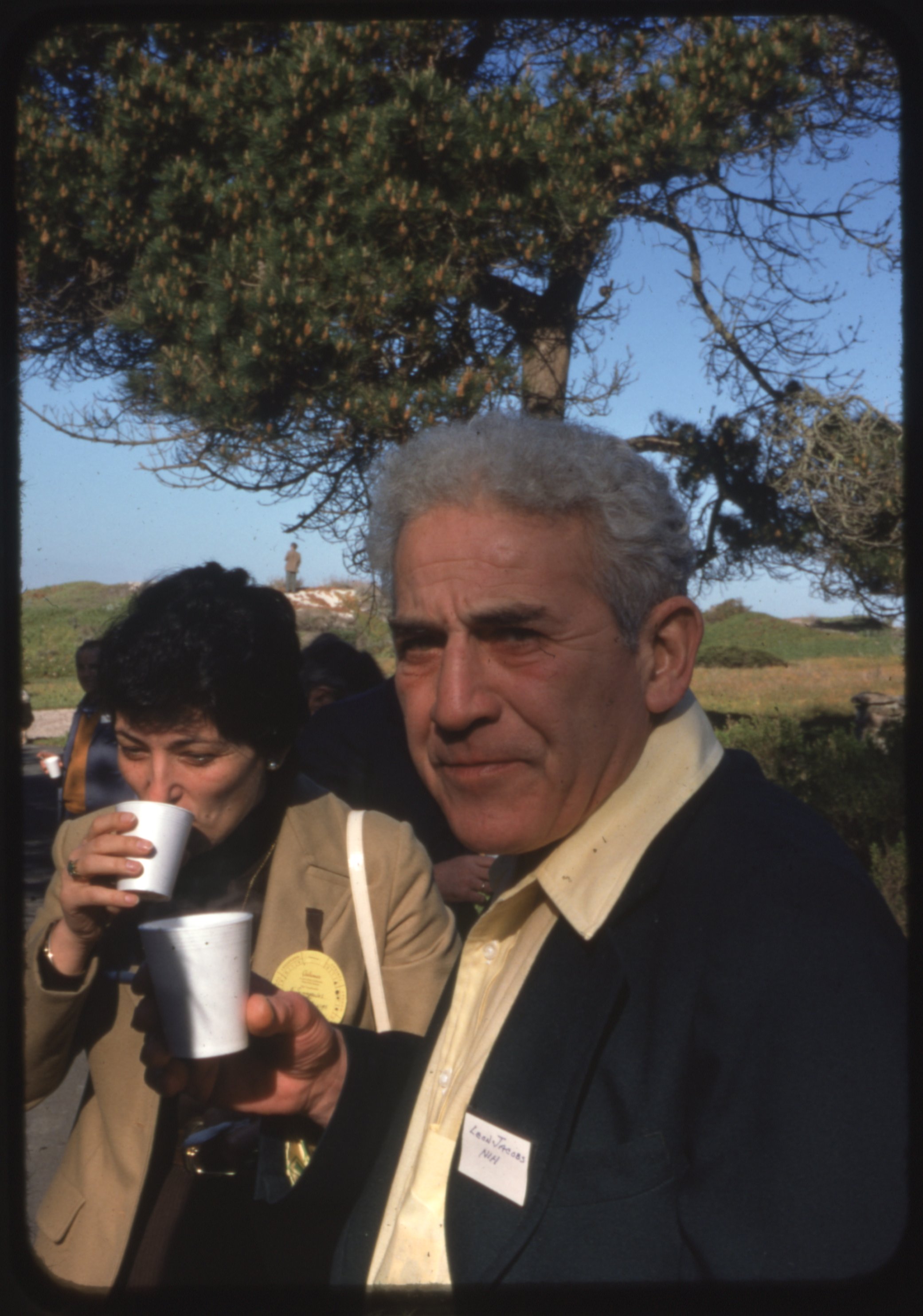 Color transparency of Leon Jacobs (1915-1995) and Artemis P. Simopoulos (1933-) at the 1975 Asilomar Conference.